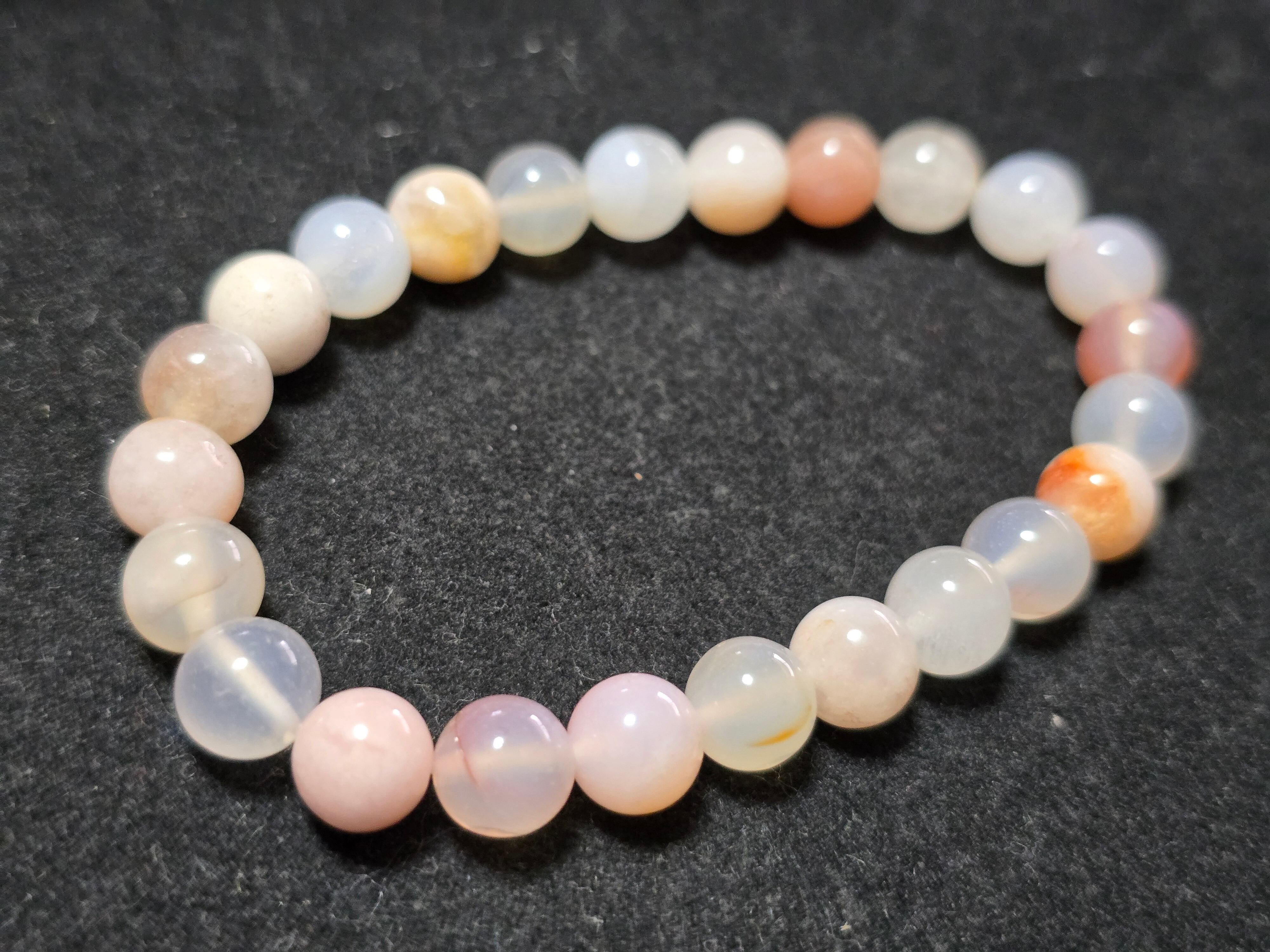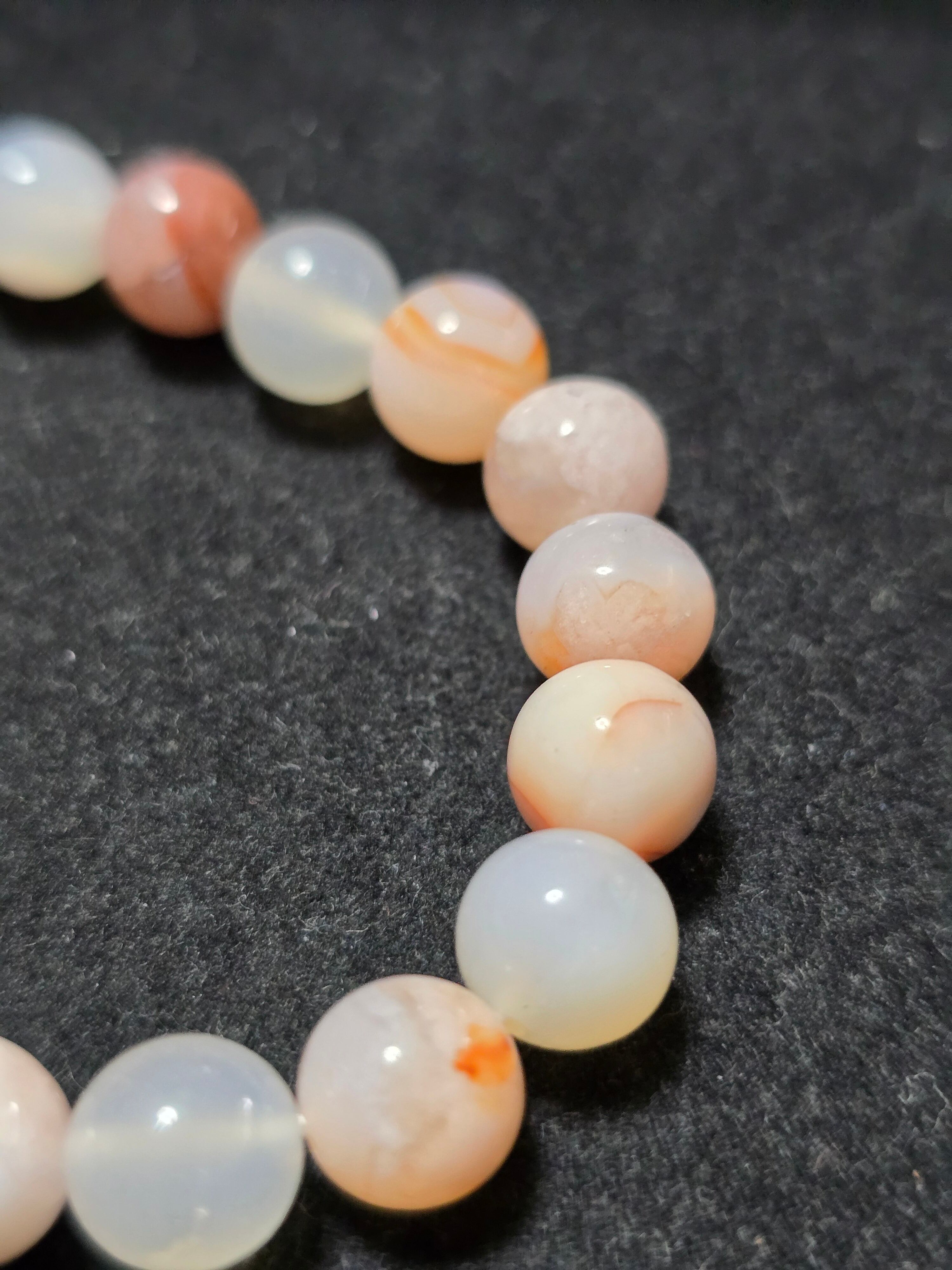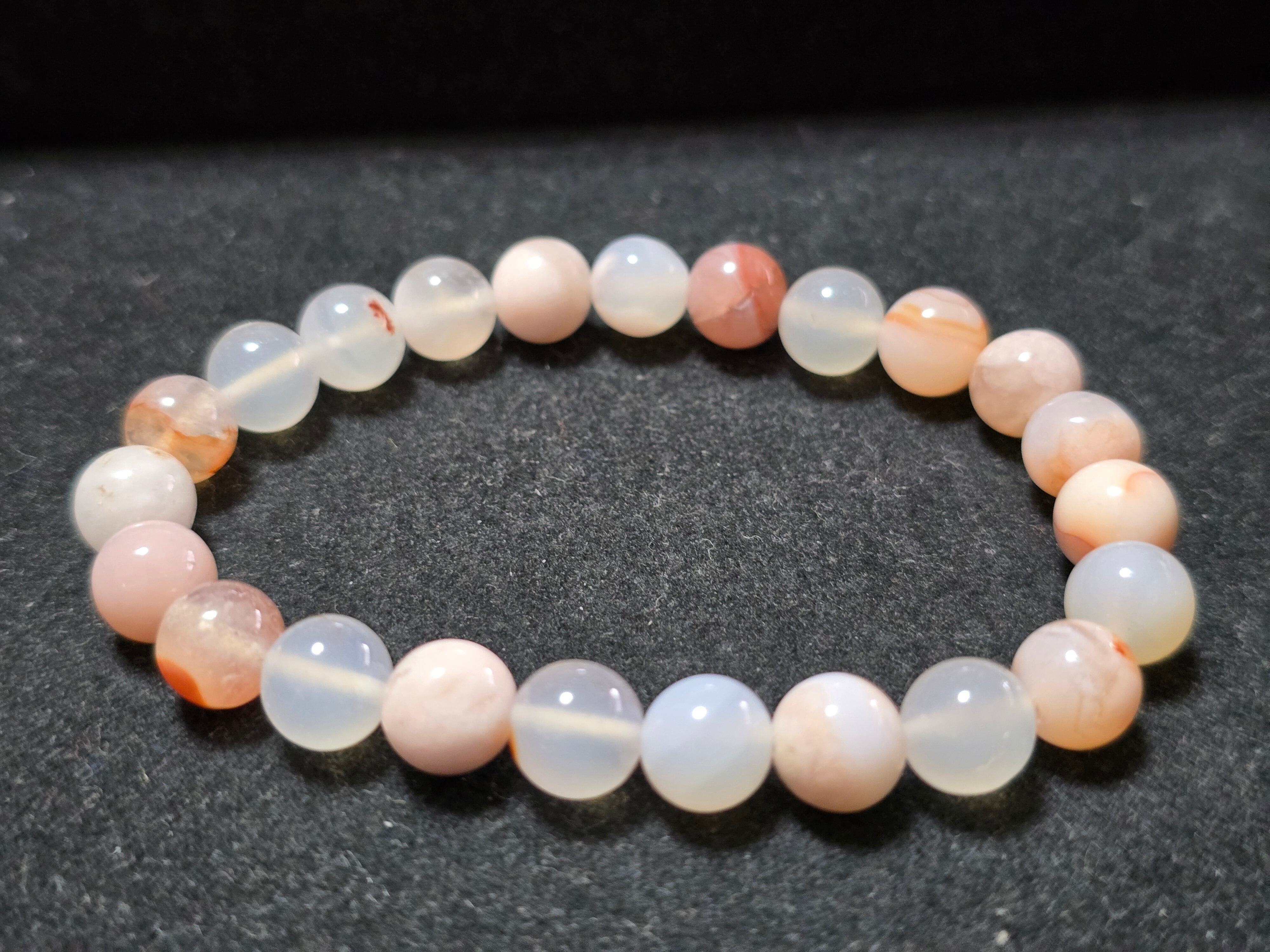 桜メノウは、淡い透明感のあるピンクのアゲードの中にまるで桜の花が咲いてるかのように見えるパワーストーンです。