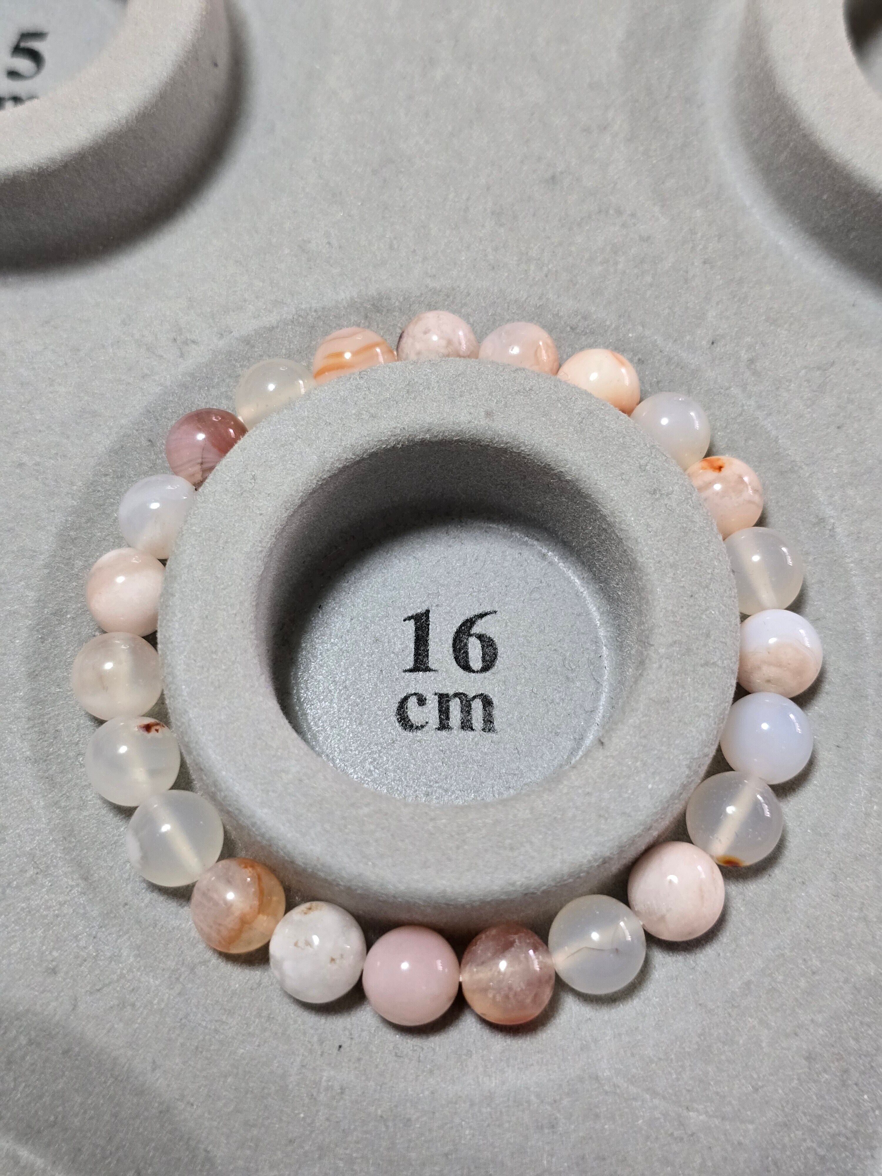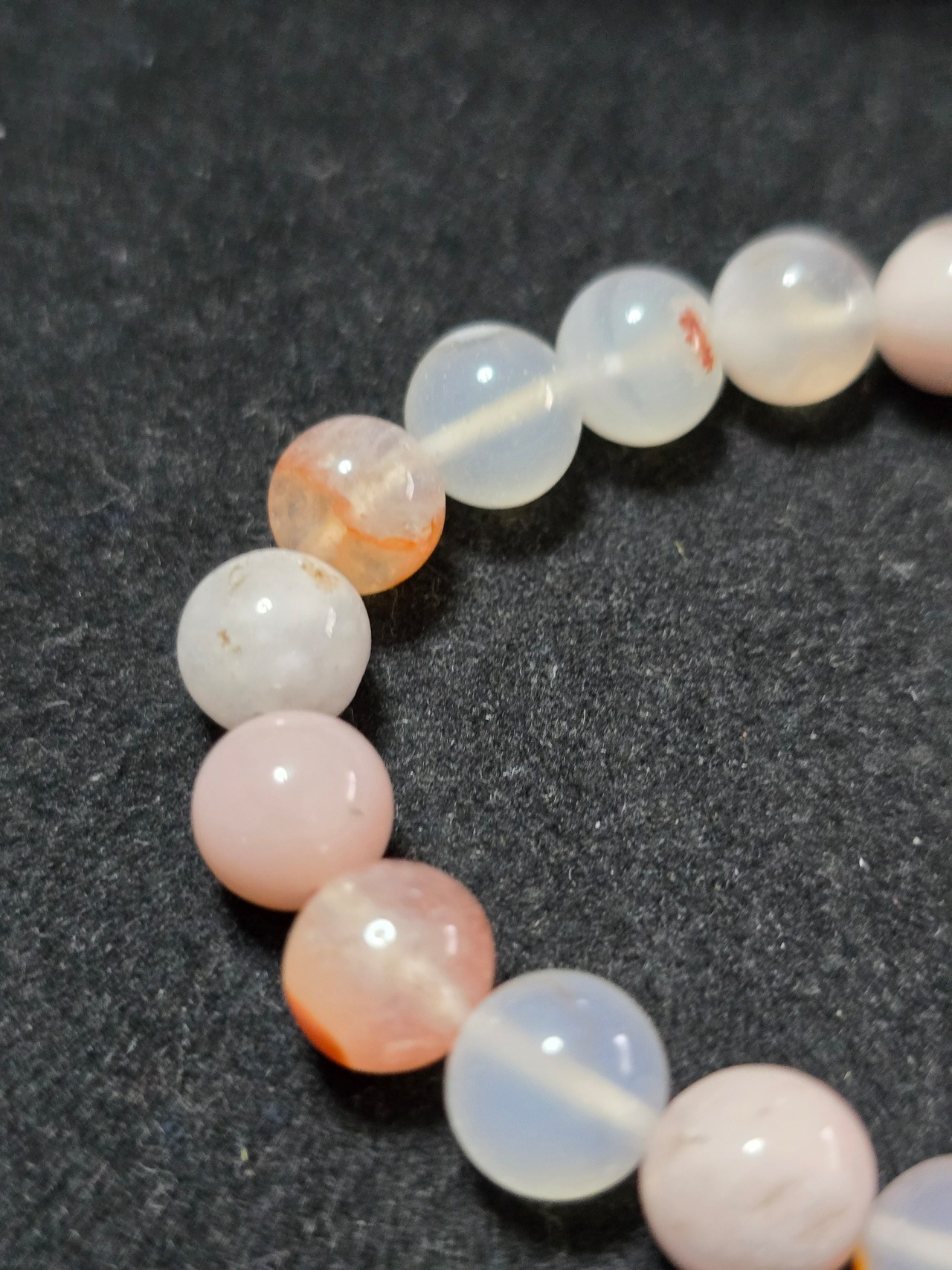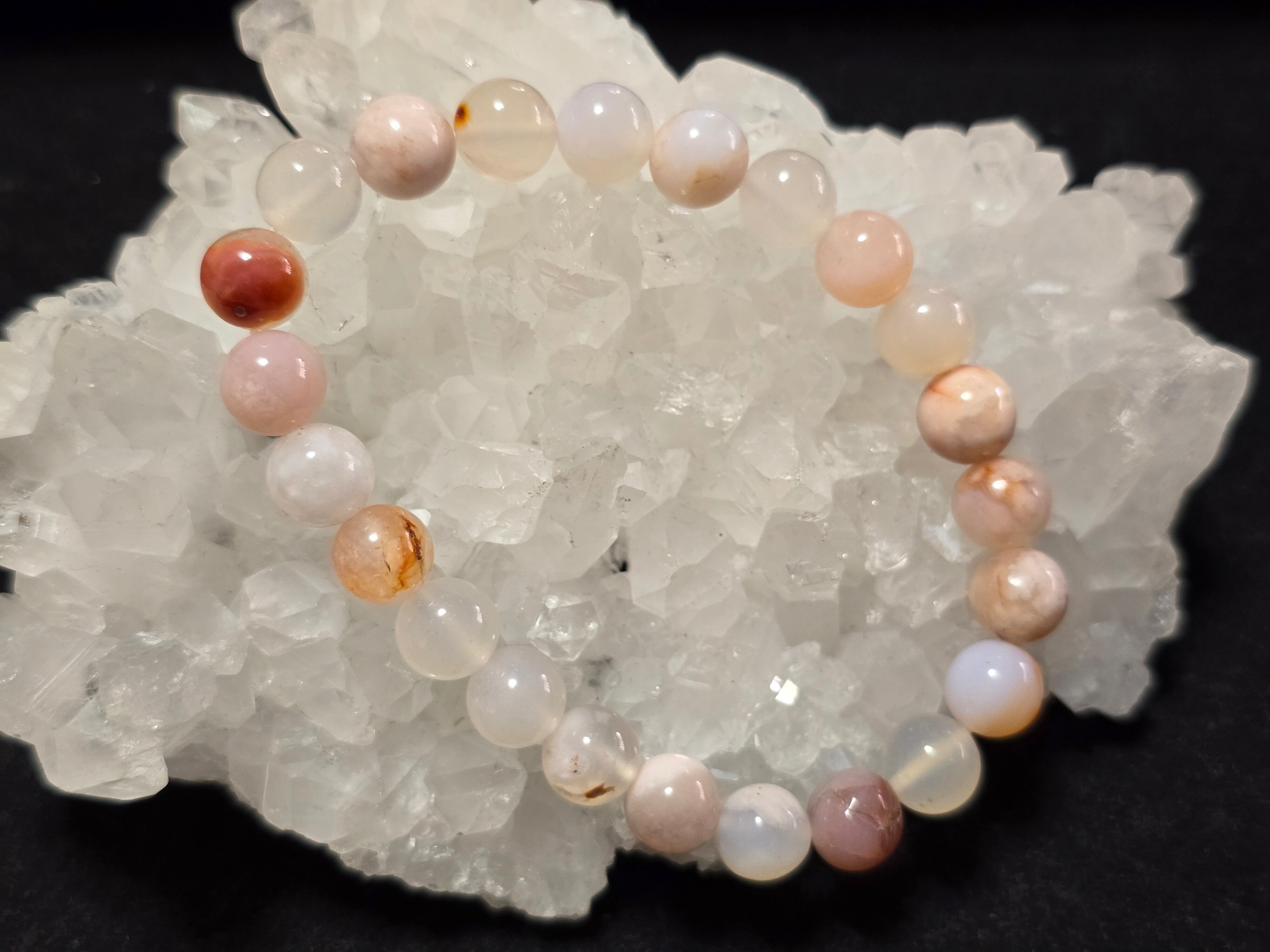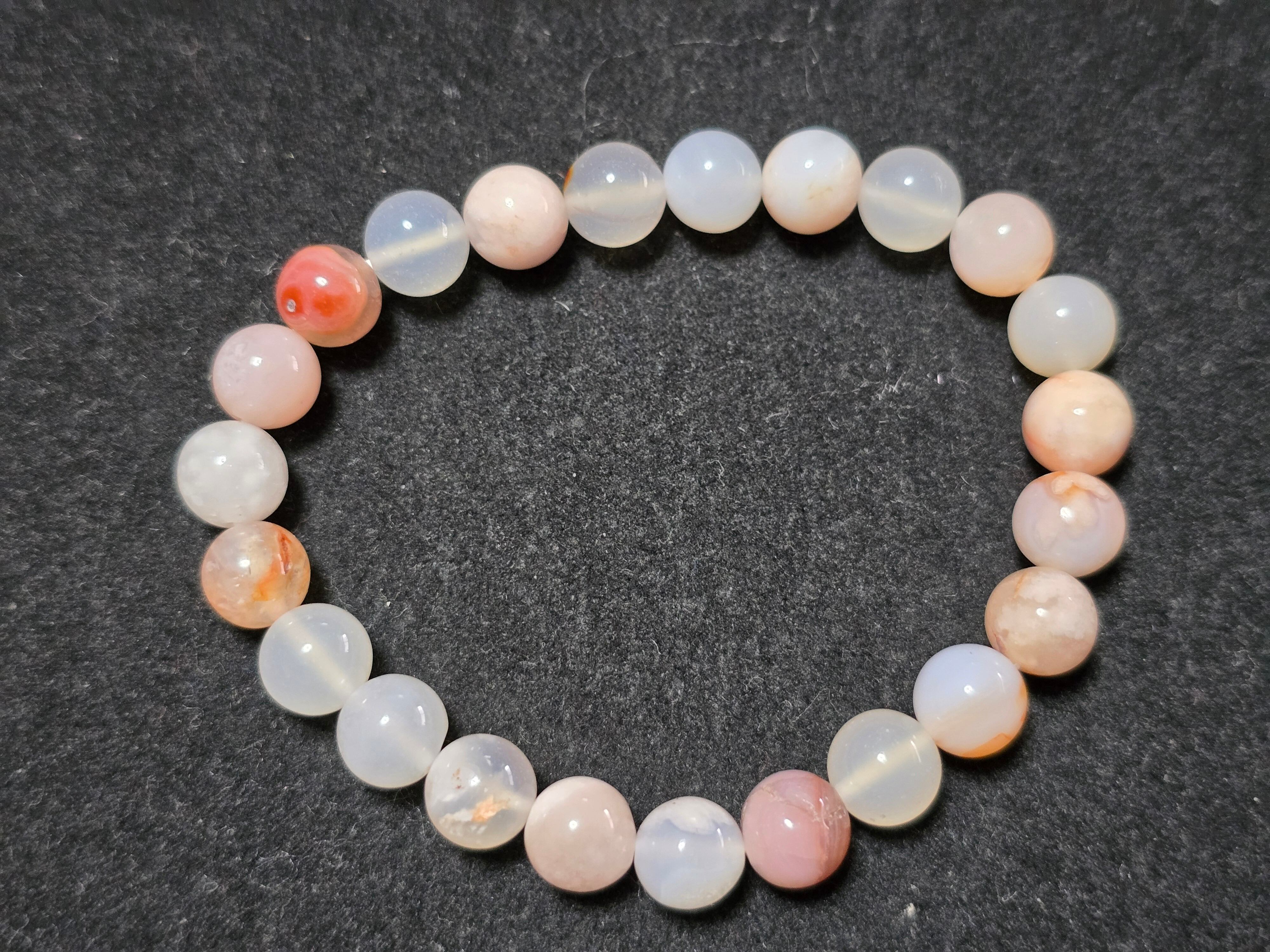 桜メノウは、淡い透明感のあるピンクのアゲードの中にまるで桜の花が咲いてるかのように見えるパワーストーンです。