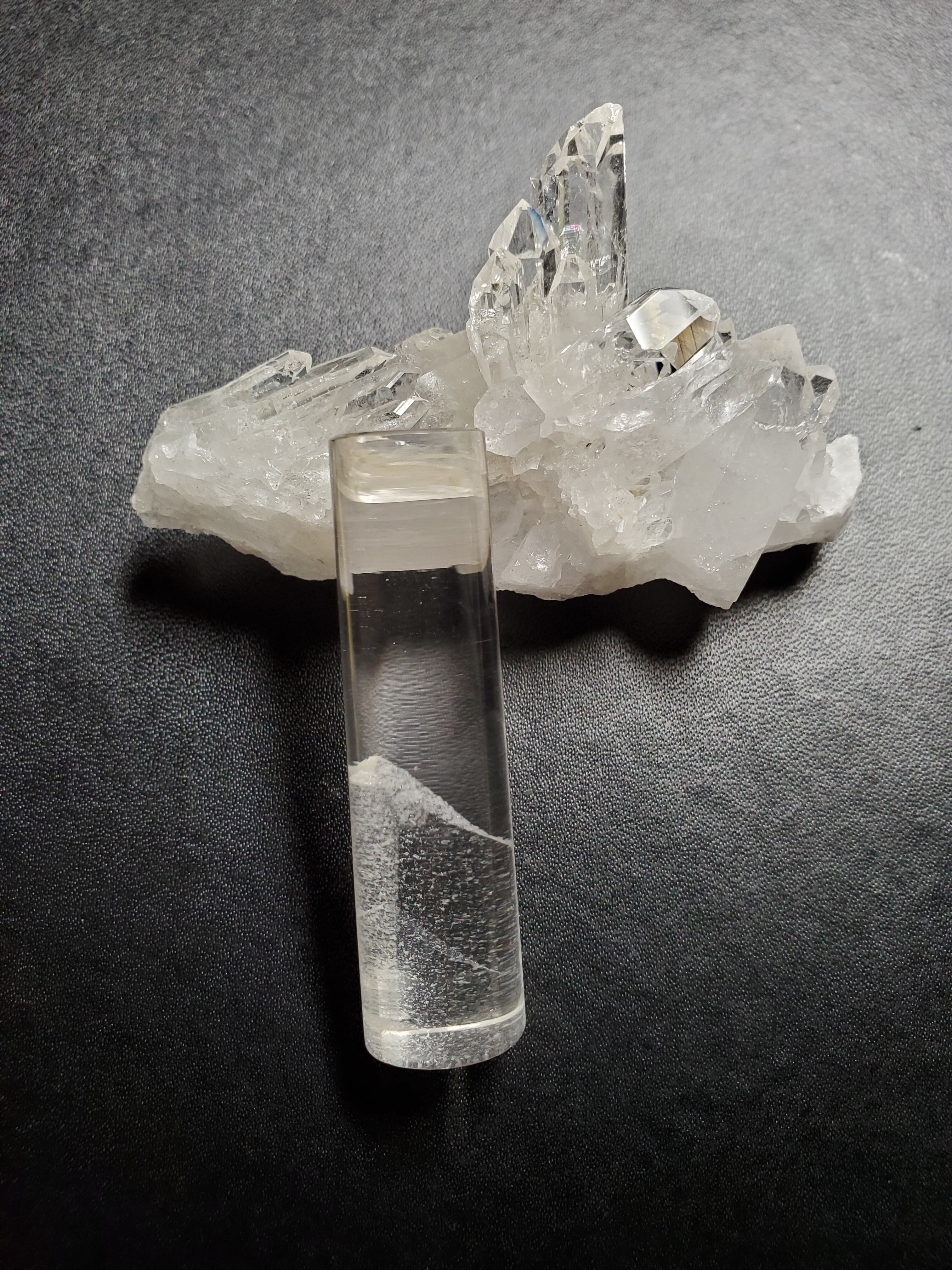 ホワイトファントムクォーツは、再成長の際に白色のクローライトなどが付着し山型、または層状を形成したものを指します。