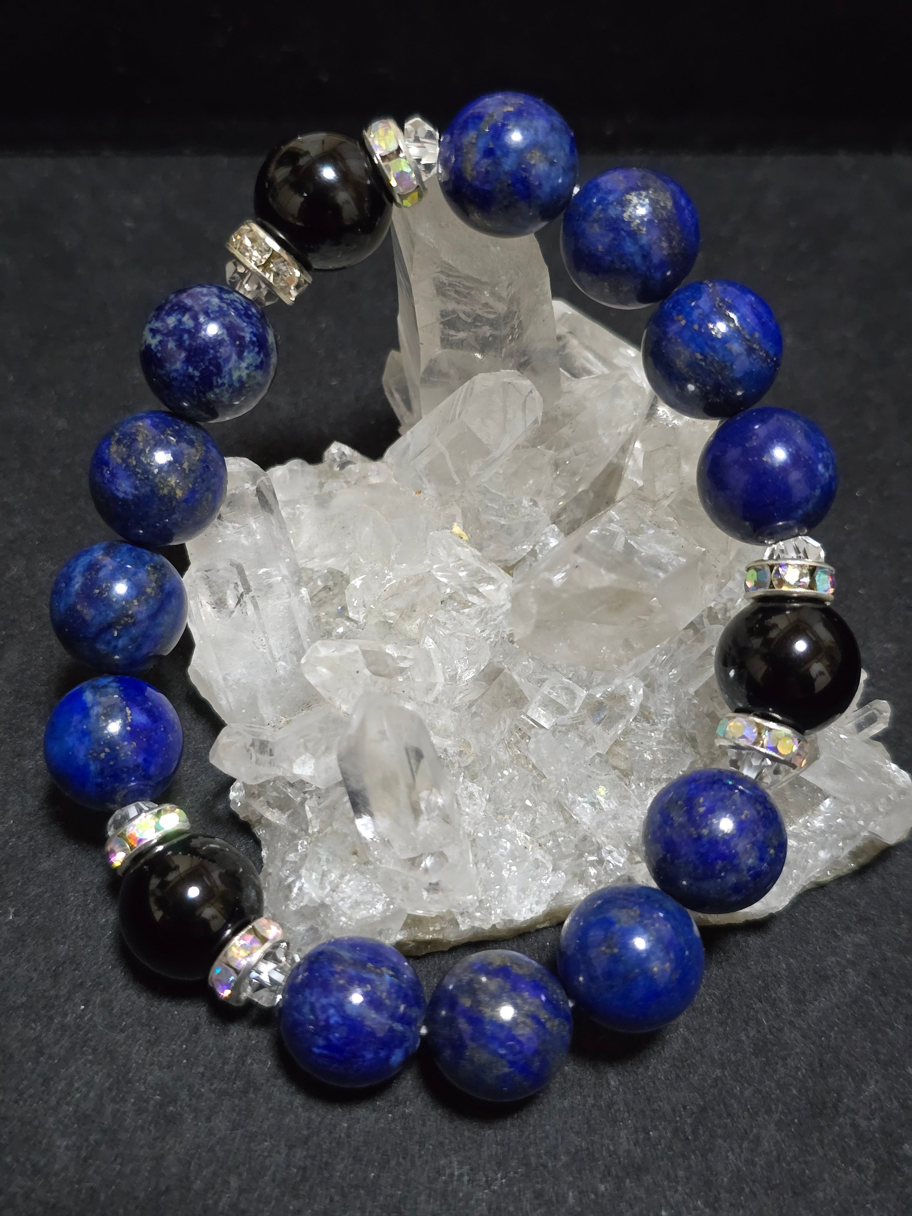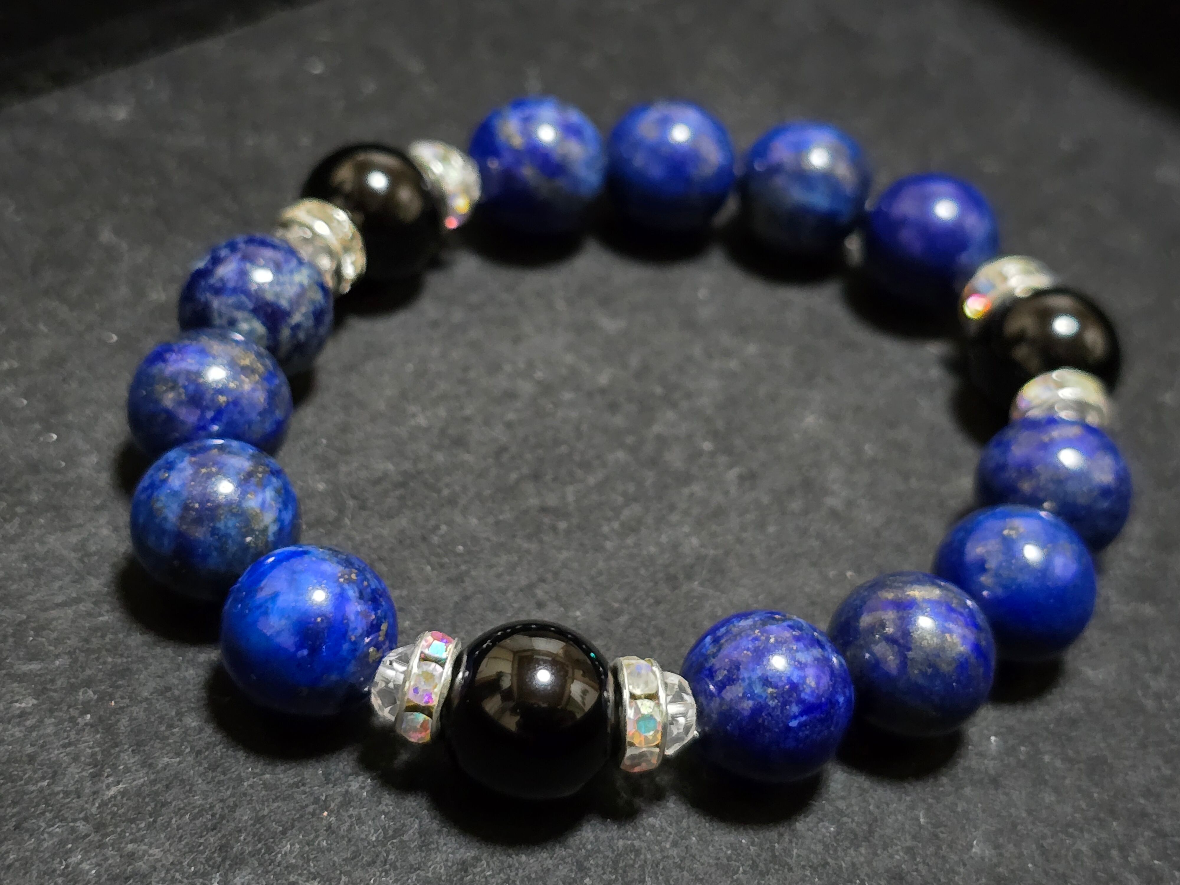 12㎜のラピスラズリとモリオンで組み上げたオリジナルブレスレットです。