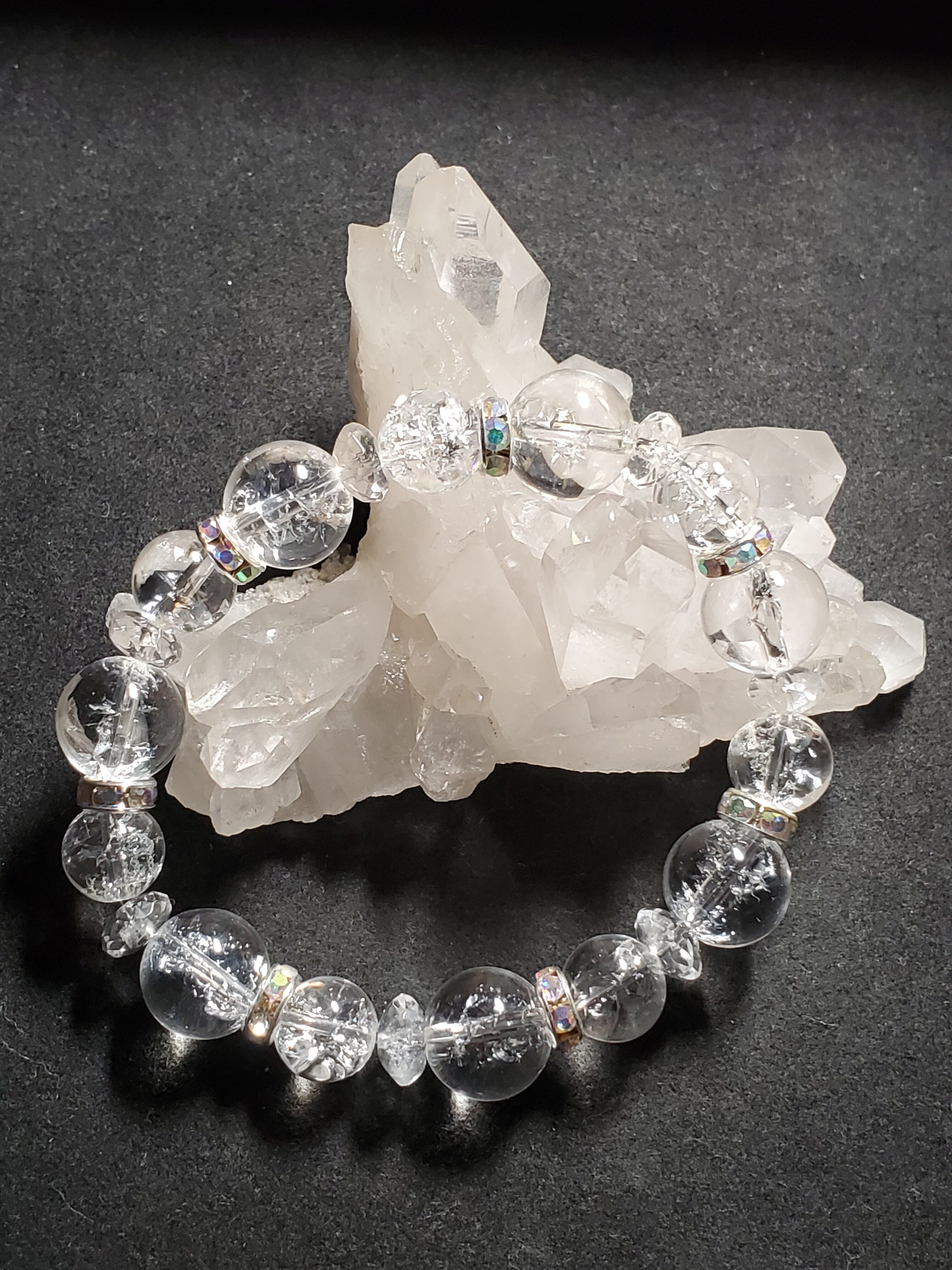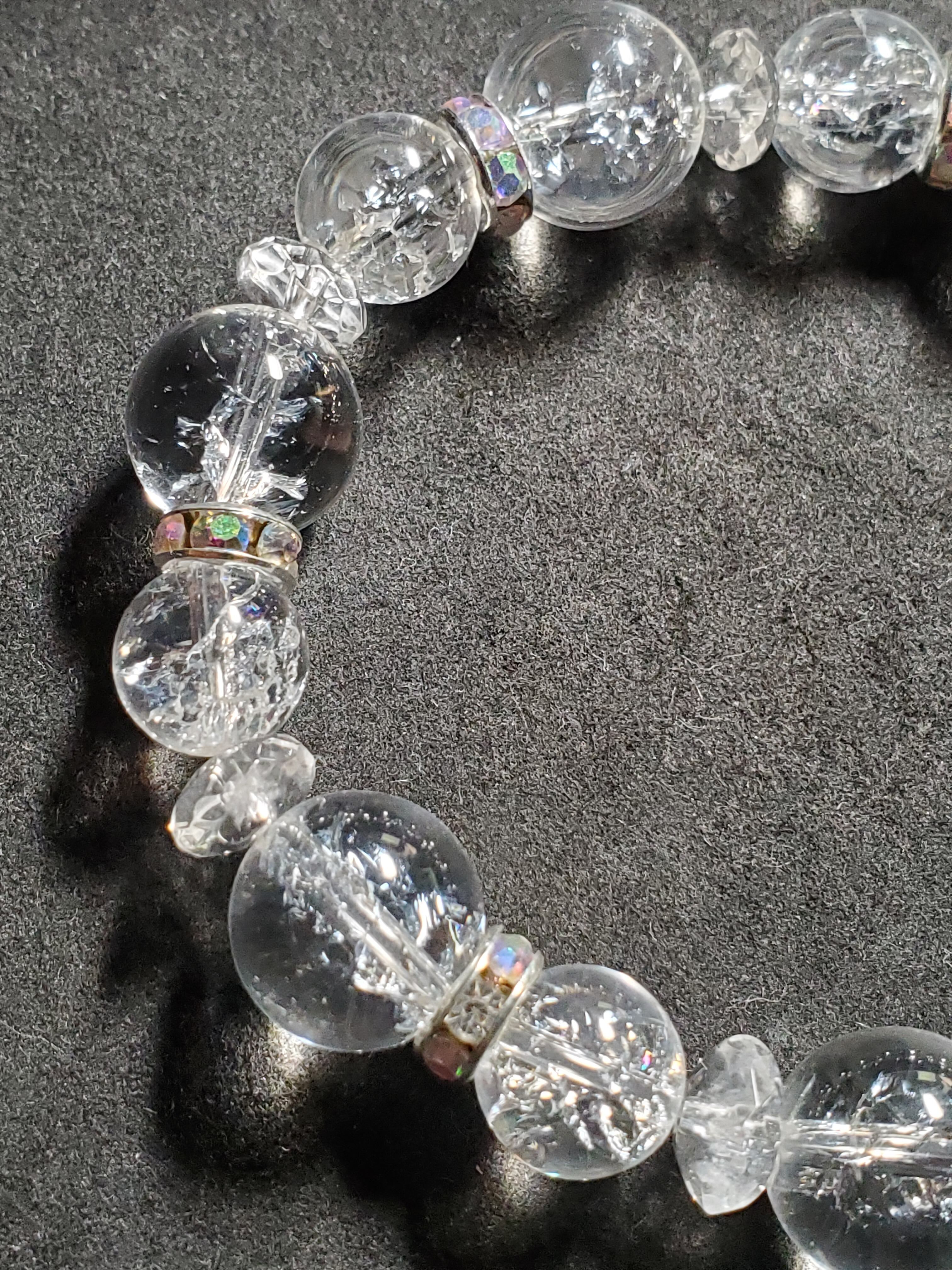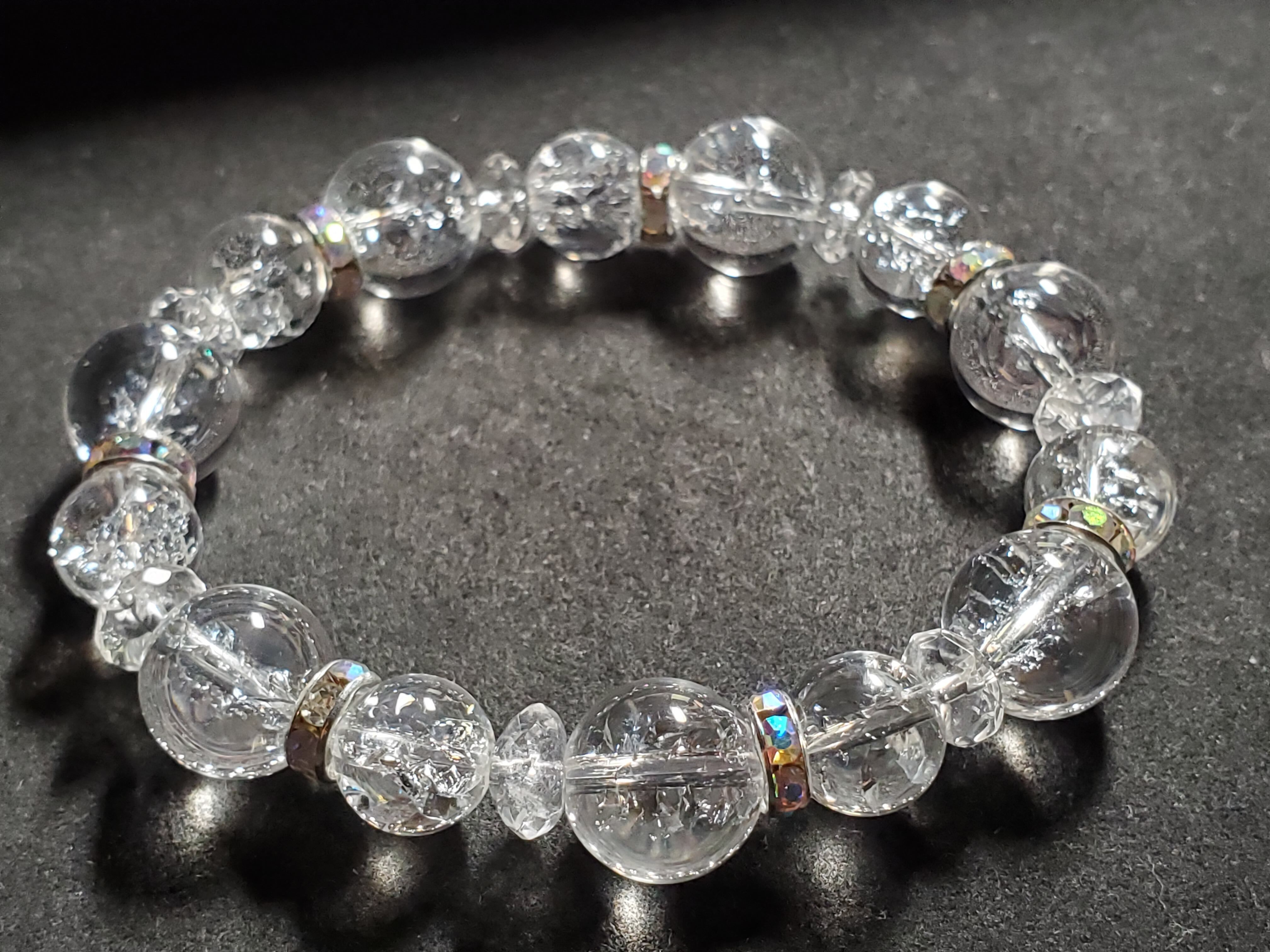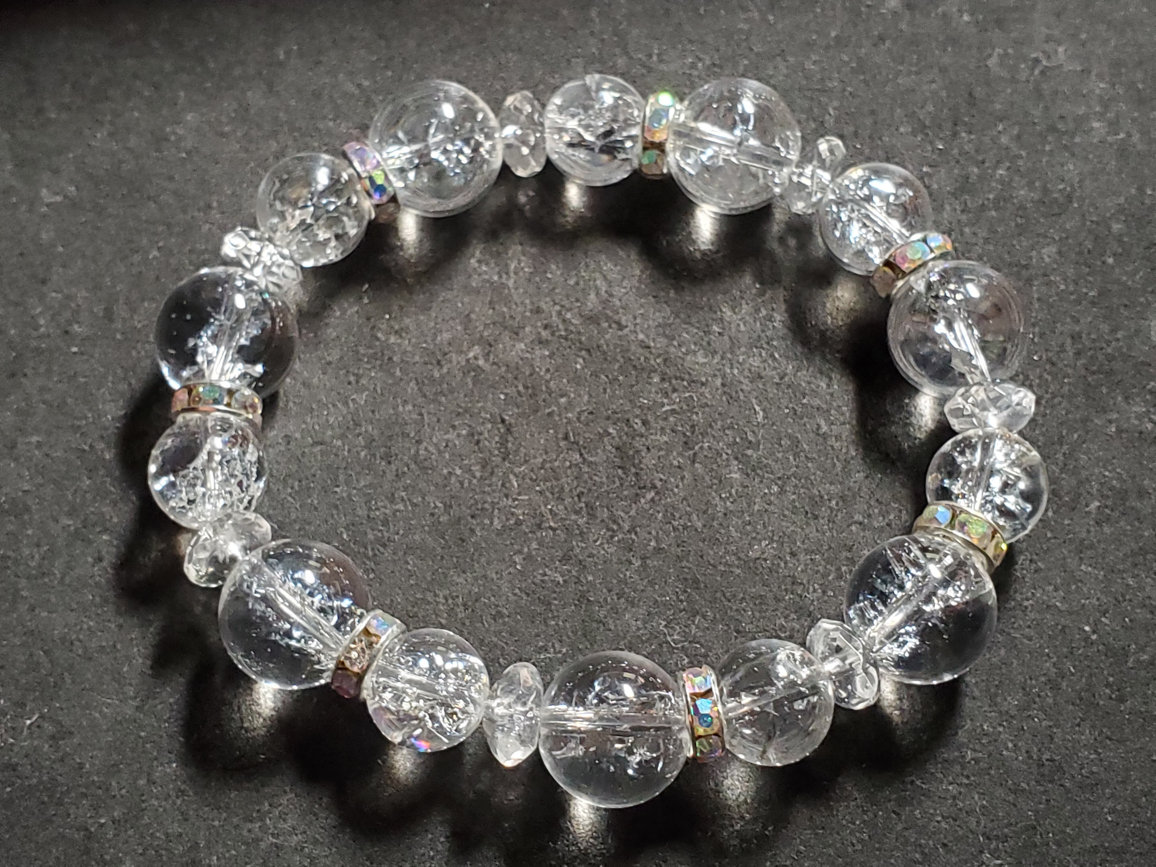 オリジナルブレスレットのレインボークラック水晶のブレスレットです。