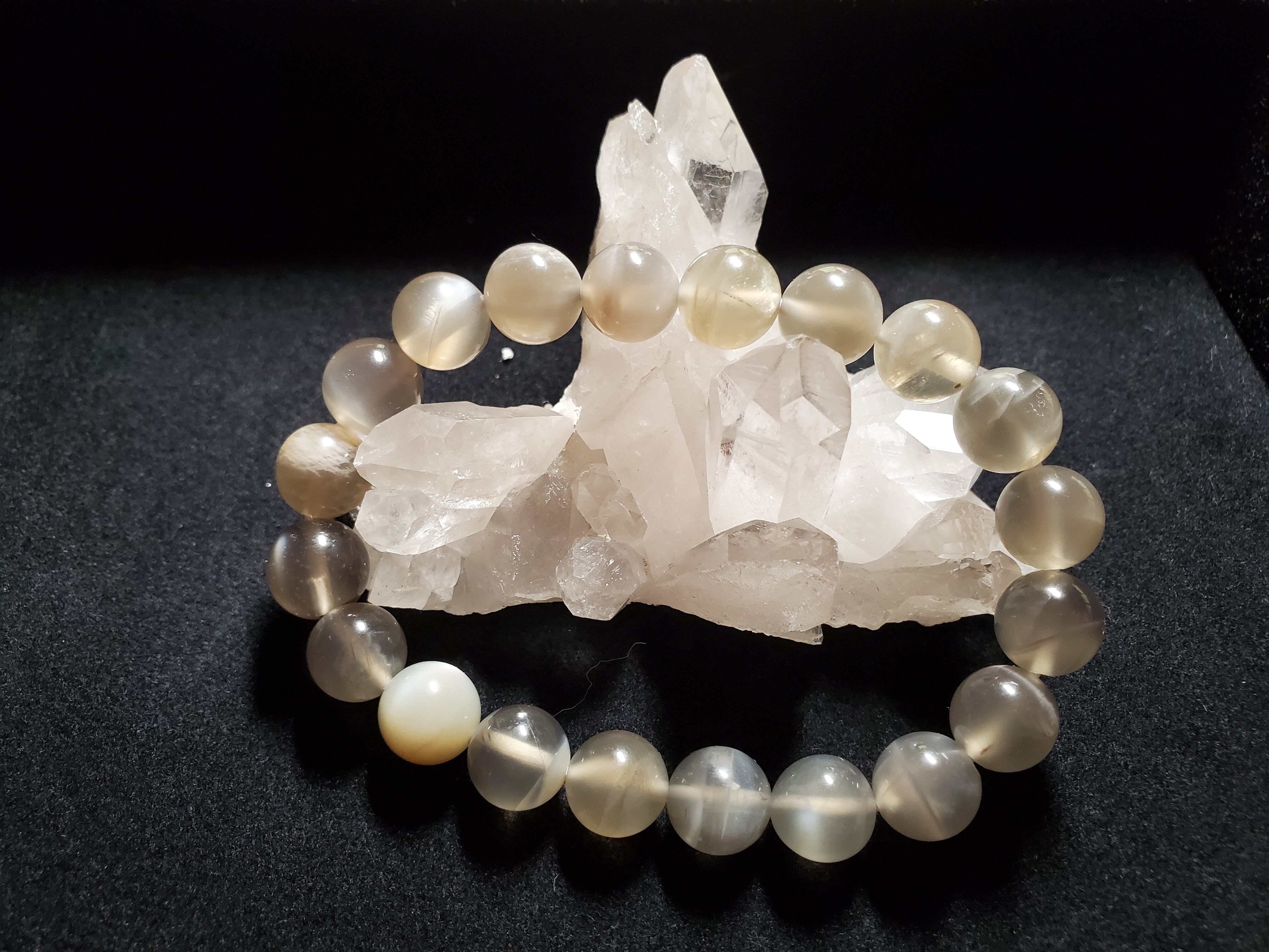 また、「勘が鋭くなる」「危険を察知する」「進むべき道を示してくれる」といった伝承が多く残っており、予知や透視、占いなどの儀式に用いられてきました。陰陽に照らし合わせるならば、月は陰、つまり影や無意識を表しています。ムーンストーンは持ち主の無意識の部分に働きかけ、潜在能力を引き出し、インスピレーションをもたらしてくれるといわれています。