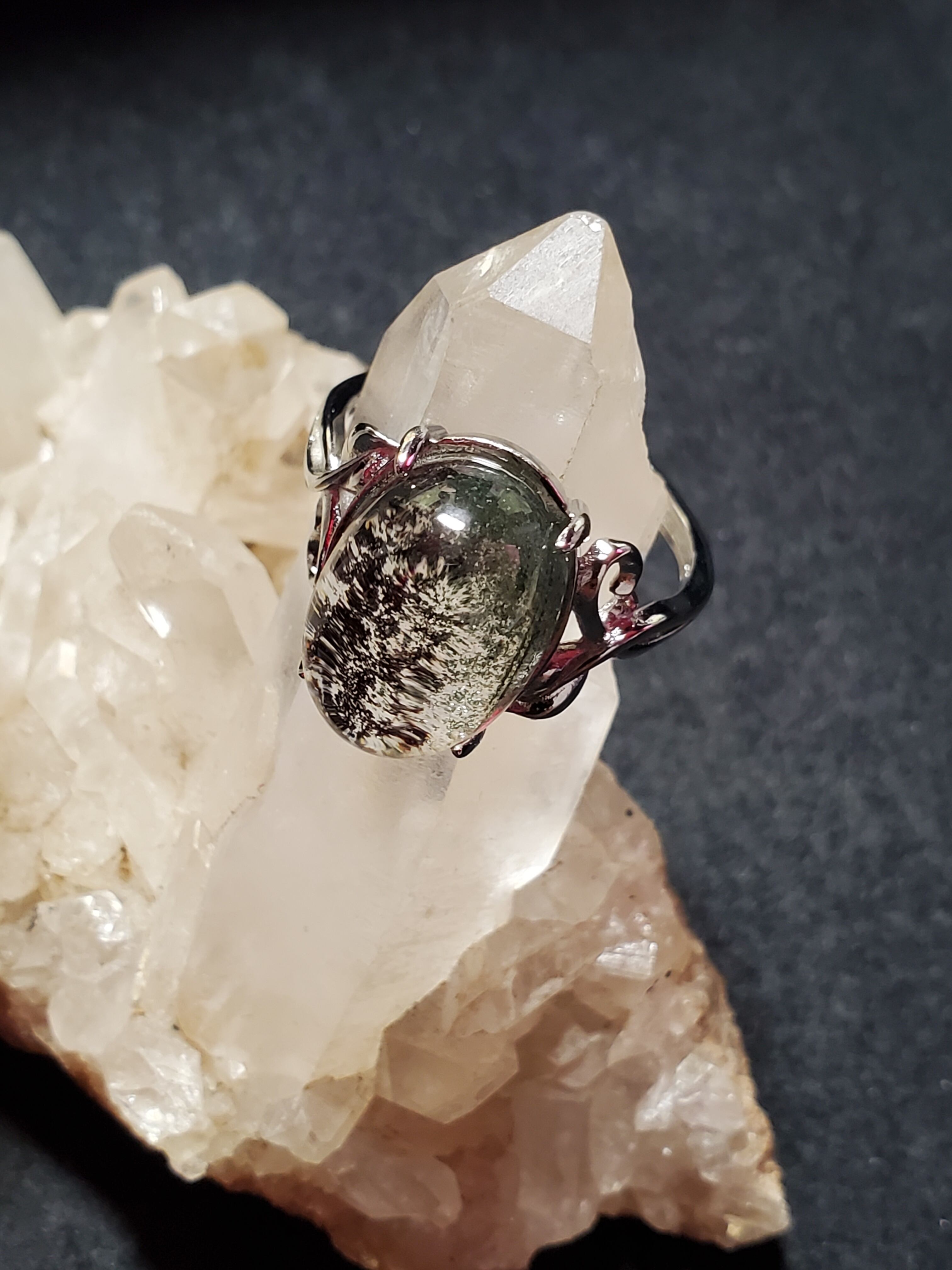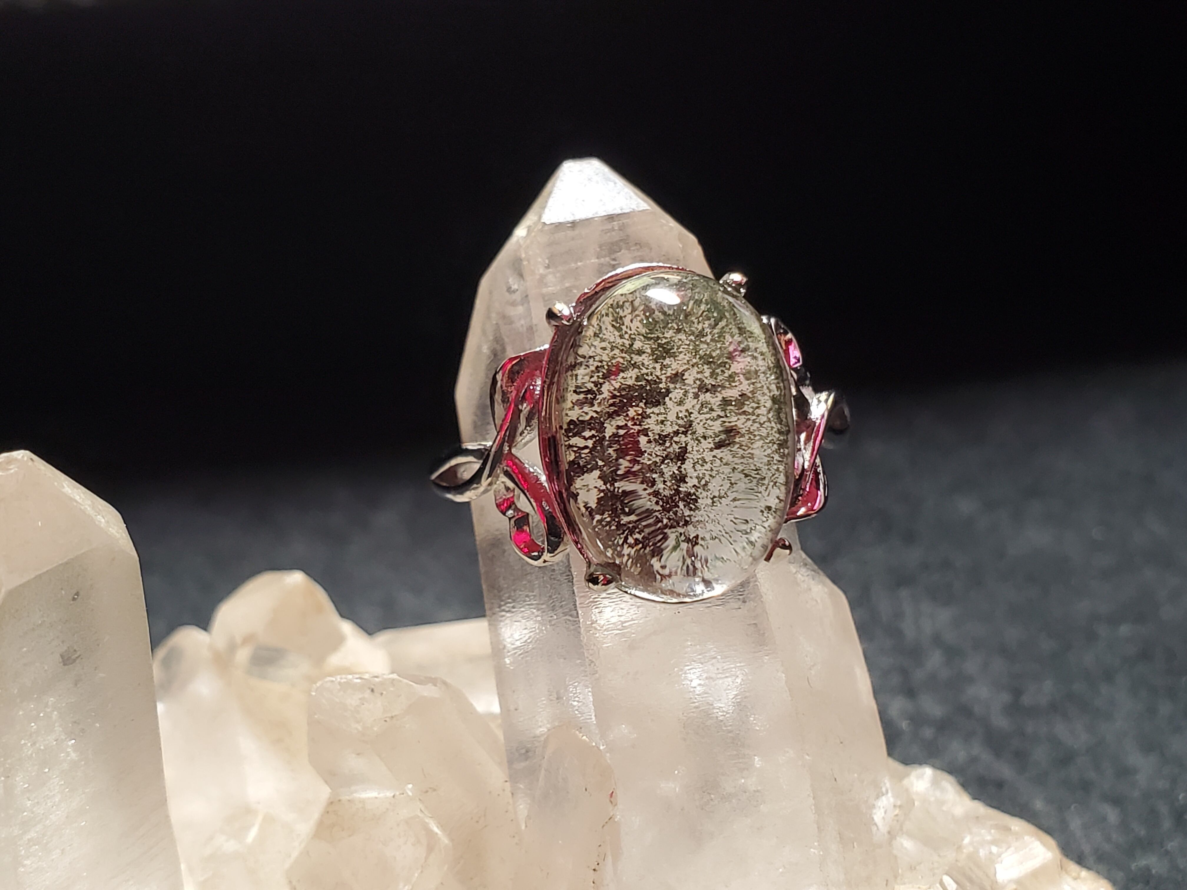 この天然石は、水晶が形成される過程で、緑や茶色の鉱物や泥岩を巻き込みながら結晶した水晶です。水晶の中に自然の風景が閉じ込められたようにも見えるため、「庭園水晶」「苔入り水晶」とも呼ばれています。石の中に見える風景は実に様々で、内包物の状態や色によって、山や川、草原、林などを連想させてくれます。
