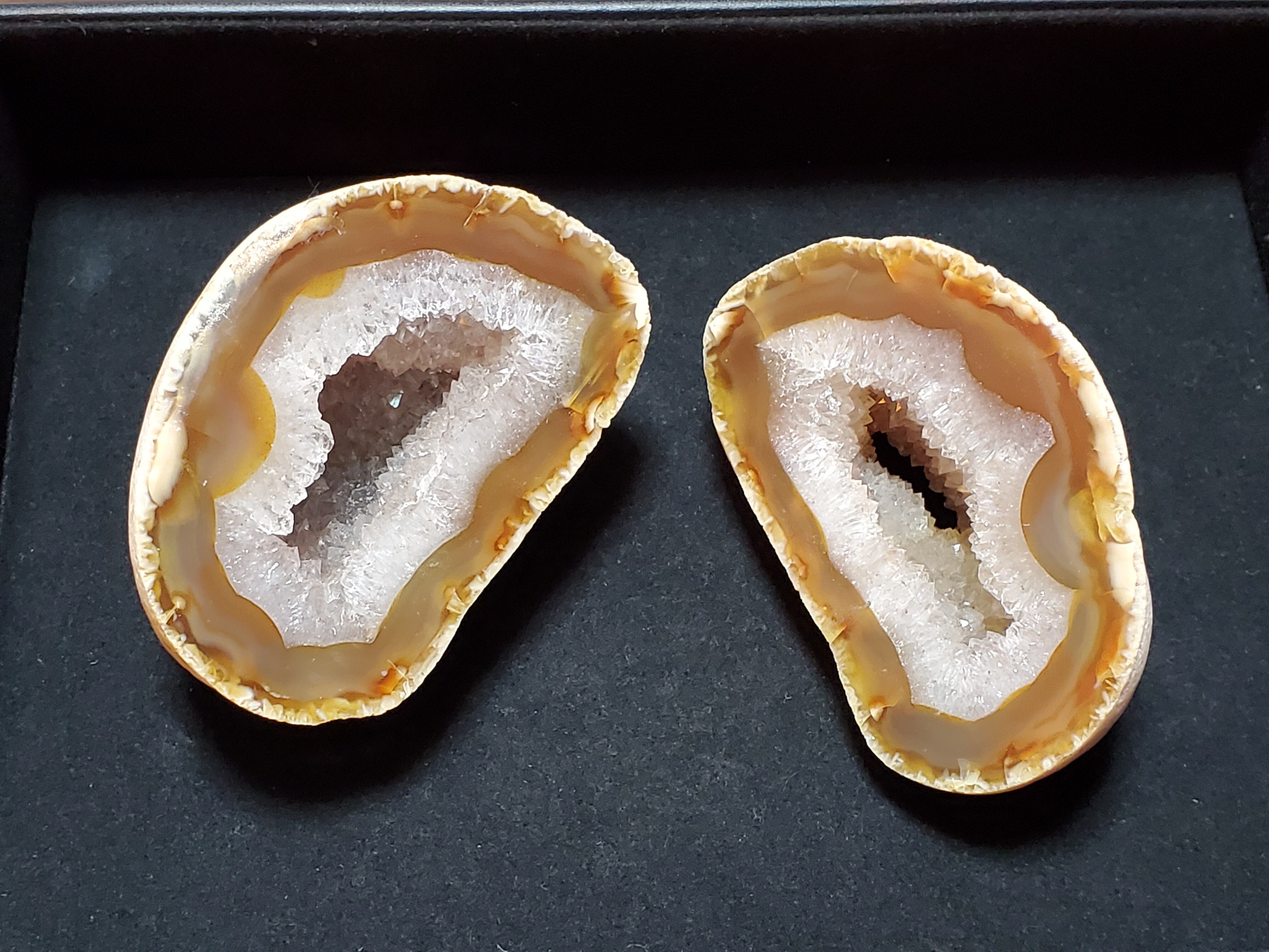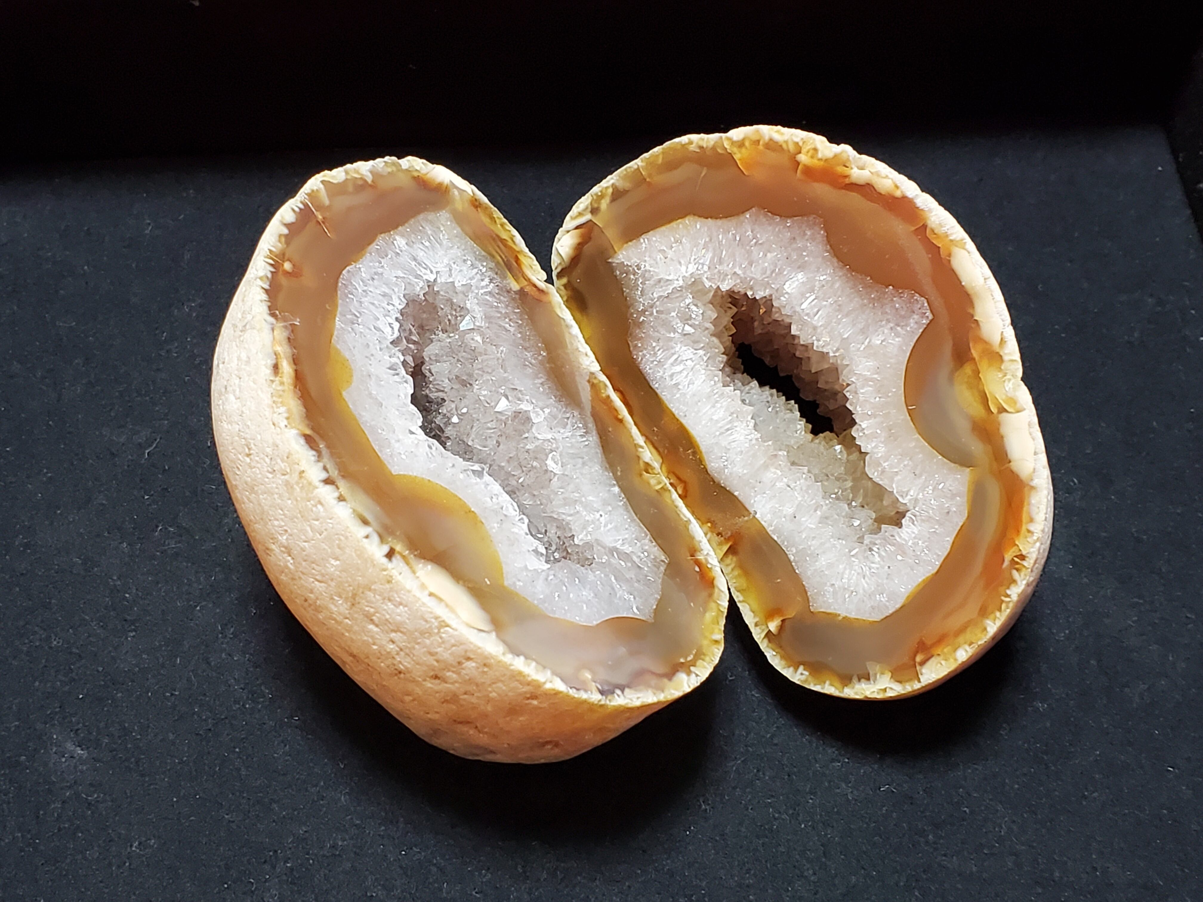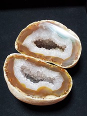また、ジオード(トレジャーメノウ)の形状から妊娠中の女性と胎児の石としても有名です。中が層となって成長していくこと、子宮を思わせる中の空洞、中の空洞は外敵を寄せ付けない、このような石の生成過程・形状から母体と胎児を幾重にも守ってくれる、「女性と胎児の石」と言われています。