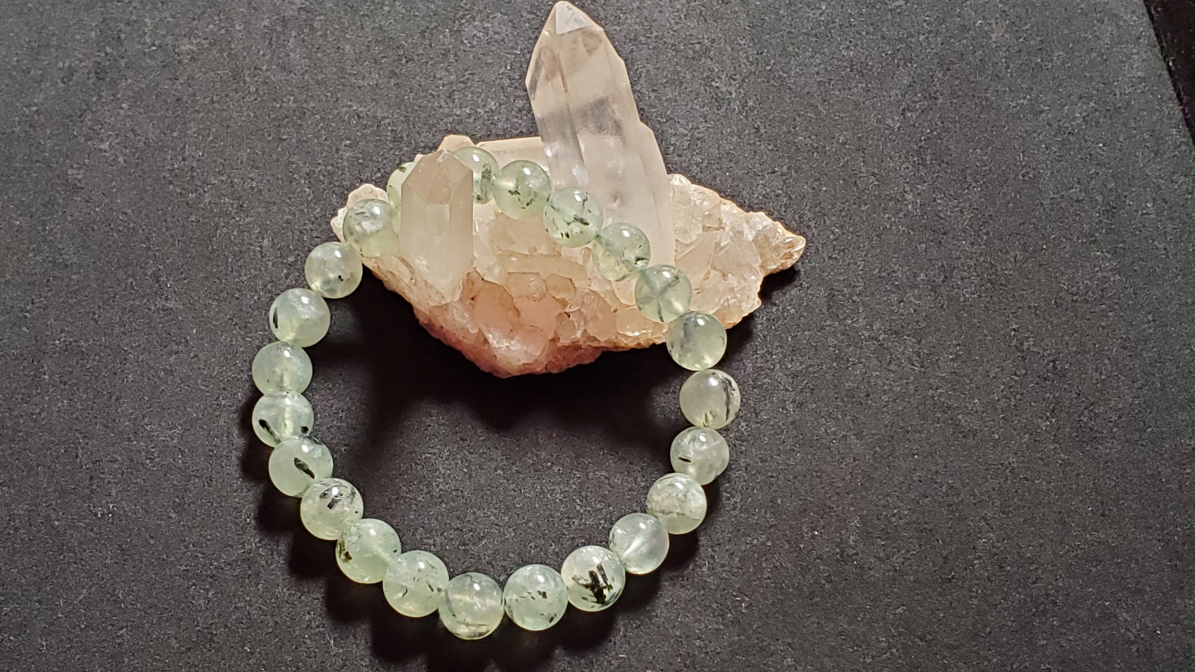 思考を明晰にし、判断力を高め、信念を突き通させる効果をもつとされますので、目標の達成を力強くサポートしてくれるでしょう。プレナイトは、粘り強さを象徴する、芯の強さをもつとされる石です。「真実を見抜く石」と呼ばれ、本当に必要な情報だけを選択できる力を養う効果があるといわれています。さまざまな情報に惑わされて、決断に悩む人は、身につけてみてください。プレナイトのパワーは、思考をクリアにし、物事の本質をとらえられるようサポートしてくれるでしょう。協調性をはぐくむ作用もあるとされるため、我が強かったり、ついライバル意識をもってしまう人は、エネルギーが正しい方向へ向けられるようになるはずです。過剰な競争心をしずめ、心に真の平安をもたらしてくれるでしょう。