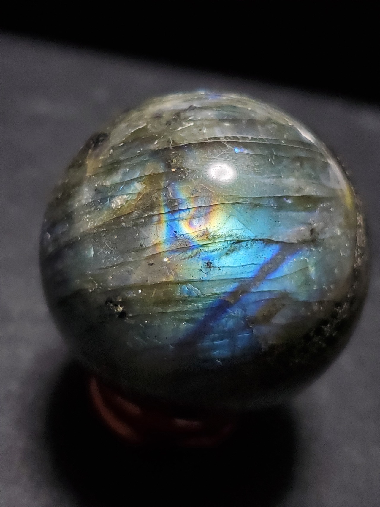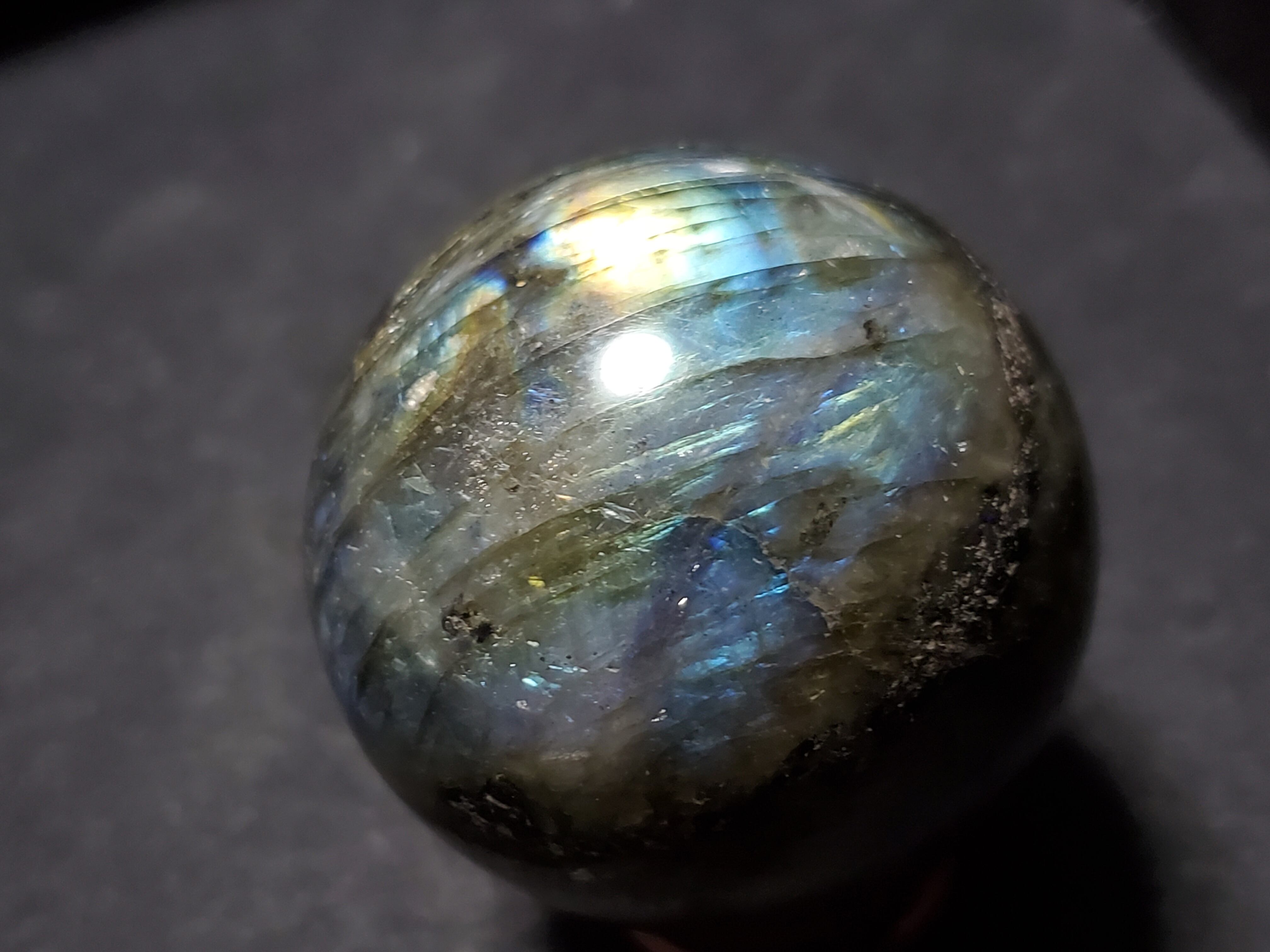 月、太陽を象徴するといわれるラブラドライトは、根気強い実行力を養い、信念を貫けるよう導く力があるとされますそして、特に「虹色」の光を持つものは、 「霊性を高める石」として尊ばれ、予知能力や霊的な能力を敏感にし、高次の意識レベルへ到達できるようオーラバランスを整えると言われています。 ラブラドライトの神秘的な輝きは銀河系の惑星から宿ったと言われ、宇宙の叡智を秘めたものとされます。その果てしなく壮大な宇宙空間に広がる神秘のエネル ギーが、人間の意識レベルを超えた鋭いインスピレーションをもたらし、直感力・洞察力・創造性を高めてくれるでしょう。 また、神秘的な波動が強く“魂のルーツ”を象徴する石とも言われ、深く眠った魂レベルでの意識・記憶力を目覚めさせ潜在能力を引き出してくれます。 自信を失いかけた時に、生まれた意味・生きる意味を探し求める人の魂にそっと語りかけ、真理の追求し魂レベルでの自己への探求へと導きます。 魂の成長を促すことで抑圧された感情を解放し、今を生きる力を引き出してくれるのです。エネルギーを良い形で循環させるラブラドライトは、ネガティブなエ ネルギーを除去するのにも有益な石で、ストレスや悪いエネルギーからの要因で起こる精神的な損傷に対しても素晴らしい癒しを施してくれますよ。 自分に合う仕事・環境・人脈を引き寄せるパワーがあるので、転職や就職、自分と価値観の近い人や共通点を持つ人に出会いたいと願う時に力を貸してくれる石 です。