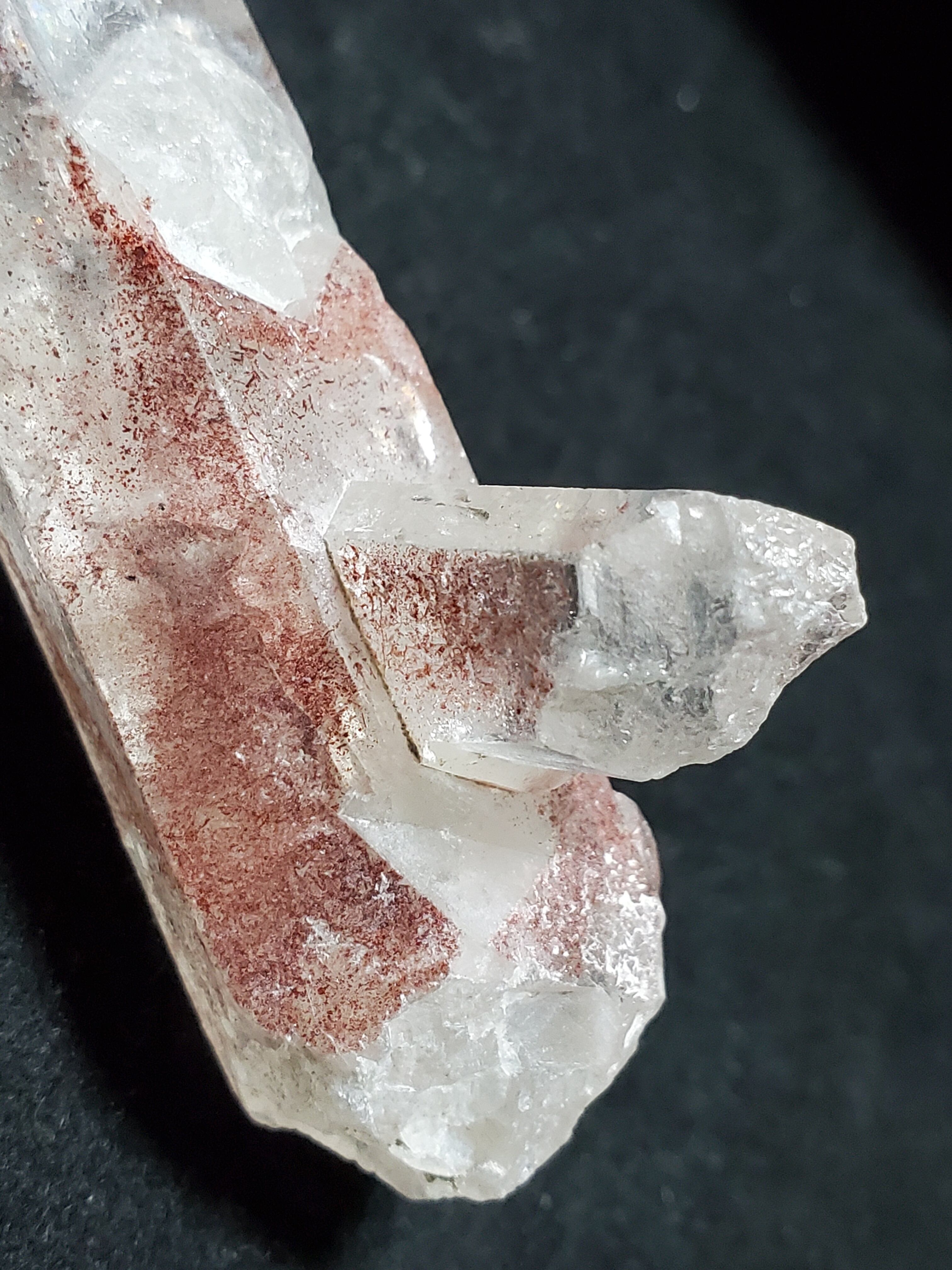 水晶のクラスターに、細かい粒子状のヘマタイトが付着した「ヘマタイト・オン・クォーツ」。