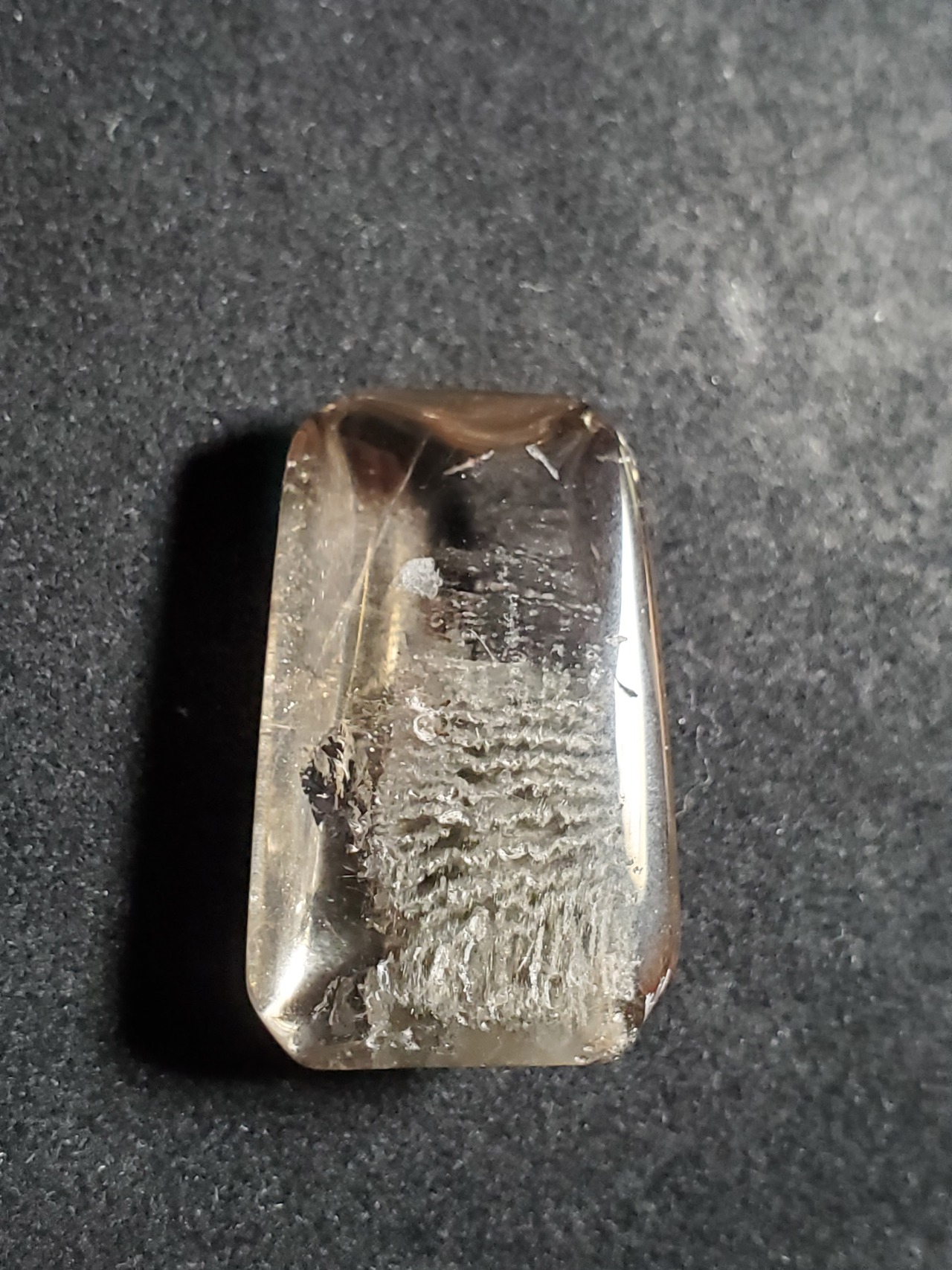 ひとくくりにガーデンクォーツといっても、その表情や種類は様々です。茶色い内包物が含まれるもの、緑色の内包物が含まれるもの、その両方が含まれるもの、さらにファントムが見られるものもあります。ファントムとは、水晶が成長していく過程で地殻変動などのショックが加わり、水晶の成長が一時的に停止した際に、その表面に別の元素が付着し、さらにその後長い年月を経て、水晶が再び成長を始めたために、結晶の中に斜めや三角、山型の像が模様として残る現象を言います。ファントムタイプのガーデンクォーツは、自らの成長の記憶を内部に刻み込んでいるため、持ち主の潜在能力を引き出し、成長を促してくれると伝えられています。