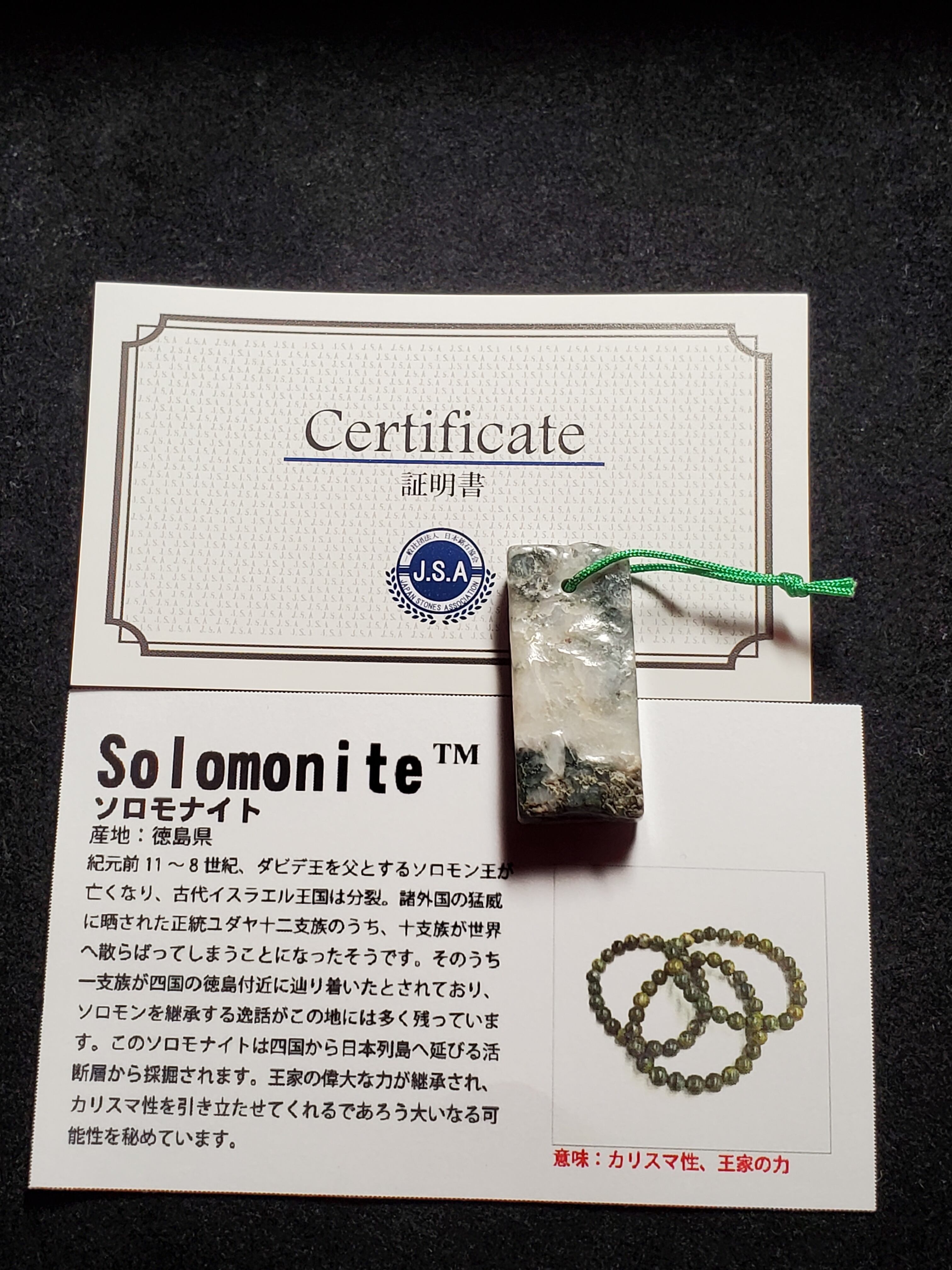 ソロモナイトの意味は、「聖なる守り」「絶大なる権力」、 「不老長寿」、「末代までの繁栄」、「不変」。