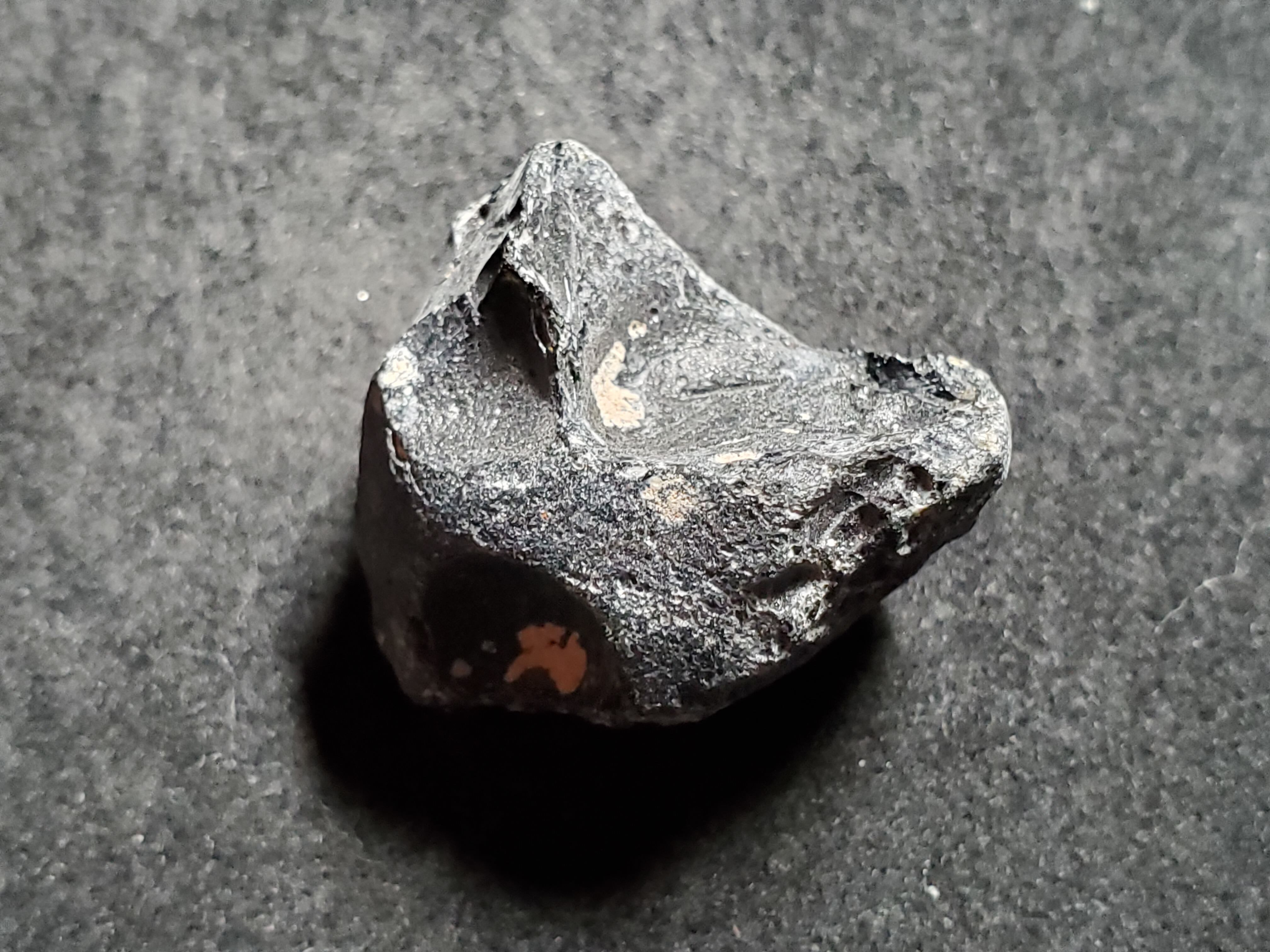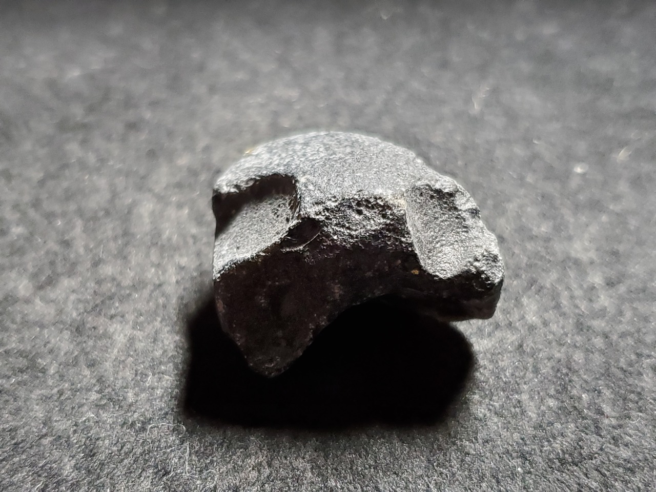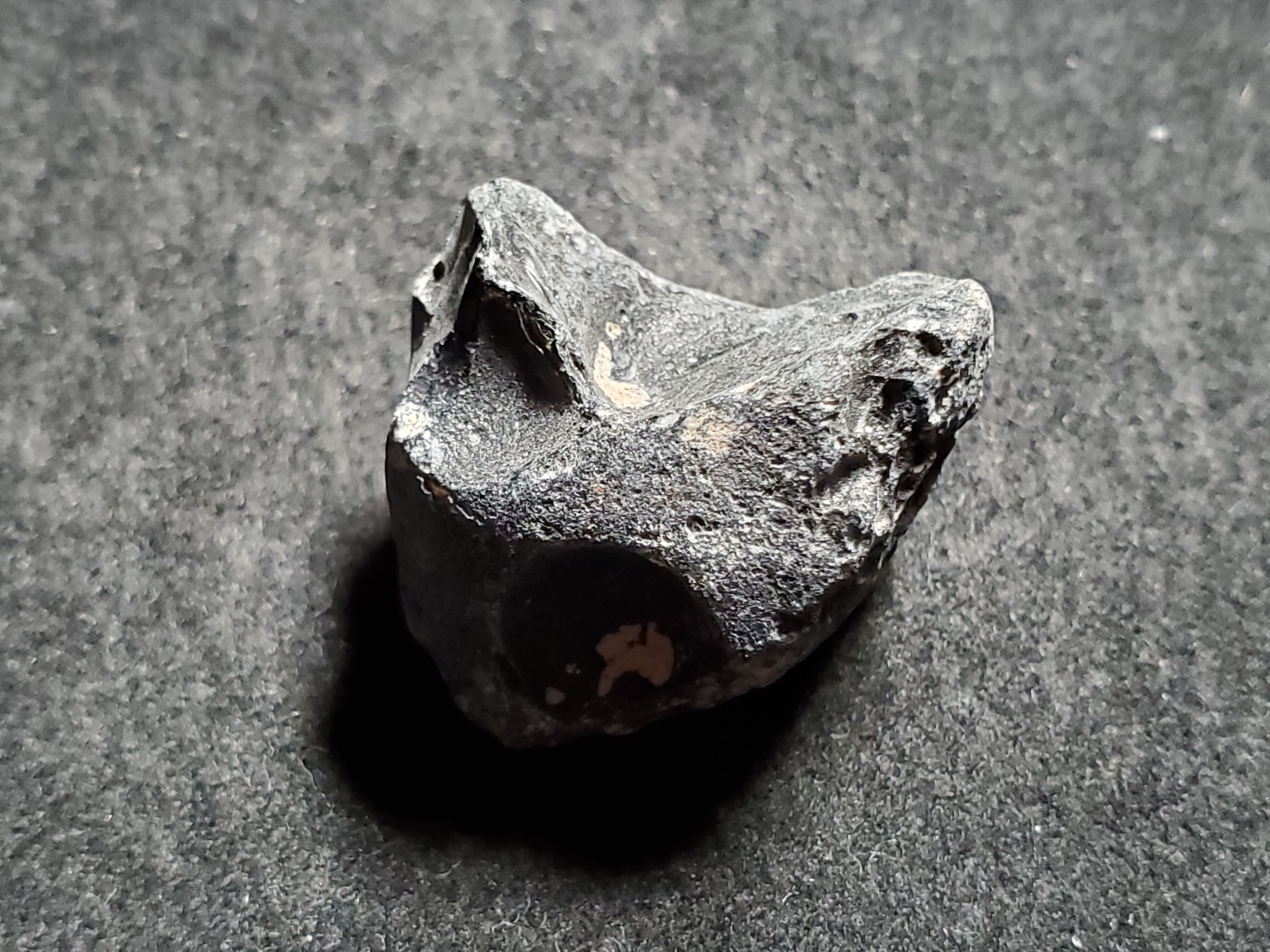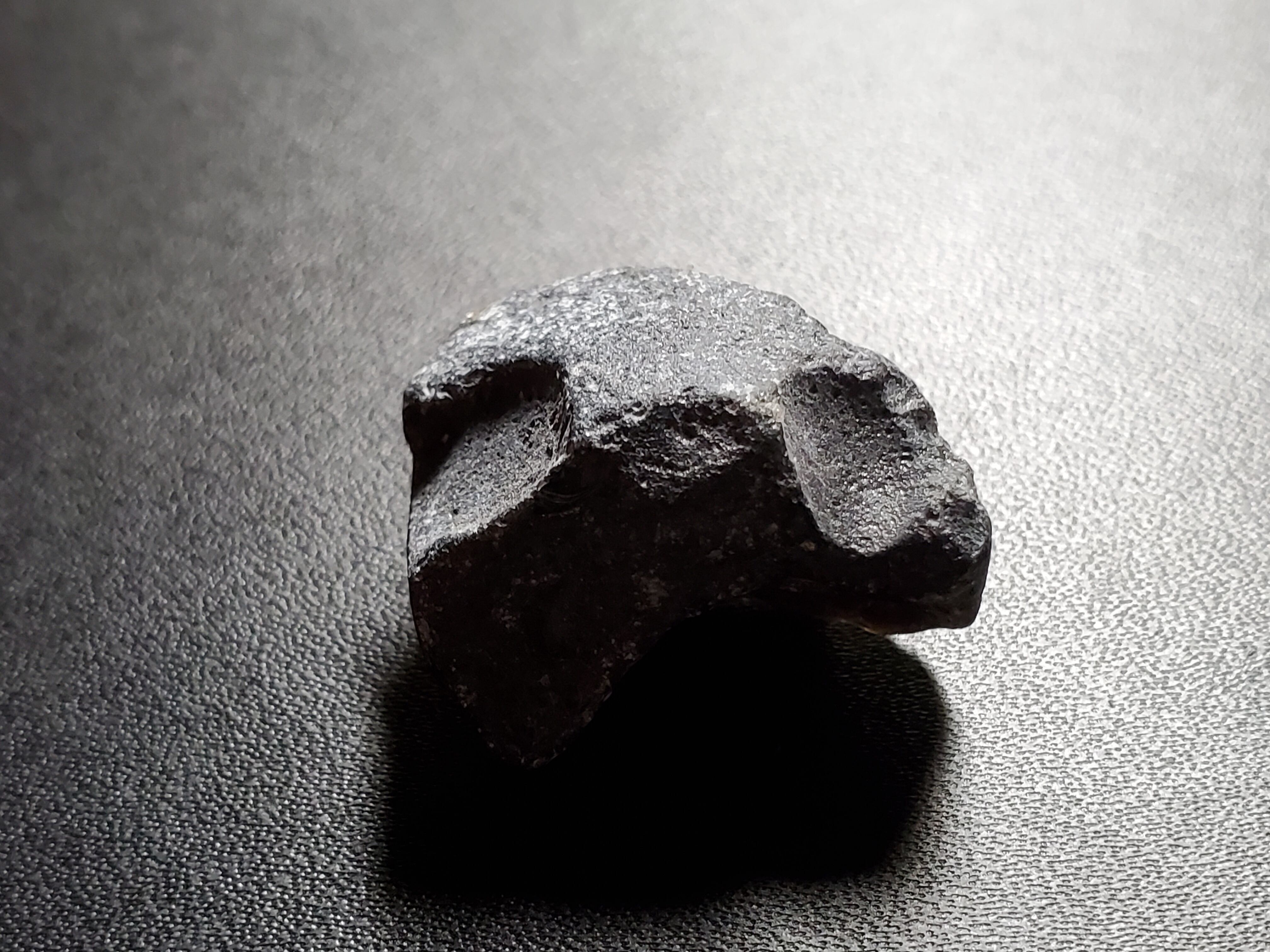 テクタイトはほとんどが黒色や黒に近い褐色をしており、表面に溶岩のような小さな窪み(ディンブル)と内部には気泡や飛翔痕がみらる特徴があります。