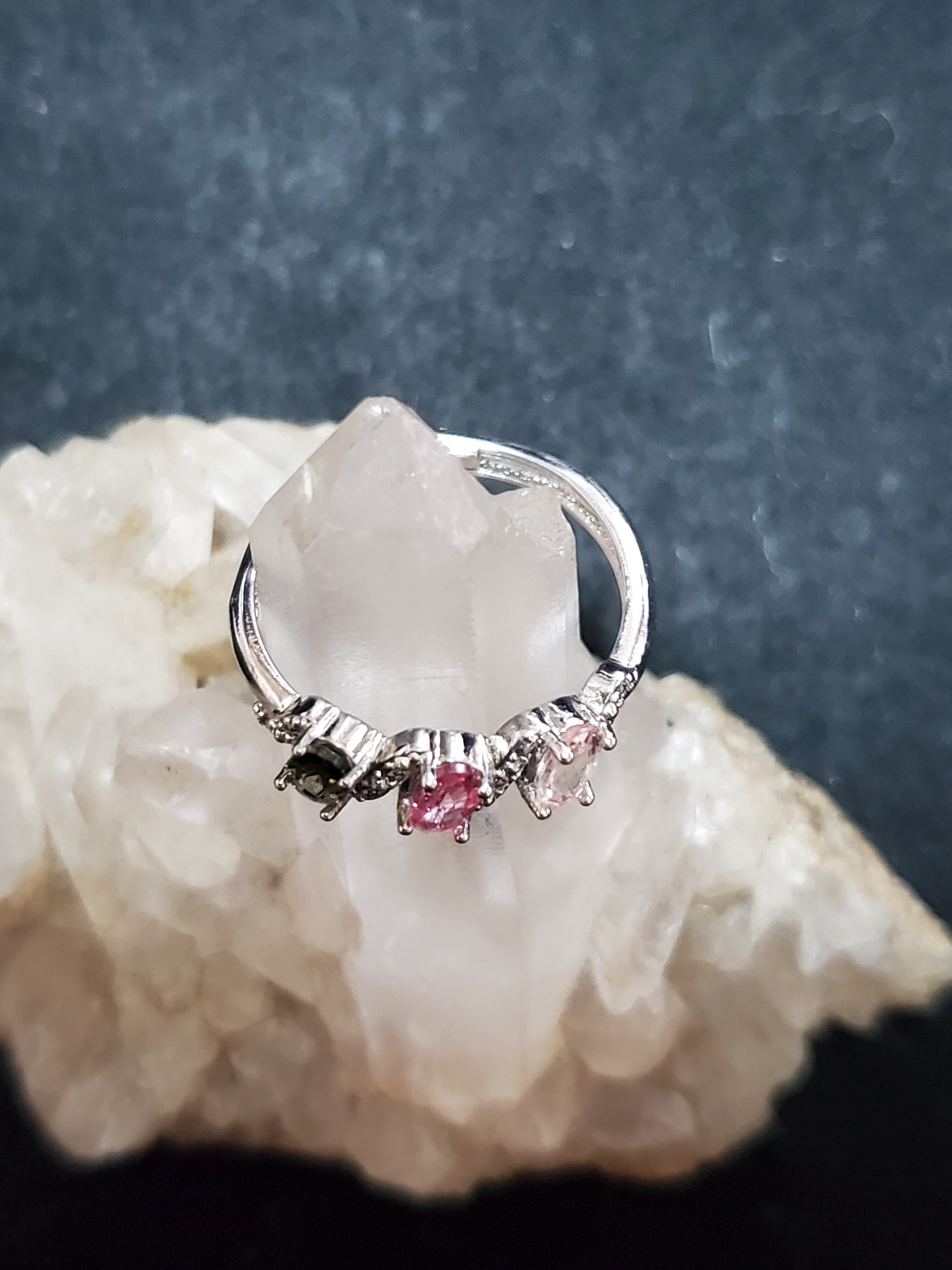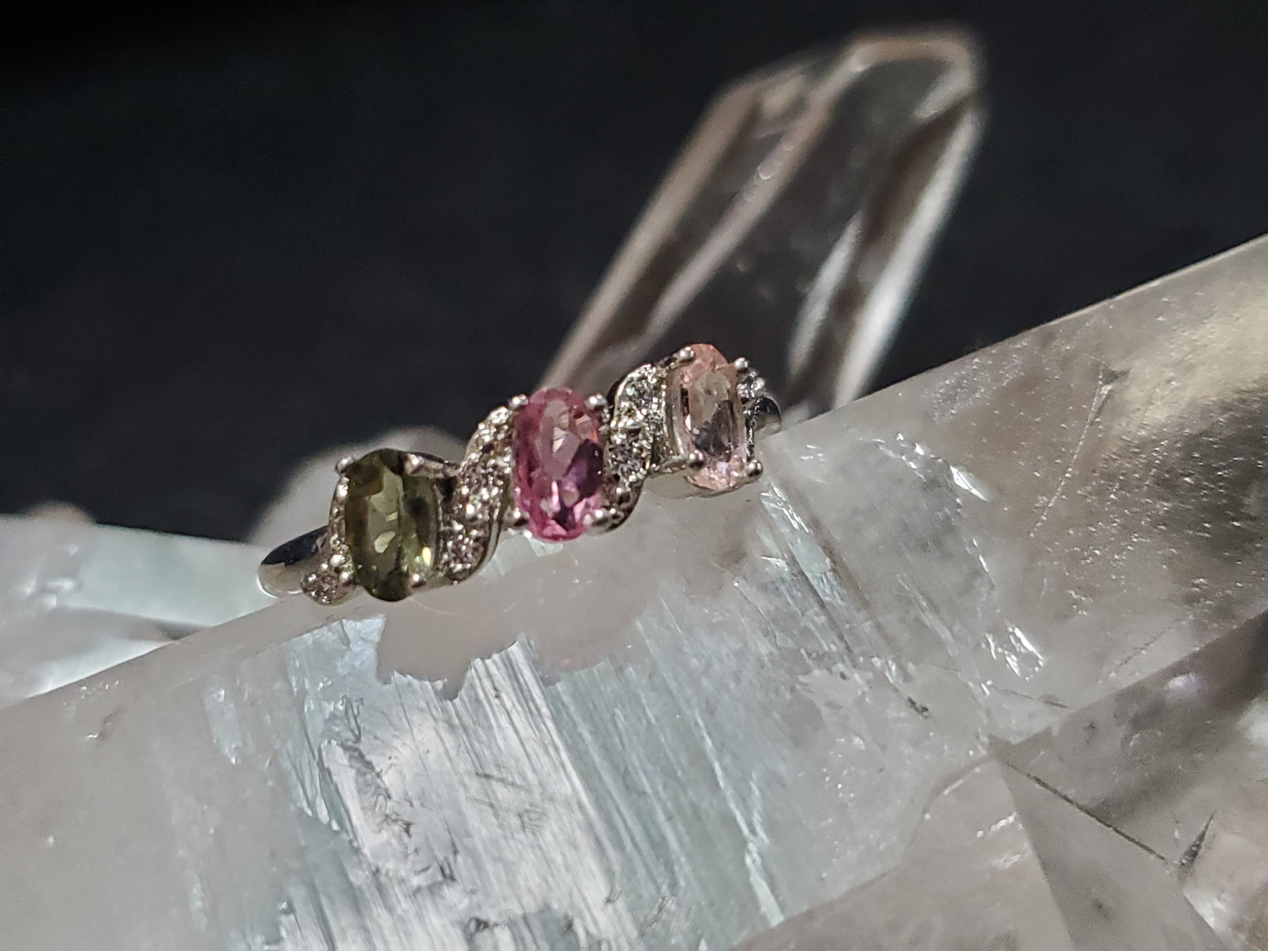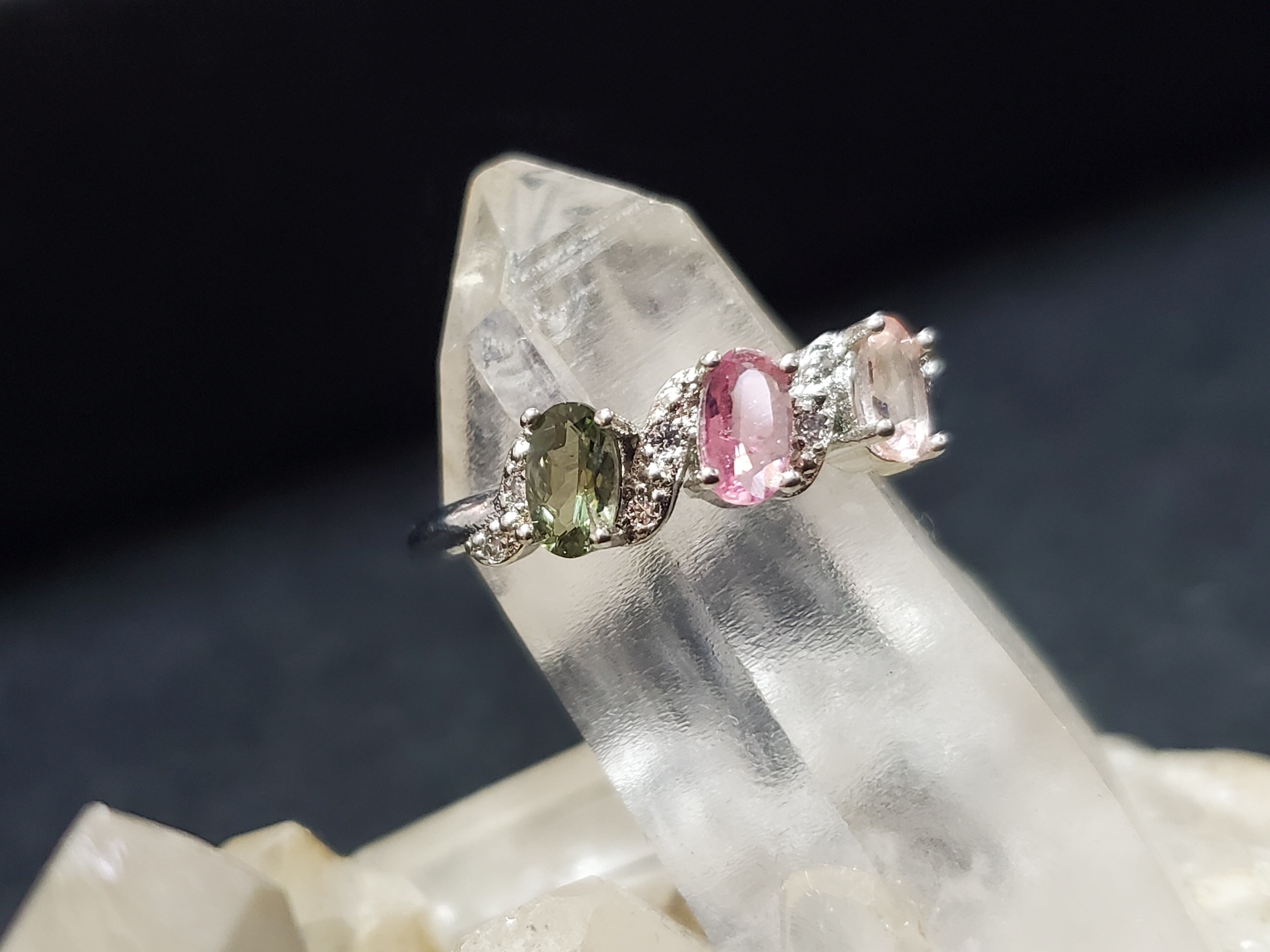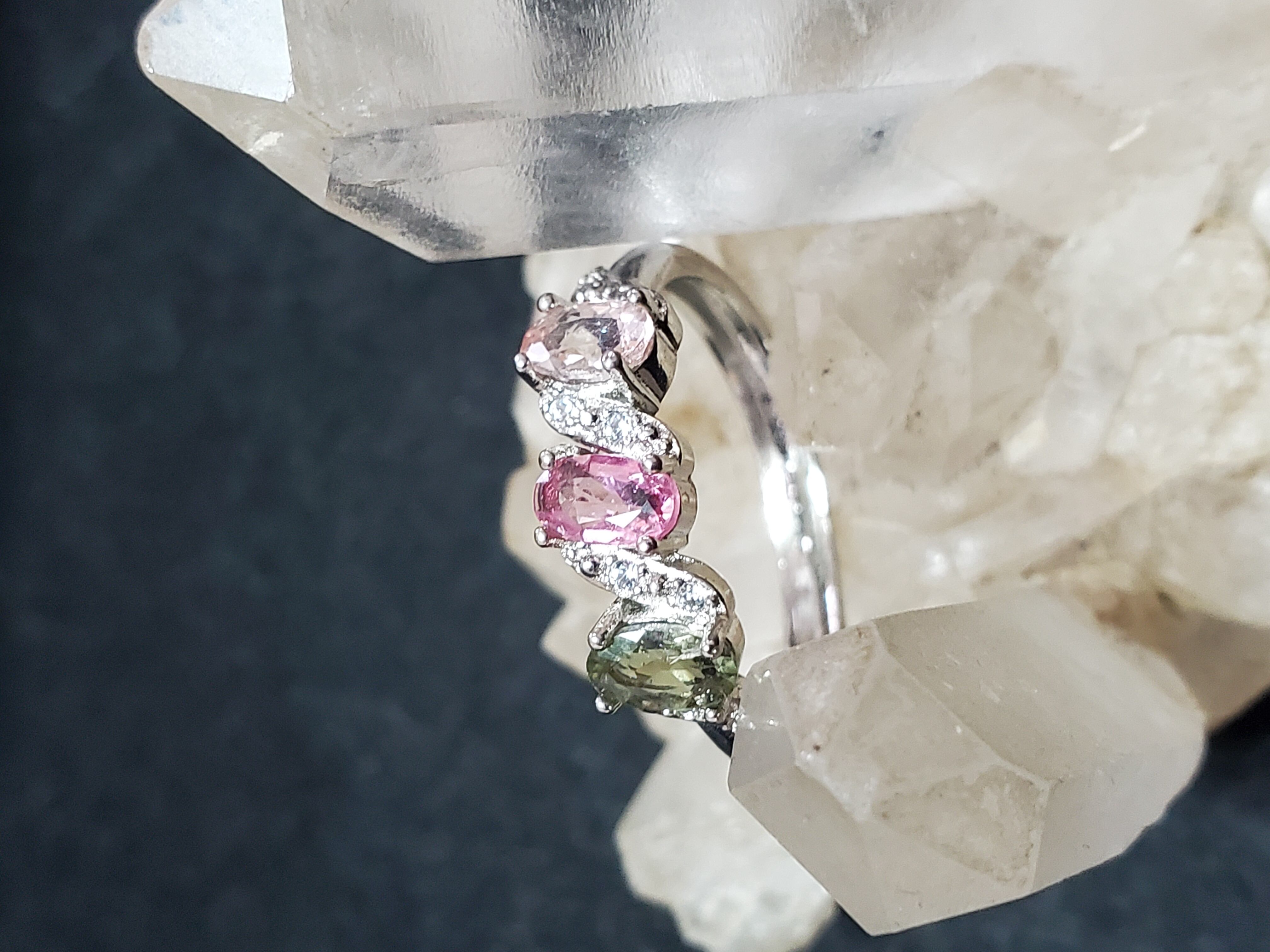 グリーン、ピンクのトルマリンが使われています。