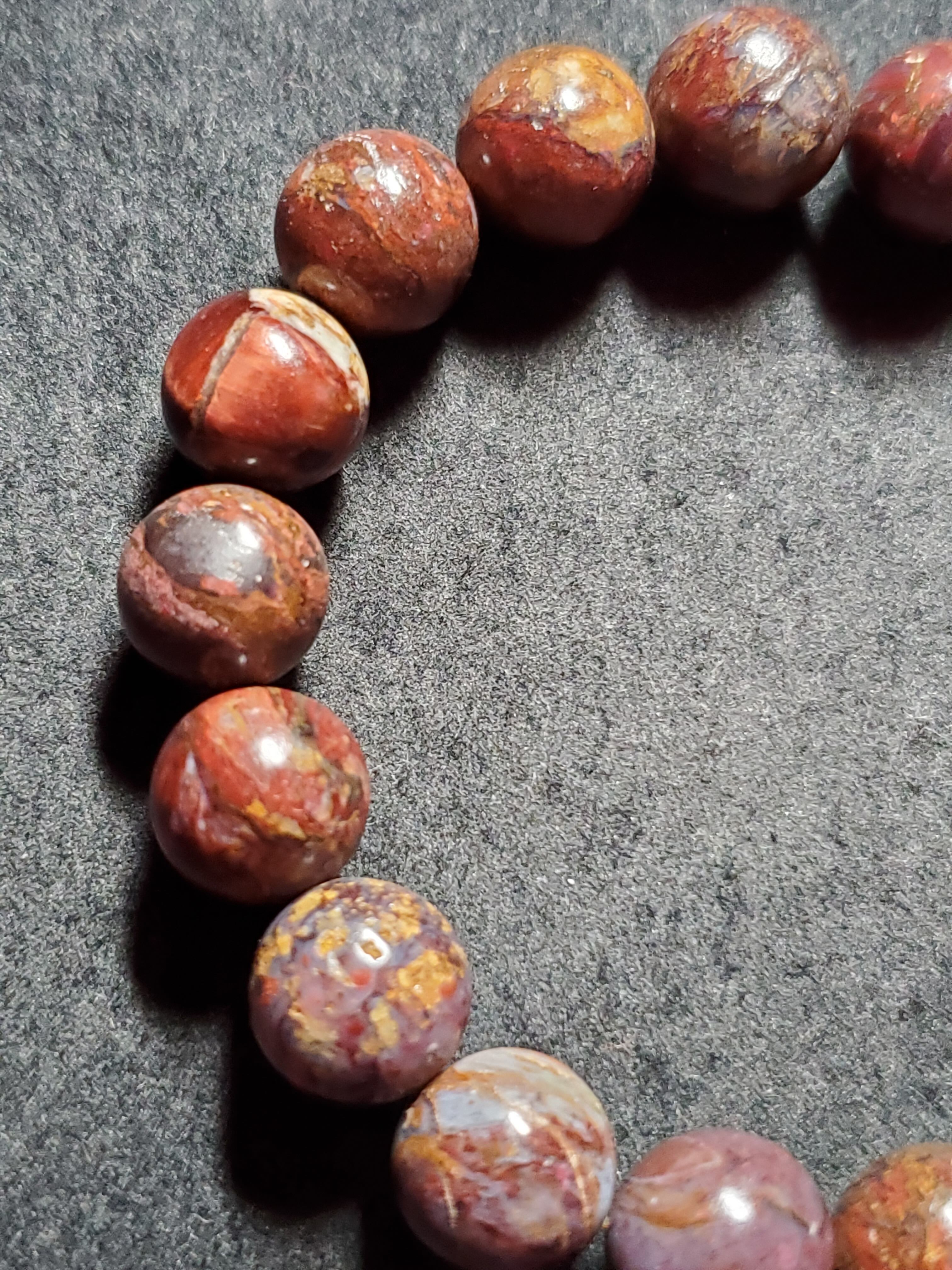 ピーターサイトは、角閃石の一種で、タイガーアイだった鉱物が地表の地殻変動などによって粉砕され、後に石英(クォーツ)が染み込み再度固められたものです。