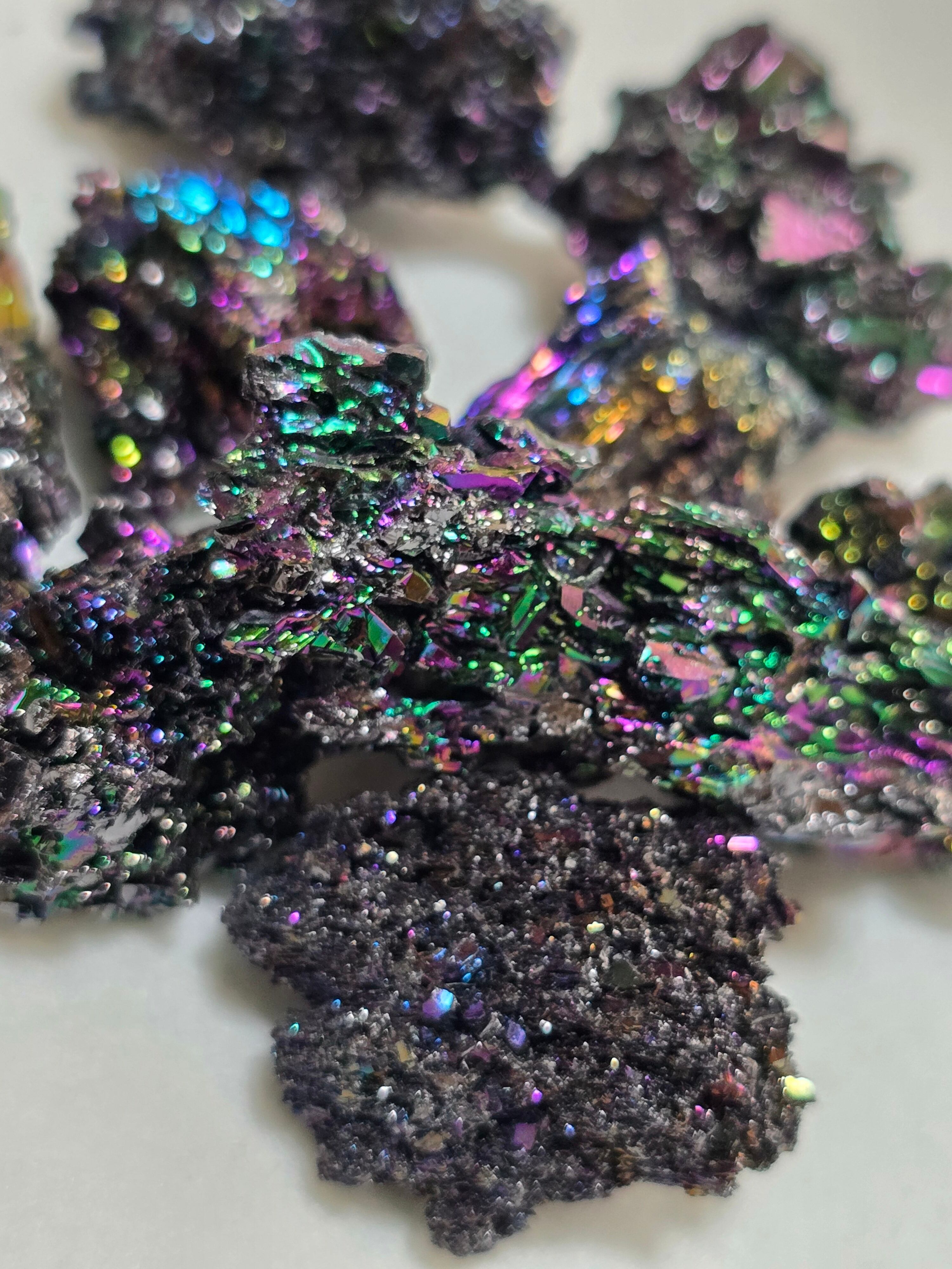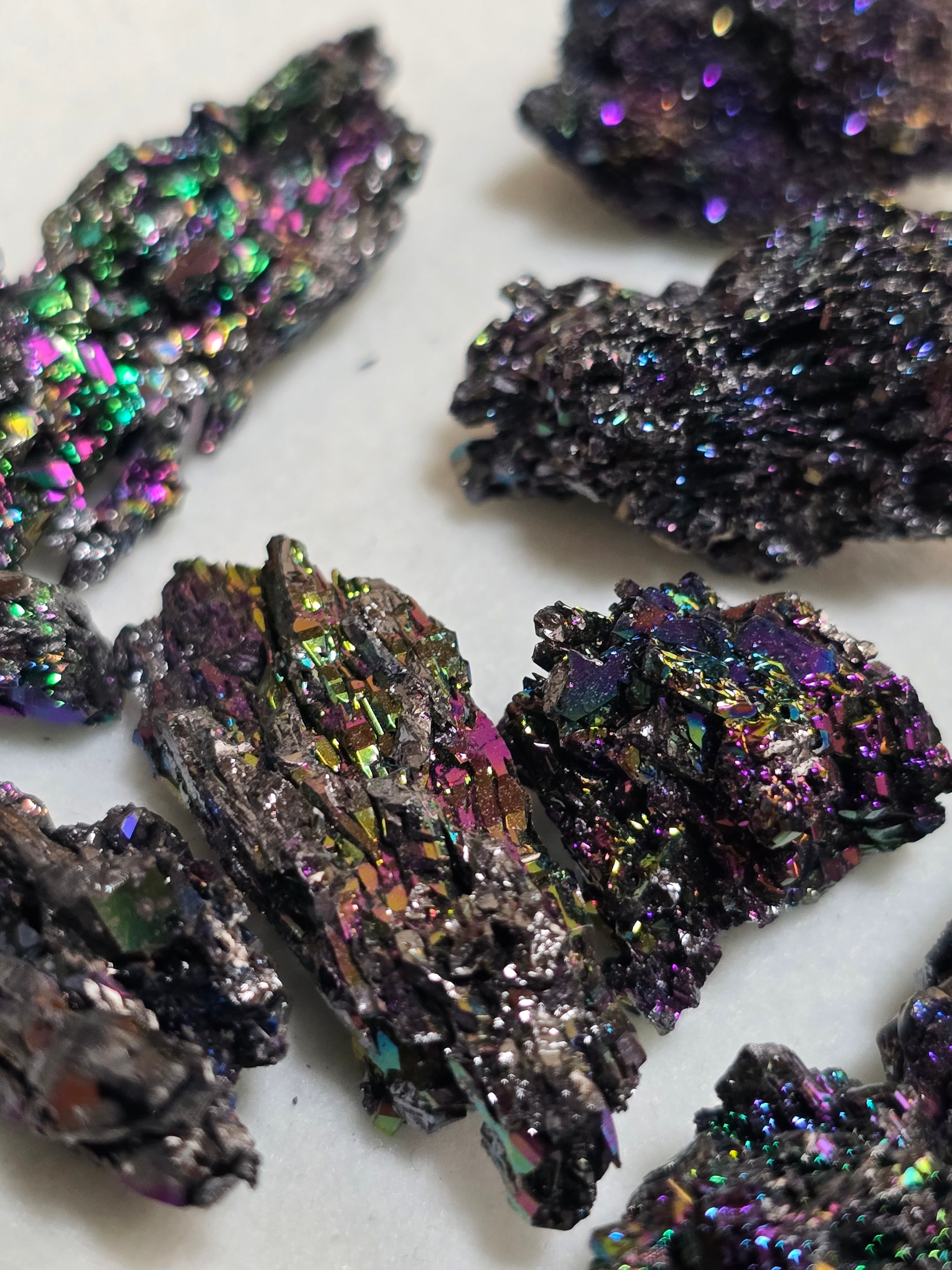 焼却処理を施すことにより、七色に輝く表面に変化します。