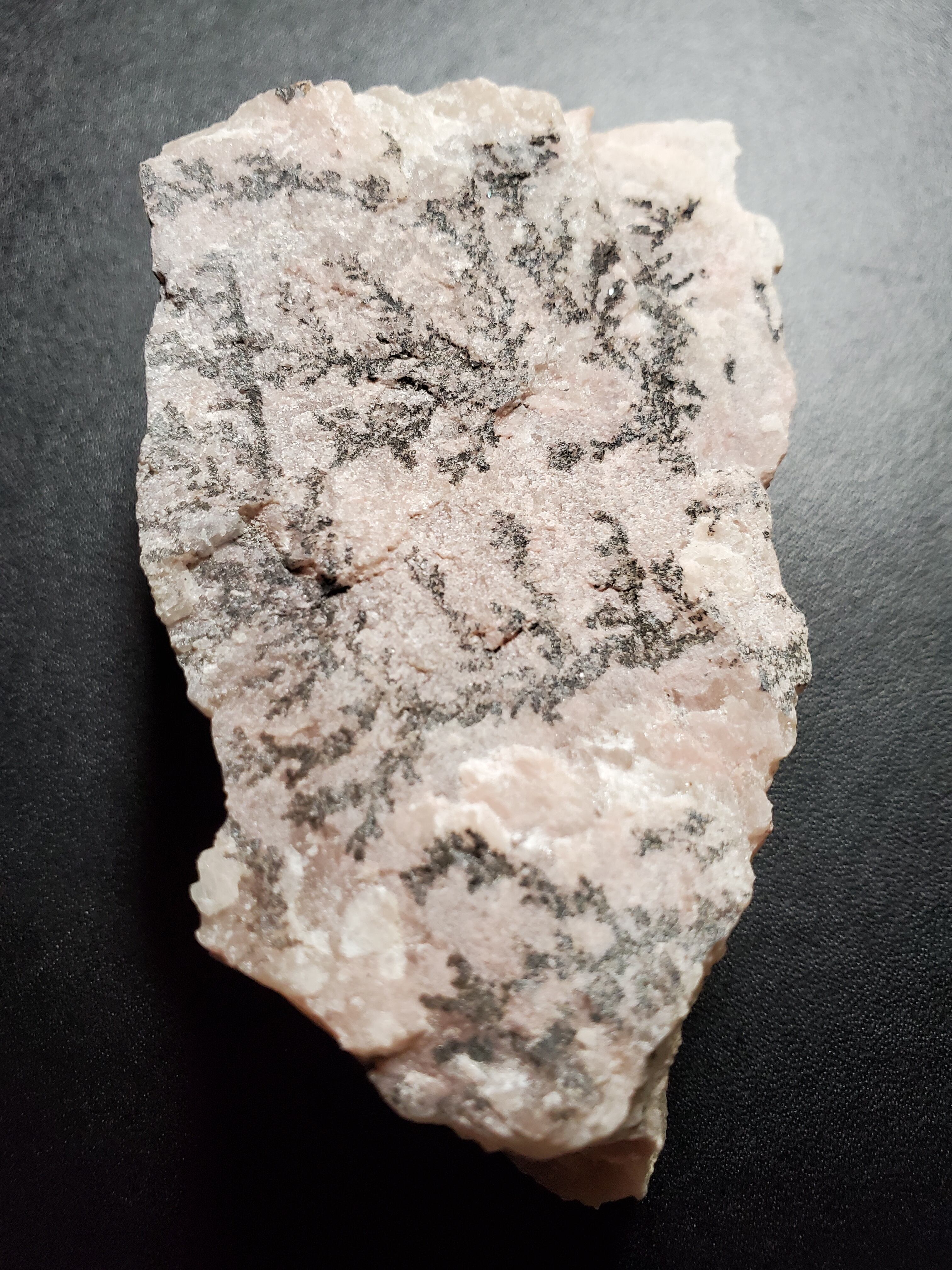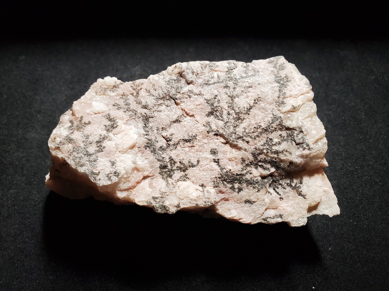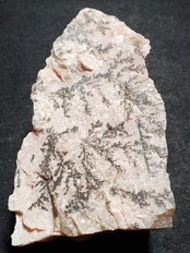岩石の表面に黒く出ている模様は、植物の化石の様ですが、実はこれは岩の隙間に二酸化マンガンが浸見込んだもので、化石でも植物でもありません。シダの化石ではありません。