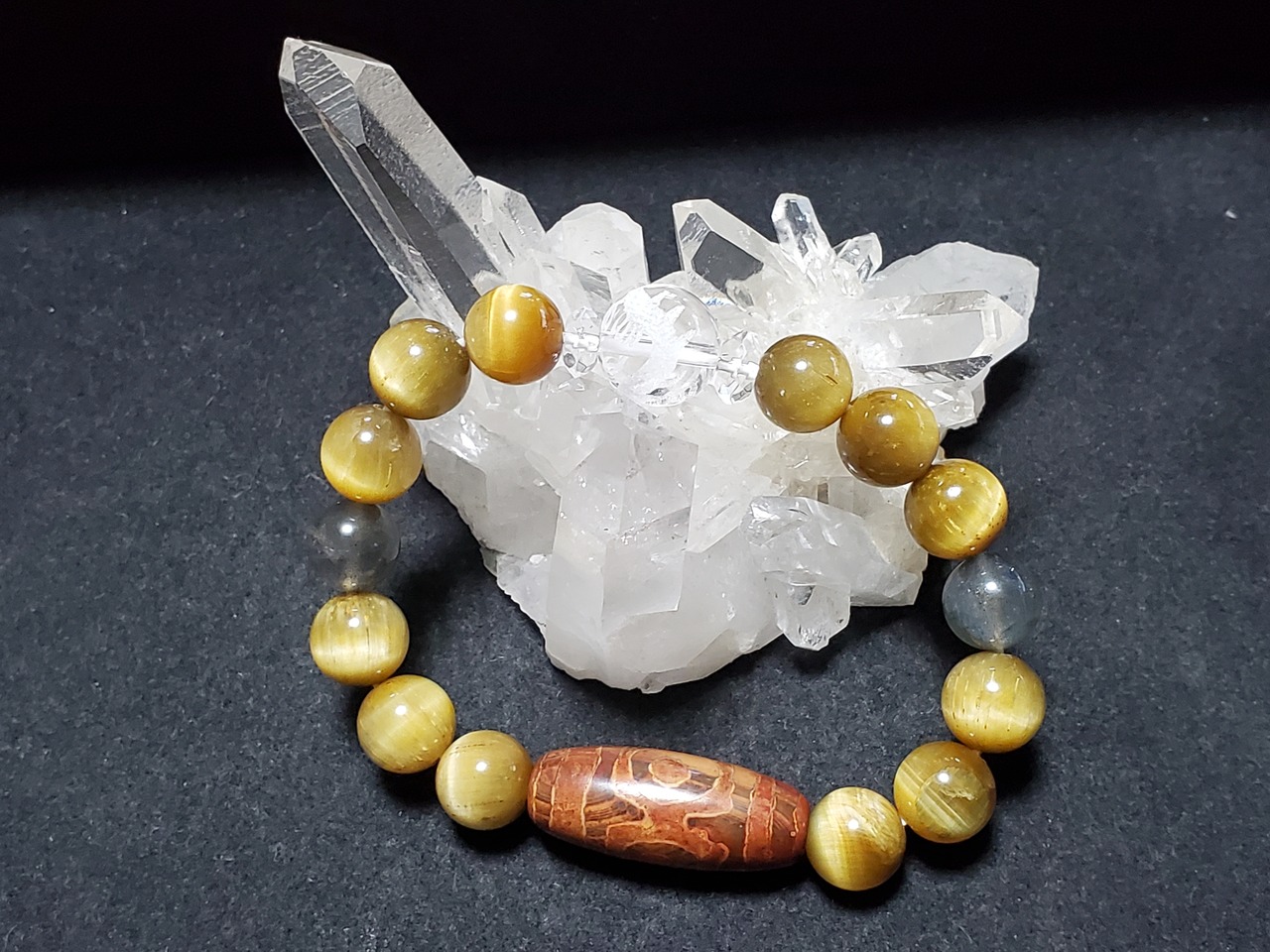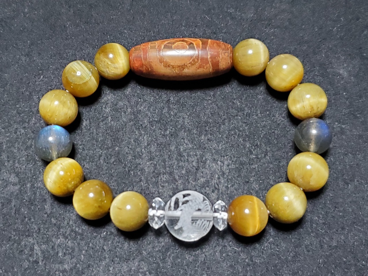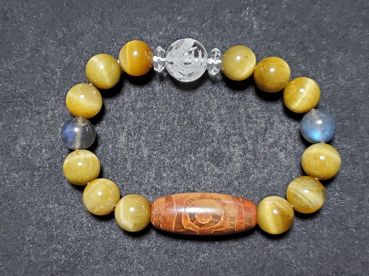 ゴールデンタイガーアイ、ラブラドライト、龍彫水晶