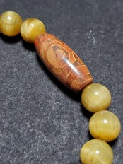 チベット西蔵から各地に伝わったことから、日本では「チベット天珠」または「西蔵天珠」と呼ばれています。メノウ、玉髄、カーネリアンなどを円筒形に加工し、表面に吉祥文様を焼き付けて、紐に通して身につけます。