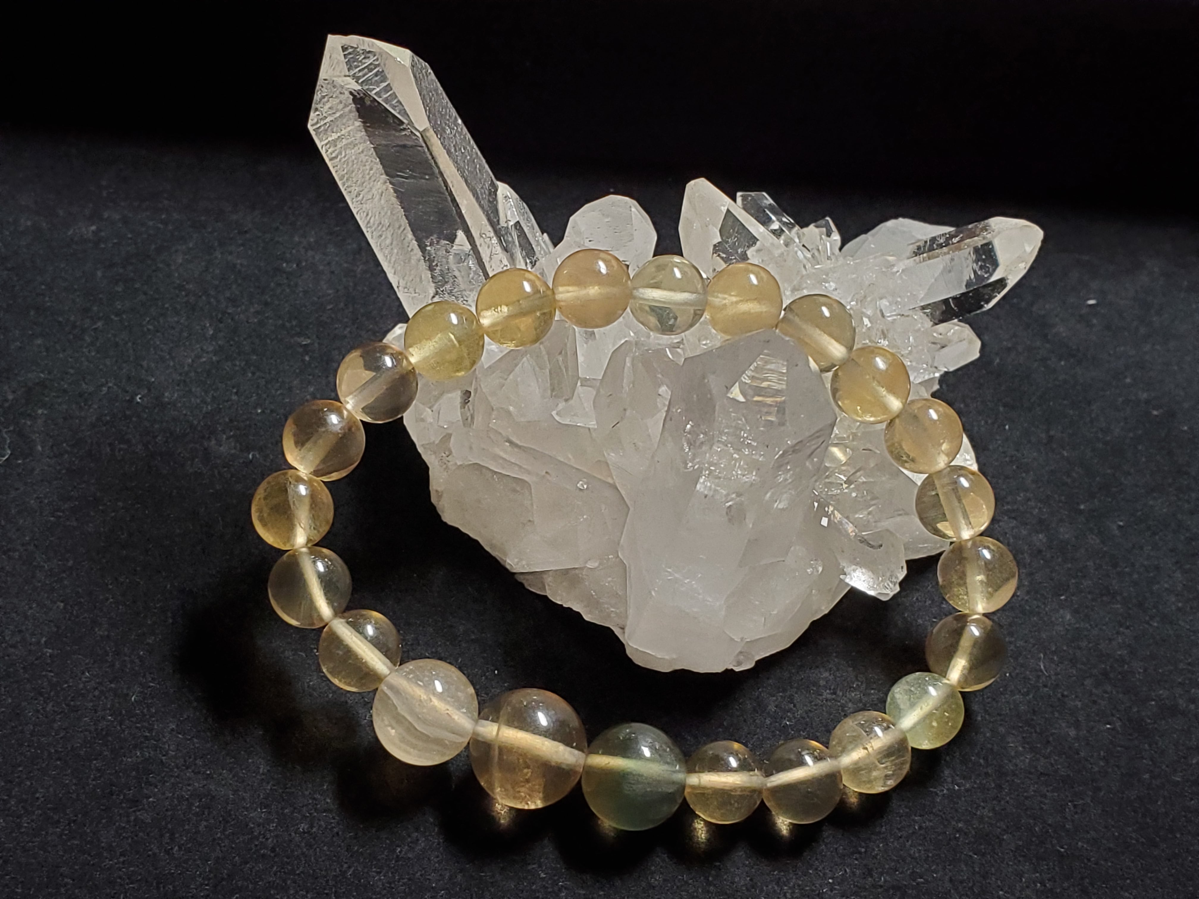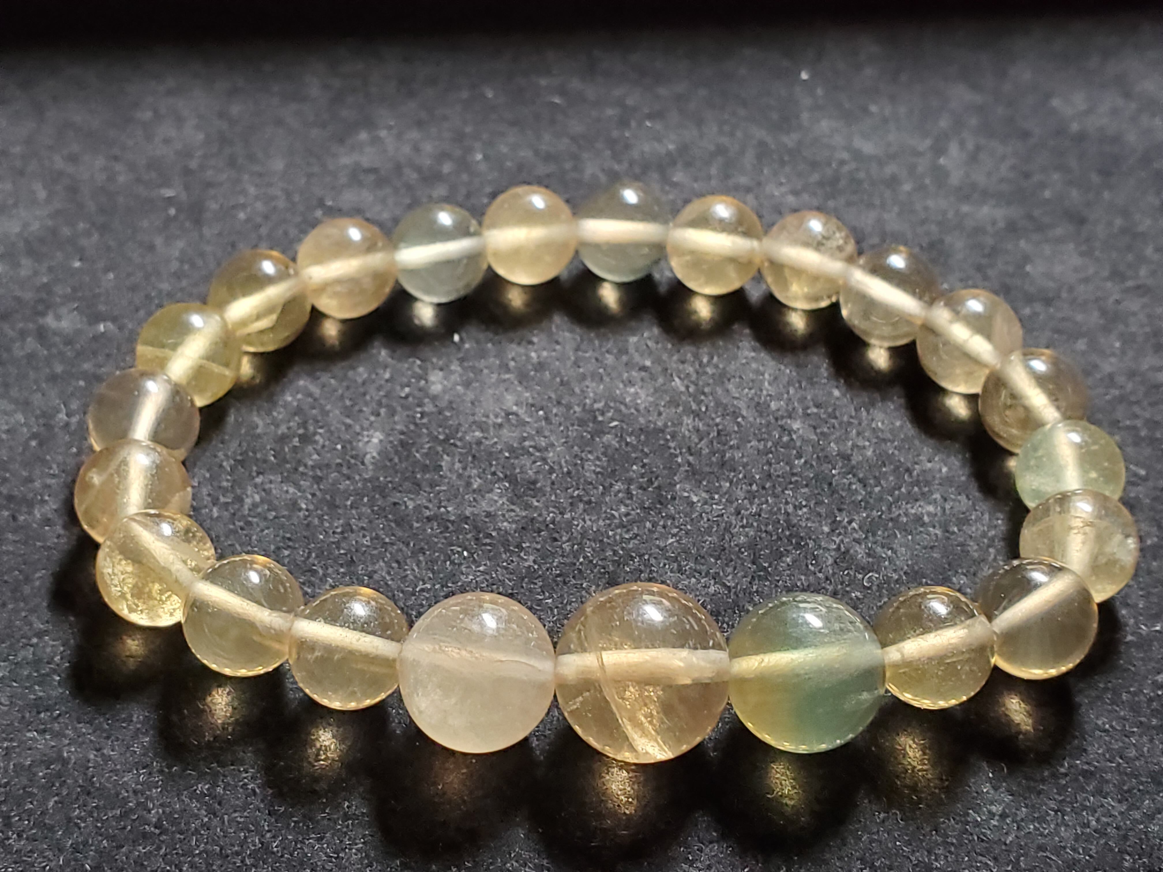 フローライトは色別にエネルギー的特性が多少異なります。あくまでも傾向としてですが、パープル系は明晰性や感受性を高める傾向、グリーン系は癒し的に働き、グラデーションカラーのものは、想像力を高める傾向が強いようです。