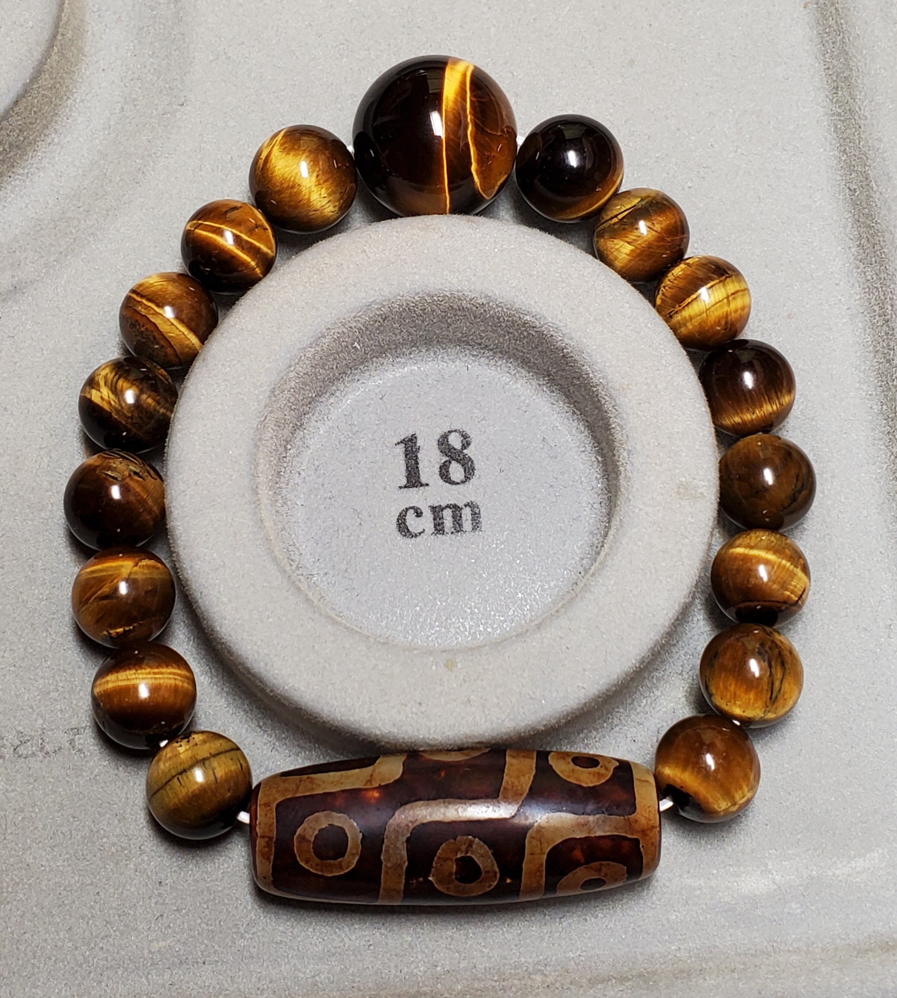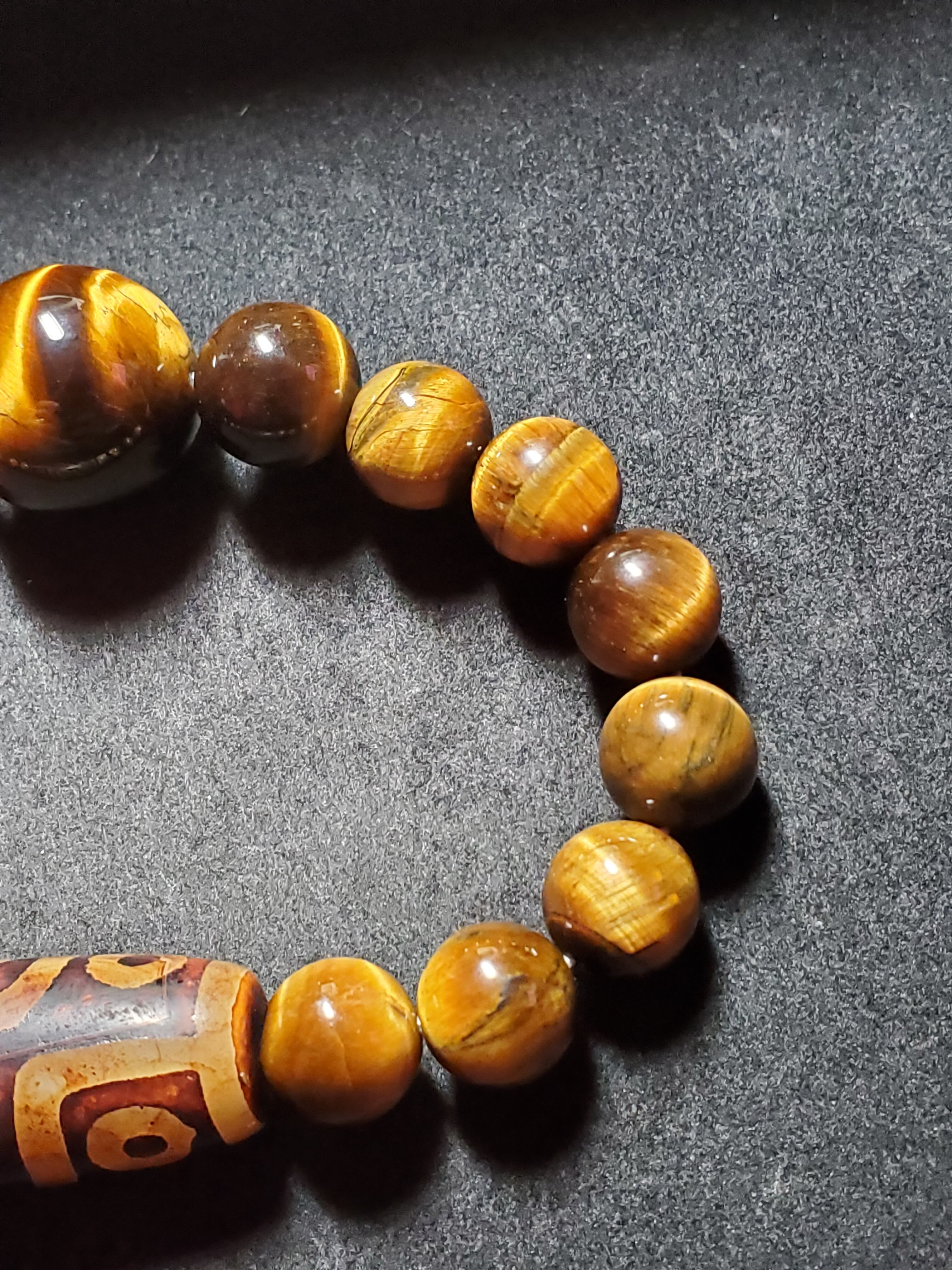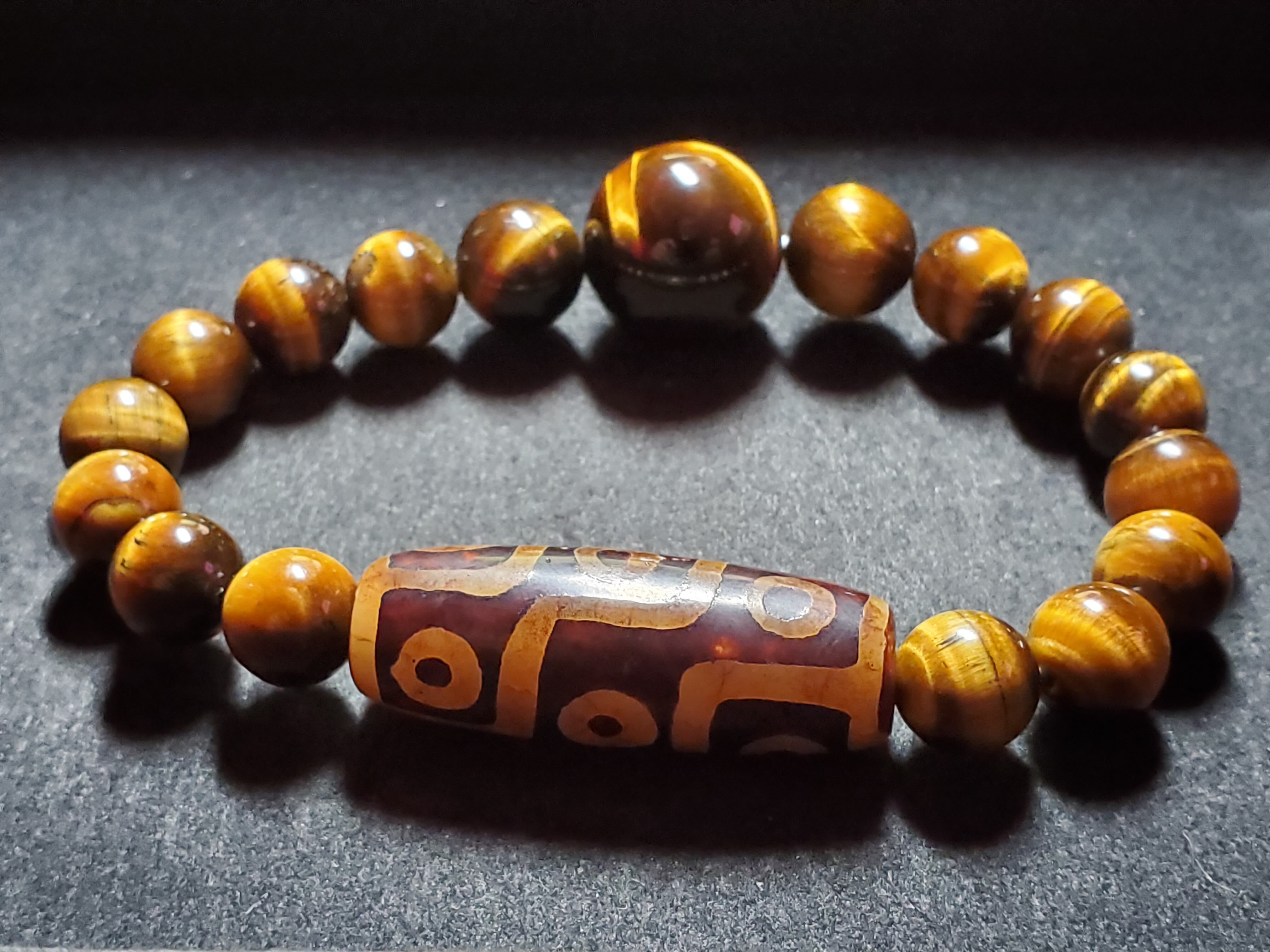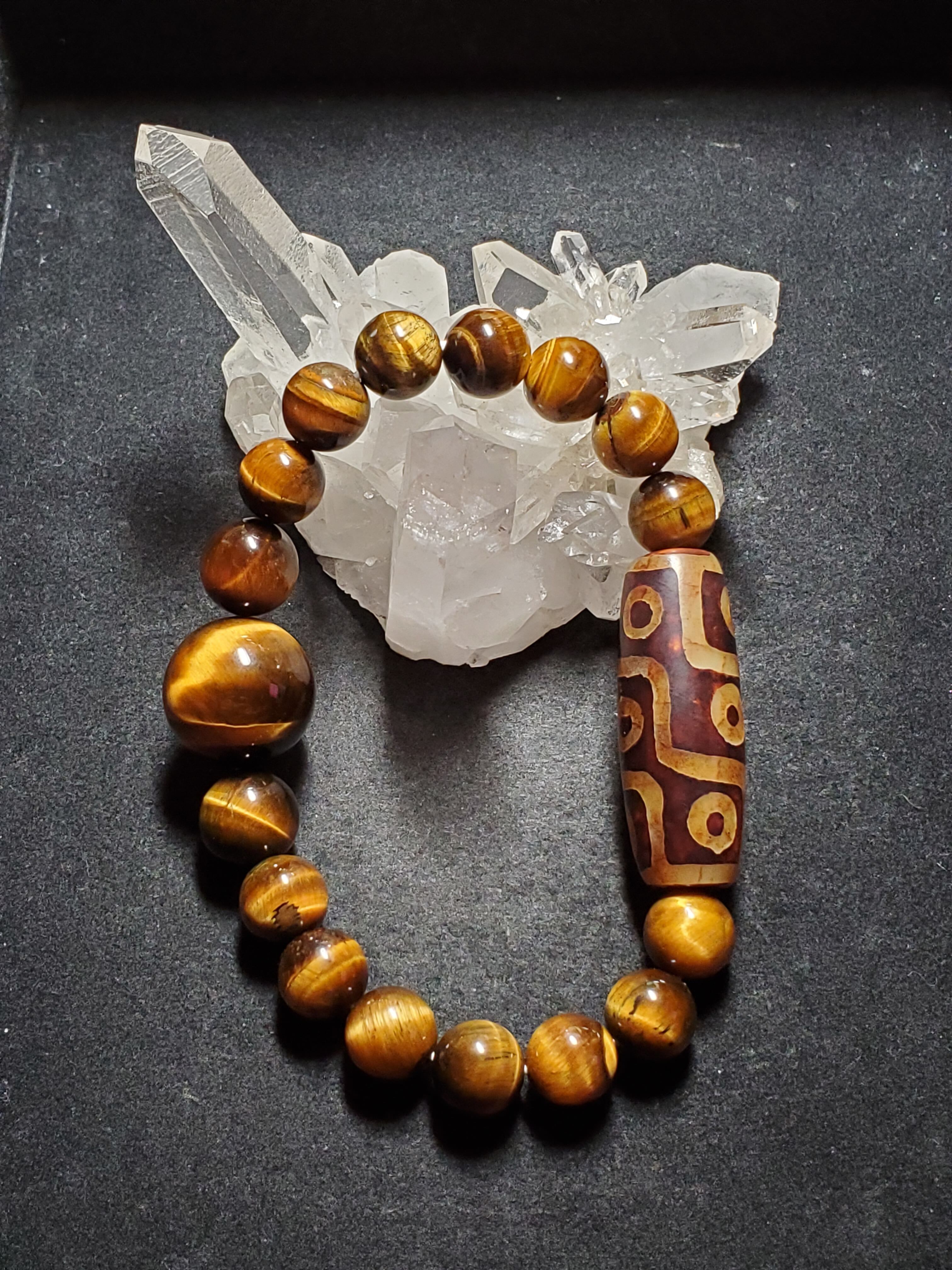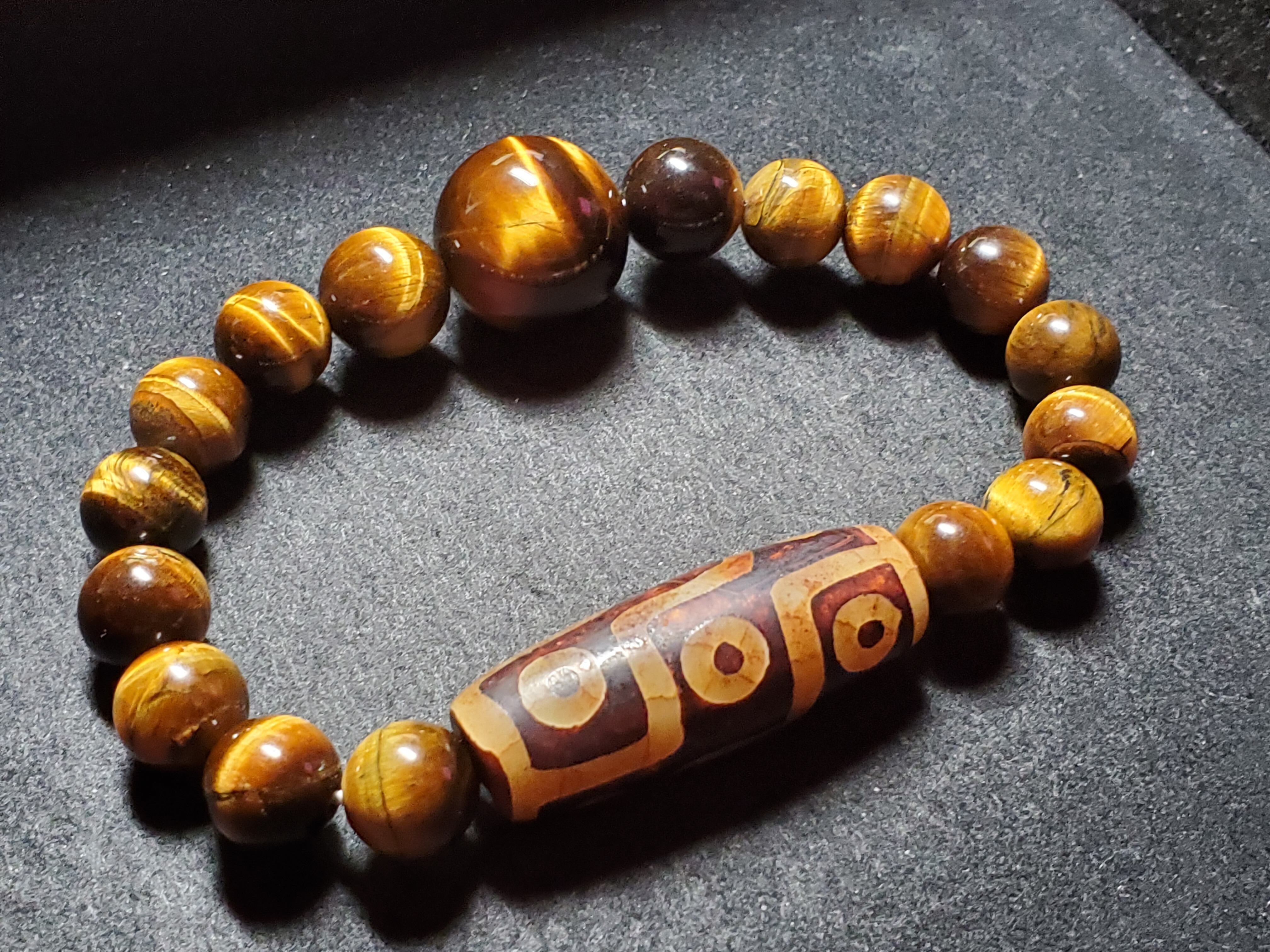 天珠をベースにタイガーアイで組み上げました(10、12、18㎜を使いました。)