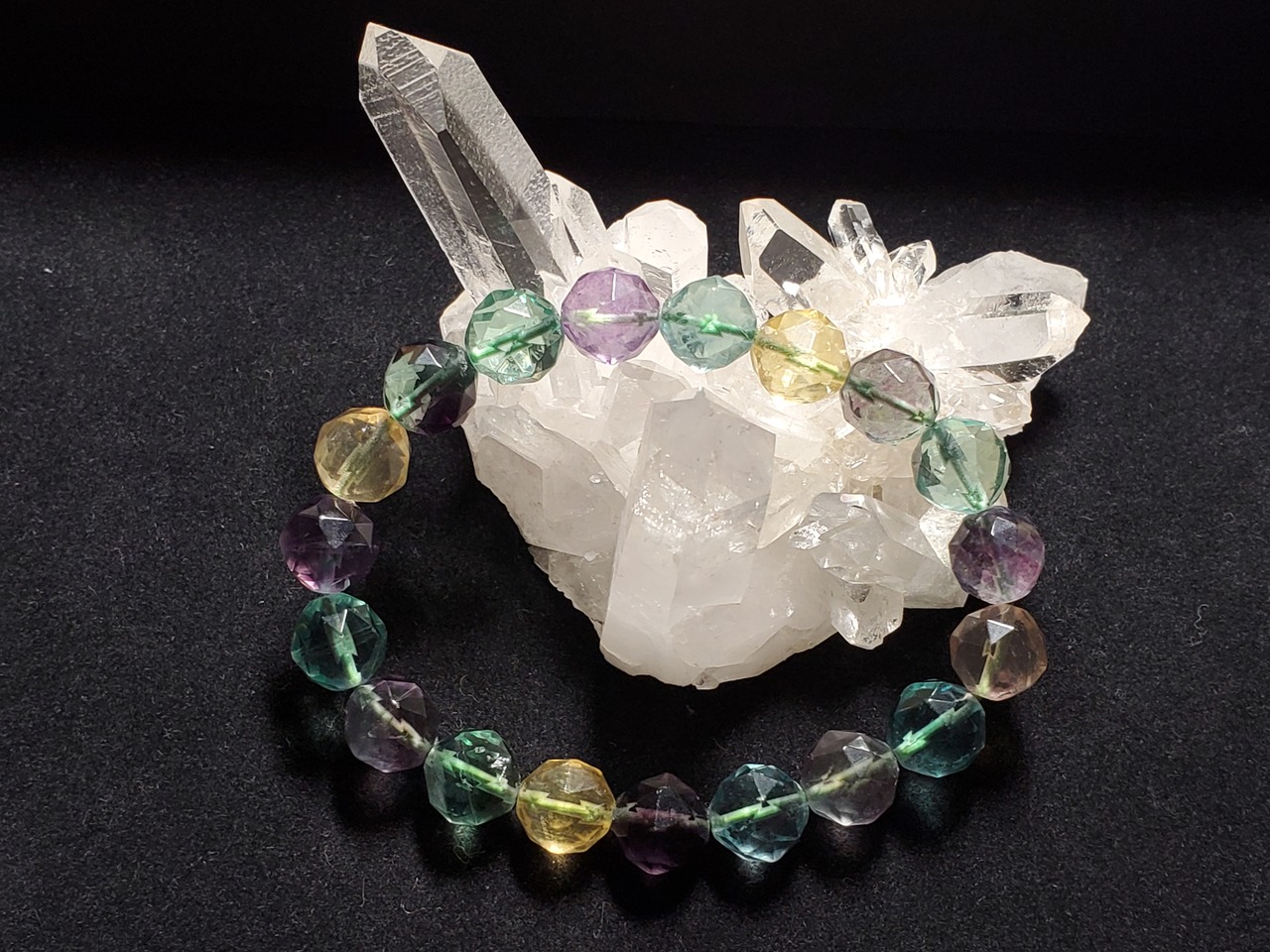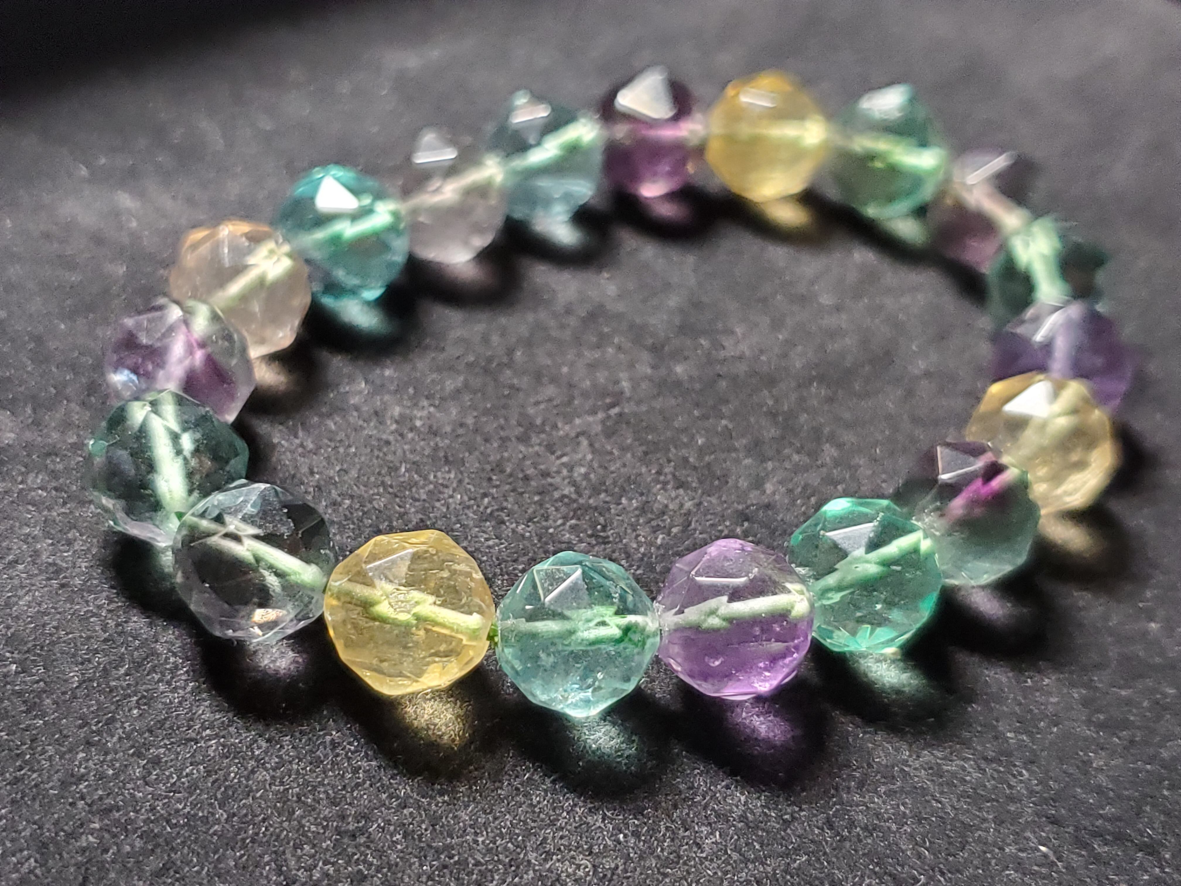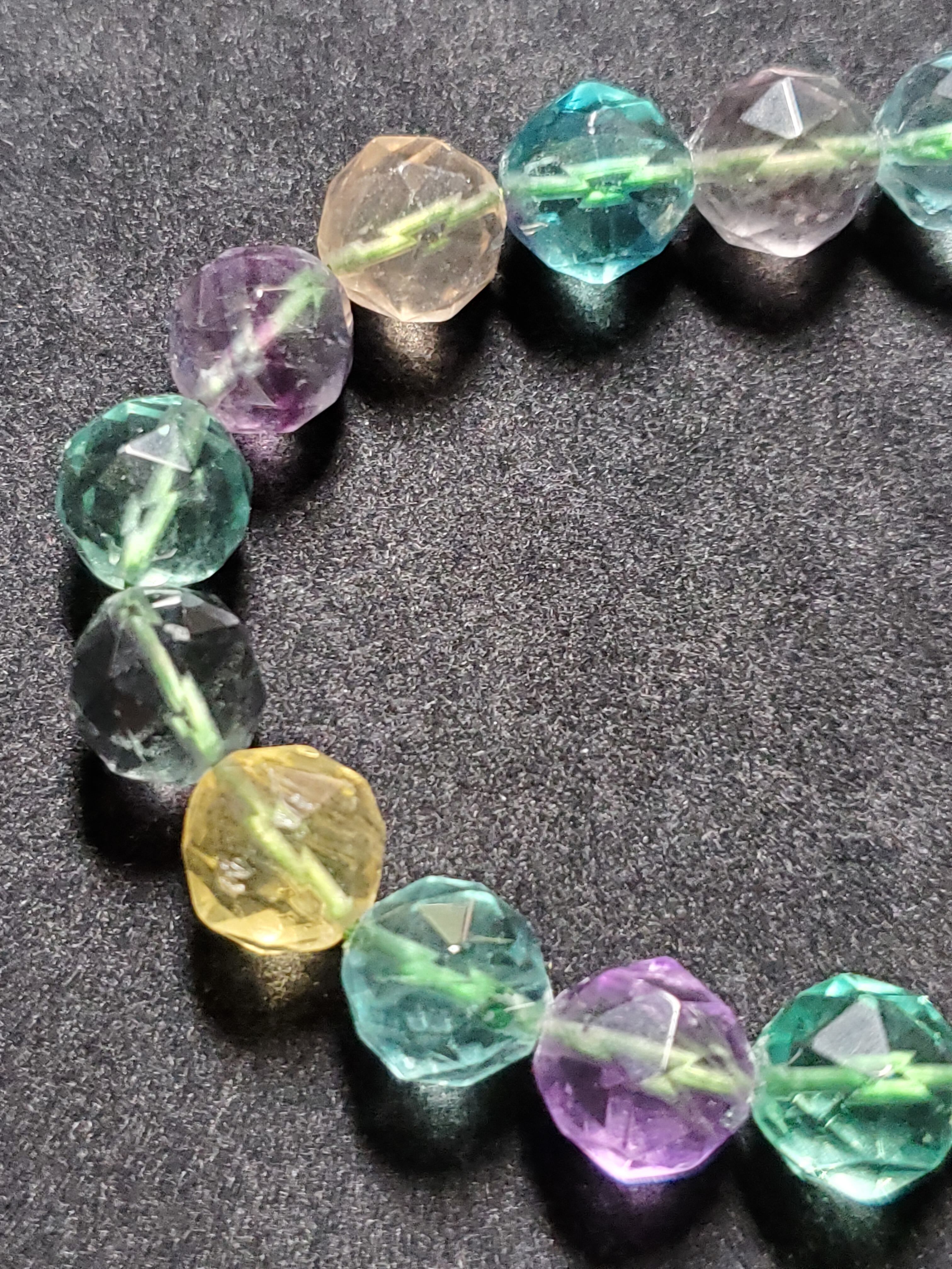 10㎜の64面カットのフローライトのブレスレット(マルチカラー)です。