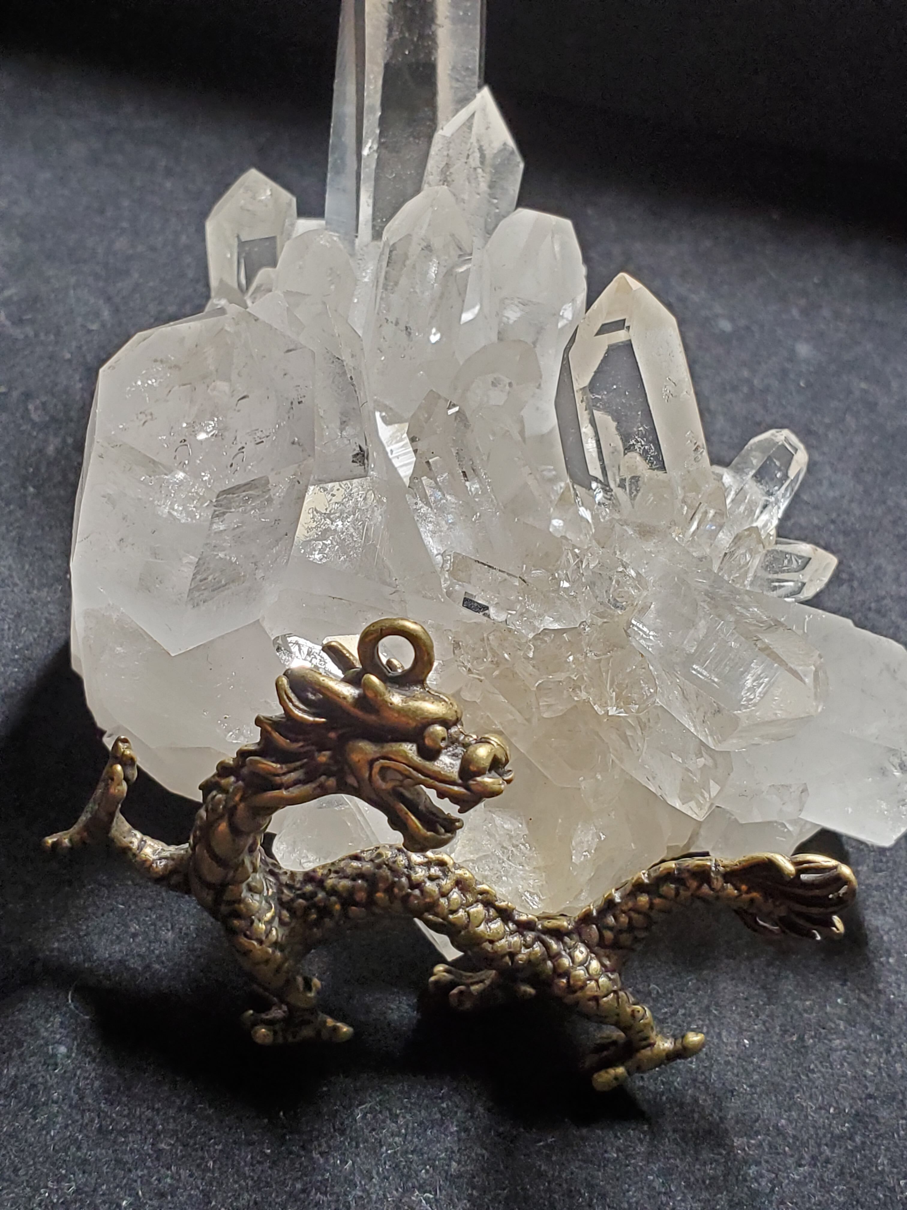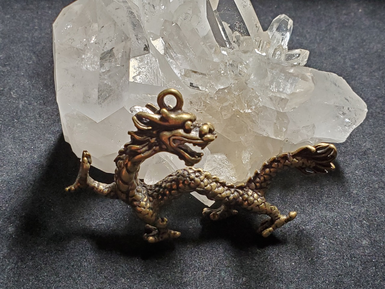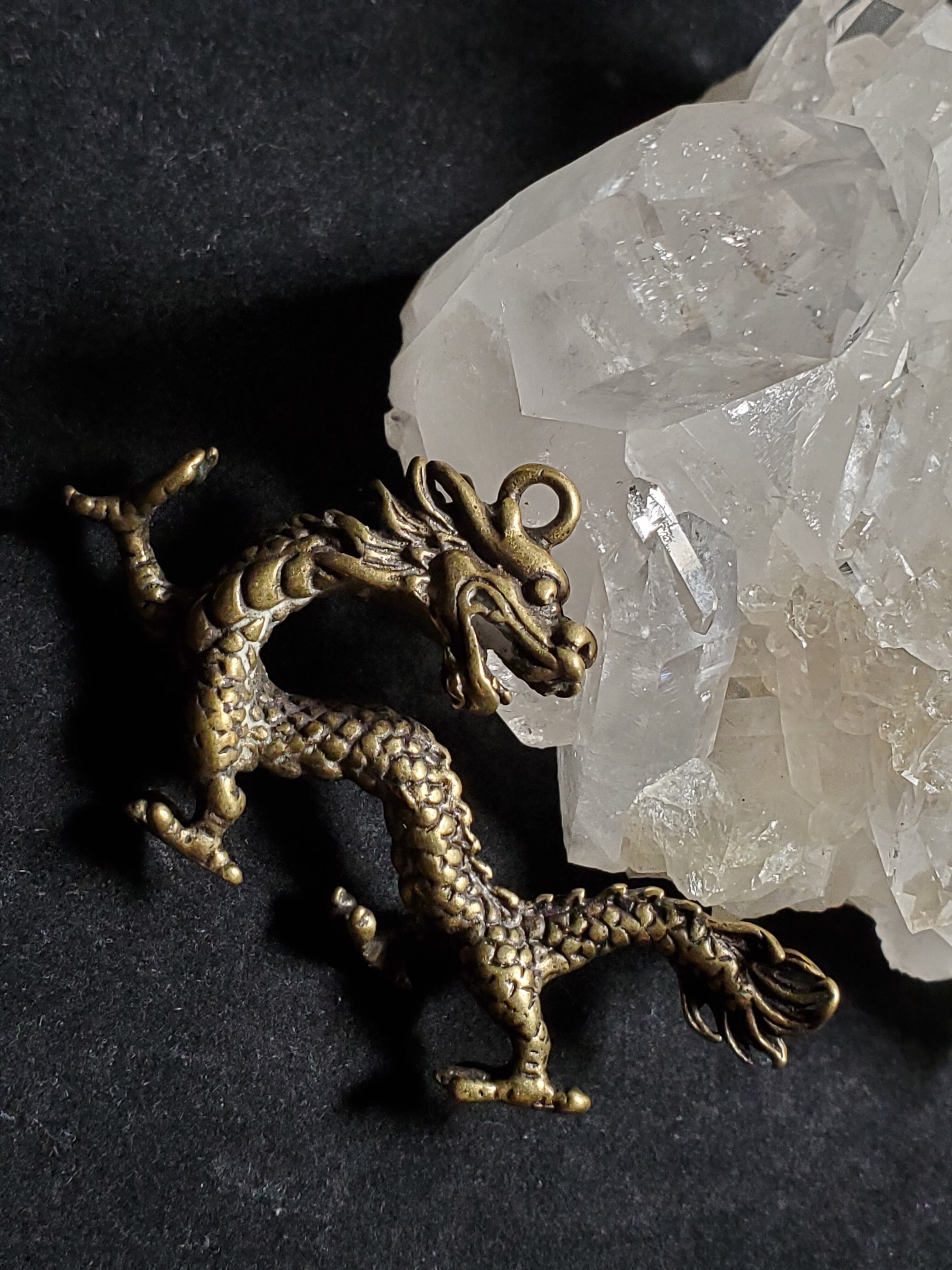 真鍮製の龍です。龍の頭に穴がついているので、キーホルダーにしたり、ペンダントトップとしてお使いになれると思います。