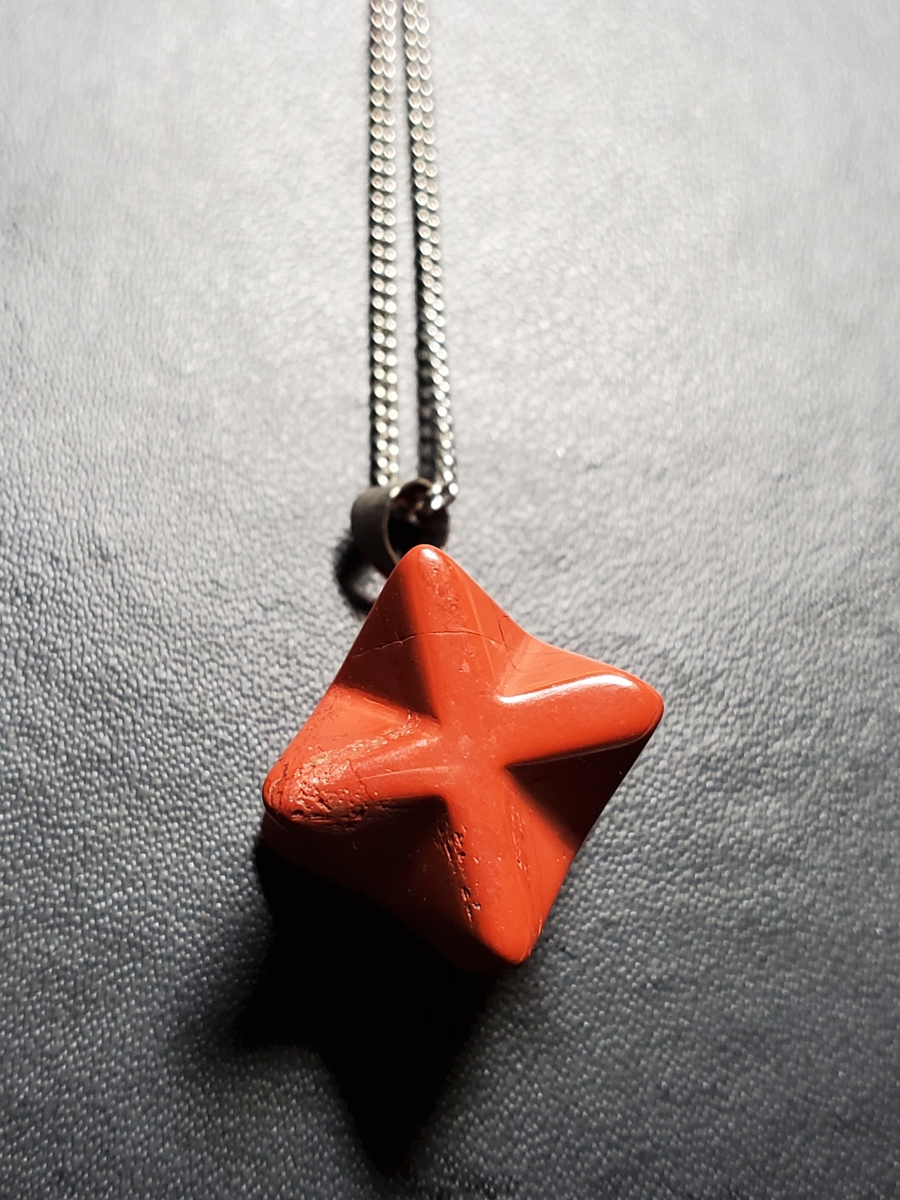 レッドジャスパーのマカバスターペンダントトップです。大きさは、約20㎜です。