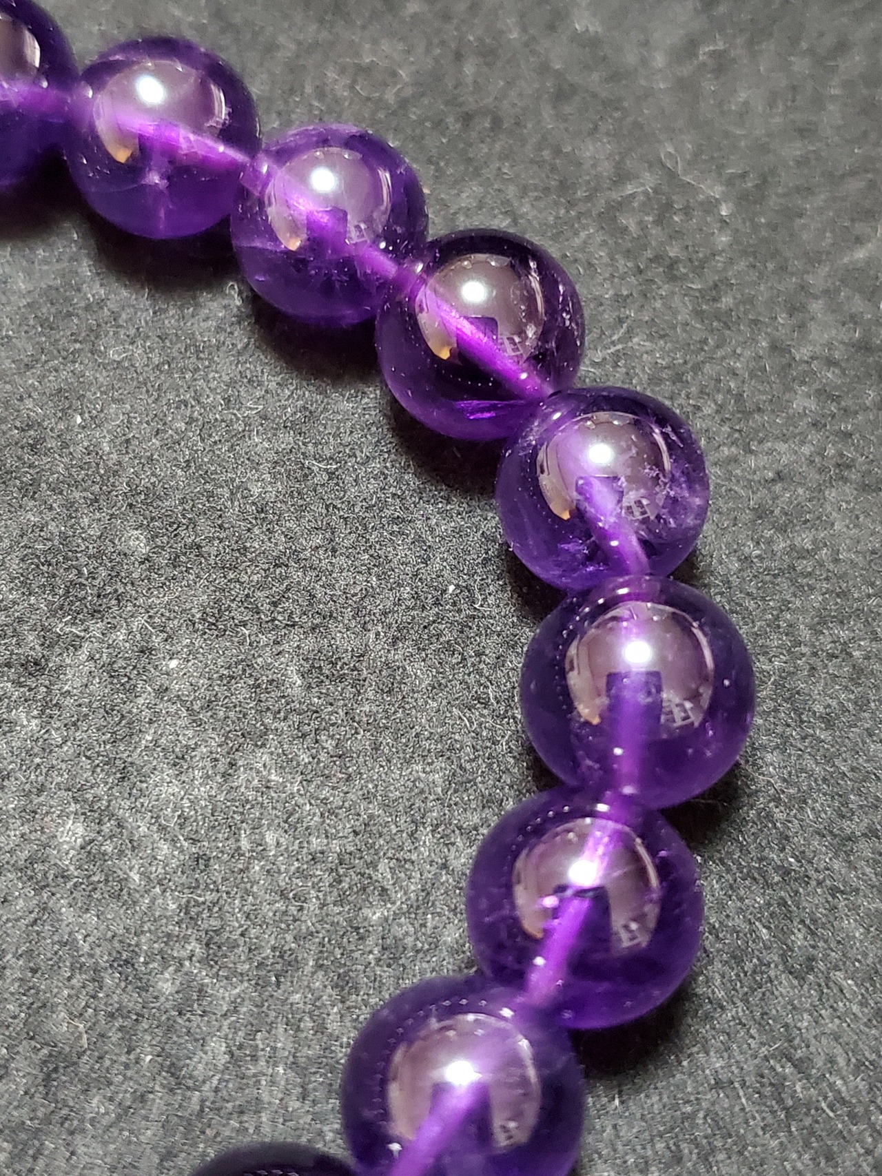 また、宗教的・霊的権威の高い色として、キリスト教の司教や位の高い僧侶、皇族などが好んで身につけたそうです。紫色は「情熱」を象徴する赤と「冷静」を象徴する青を混ぜる事によって作られます。アメジストは心に平穏をもたらし、安らぎと癒しをもたらしてくれると言われています。
