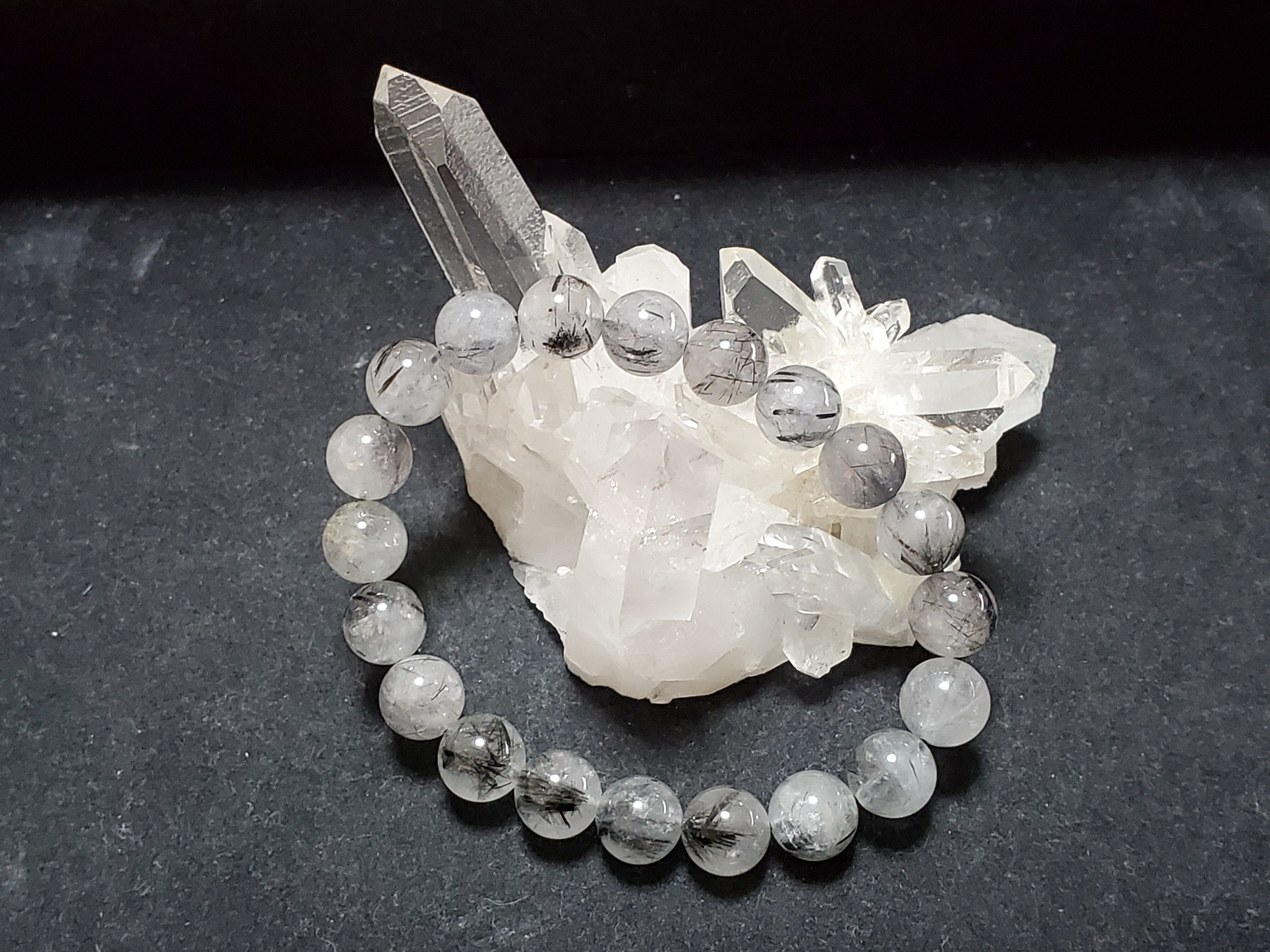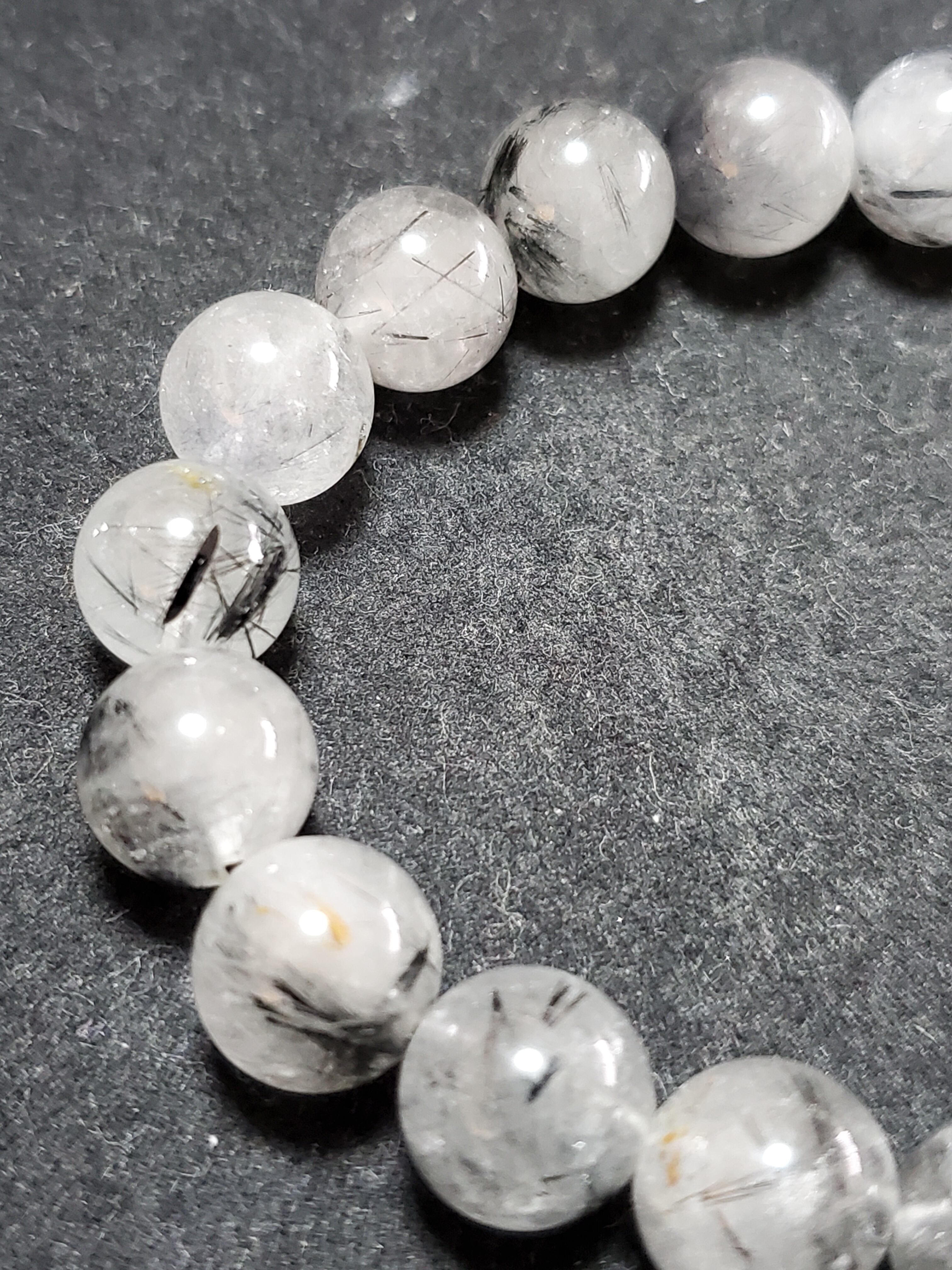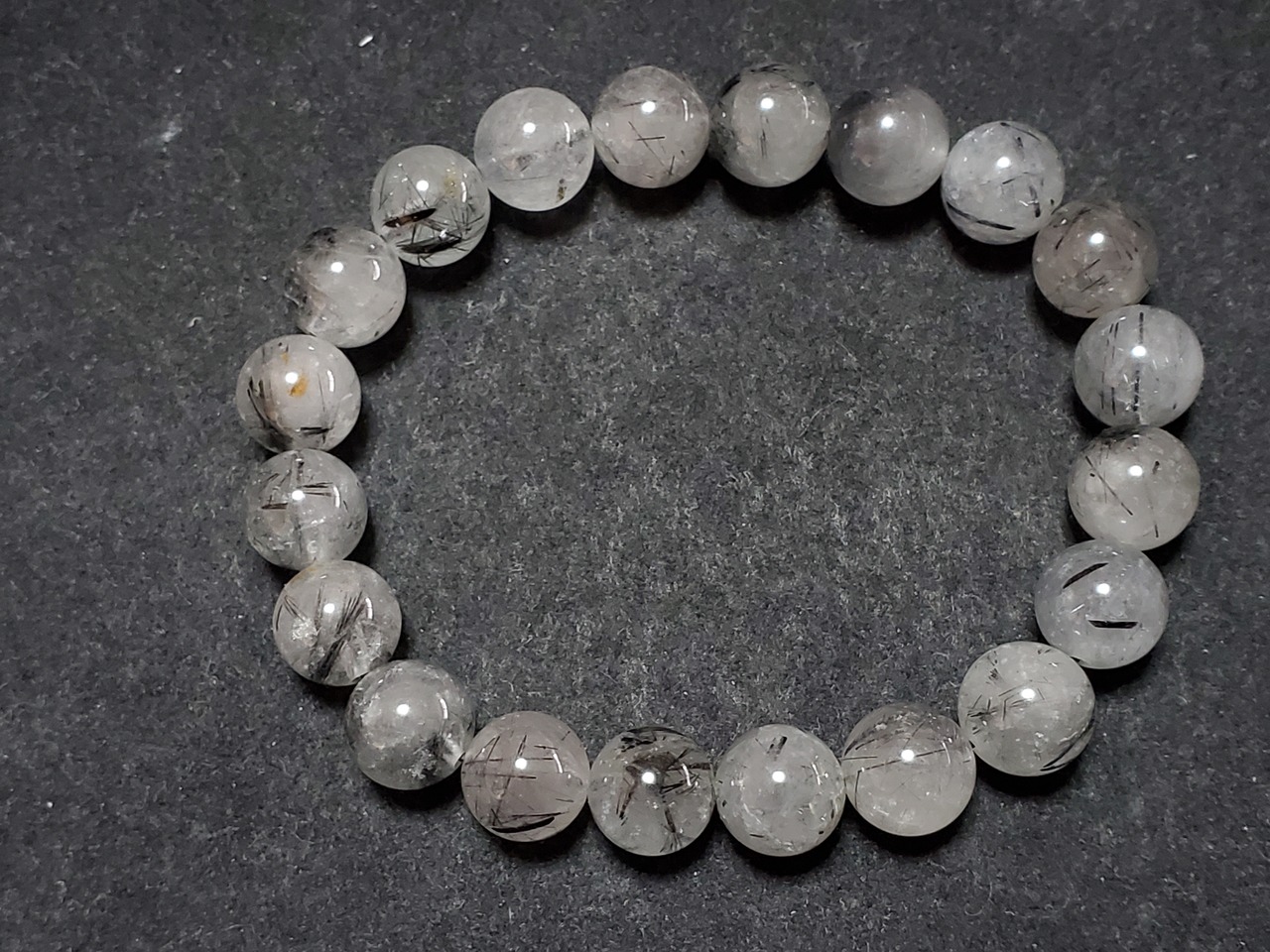 ブラックルチルクォーツの10㎜のブレスレットです。内径は約16cm弱です。