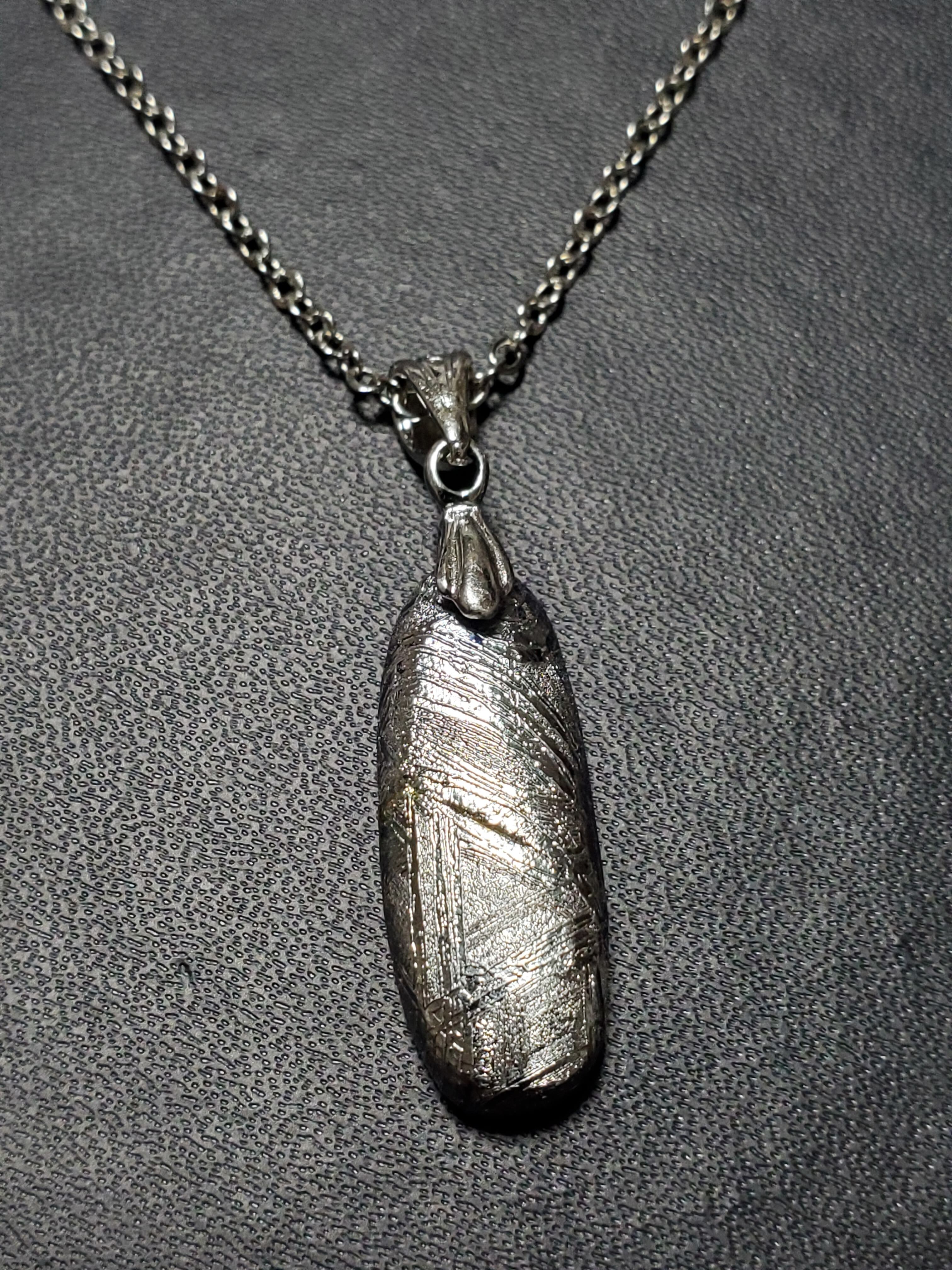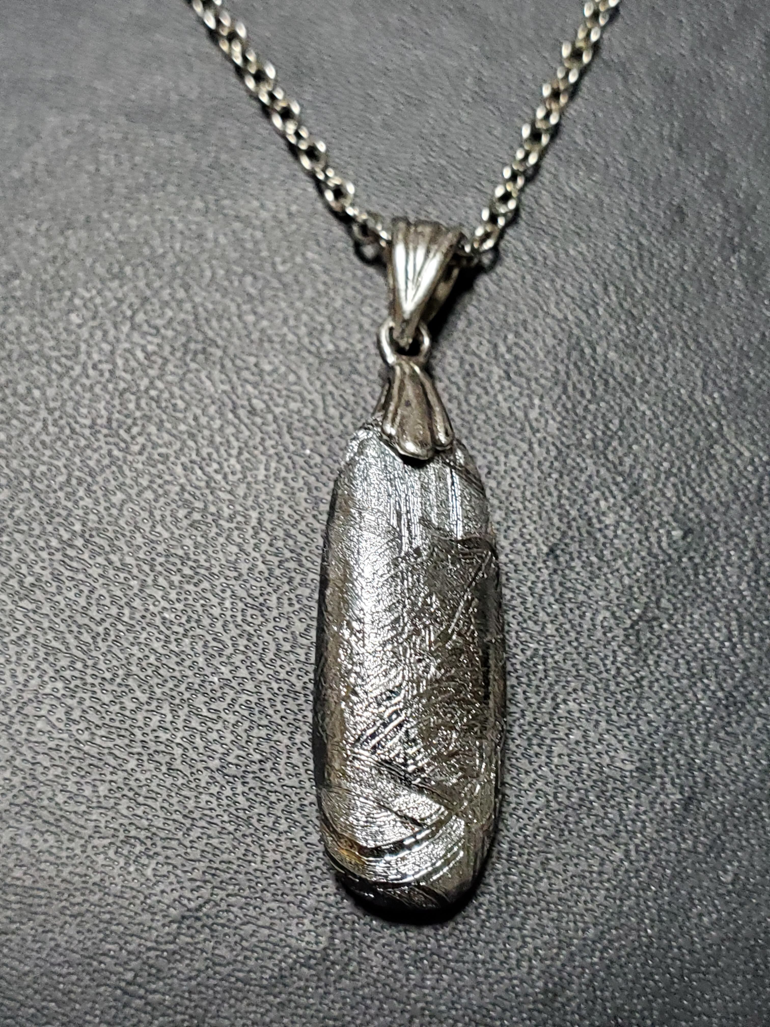 ギベオンは、鉄質隕石の一種で、重量感のあるシルバーに、独特の幾何学模様が刻まれていることが特徴で、アフリカのナミビアで産出されたものを言います。この模様はウィドマンシュテッテン構造と呼ばれ、鉄とニッケルに起因しているものとされています。4億5千万年前に落下した隕石とも言われ、宇宙の神秘を感じさせる魅力のある石です。