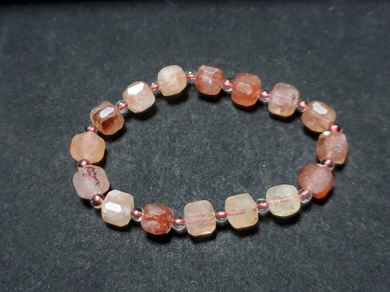 レッドファントムクォーツのスクエアカットのブレスレットです。