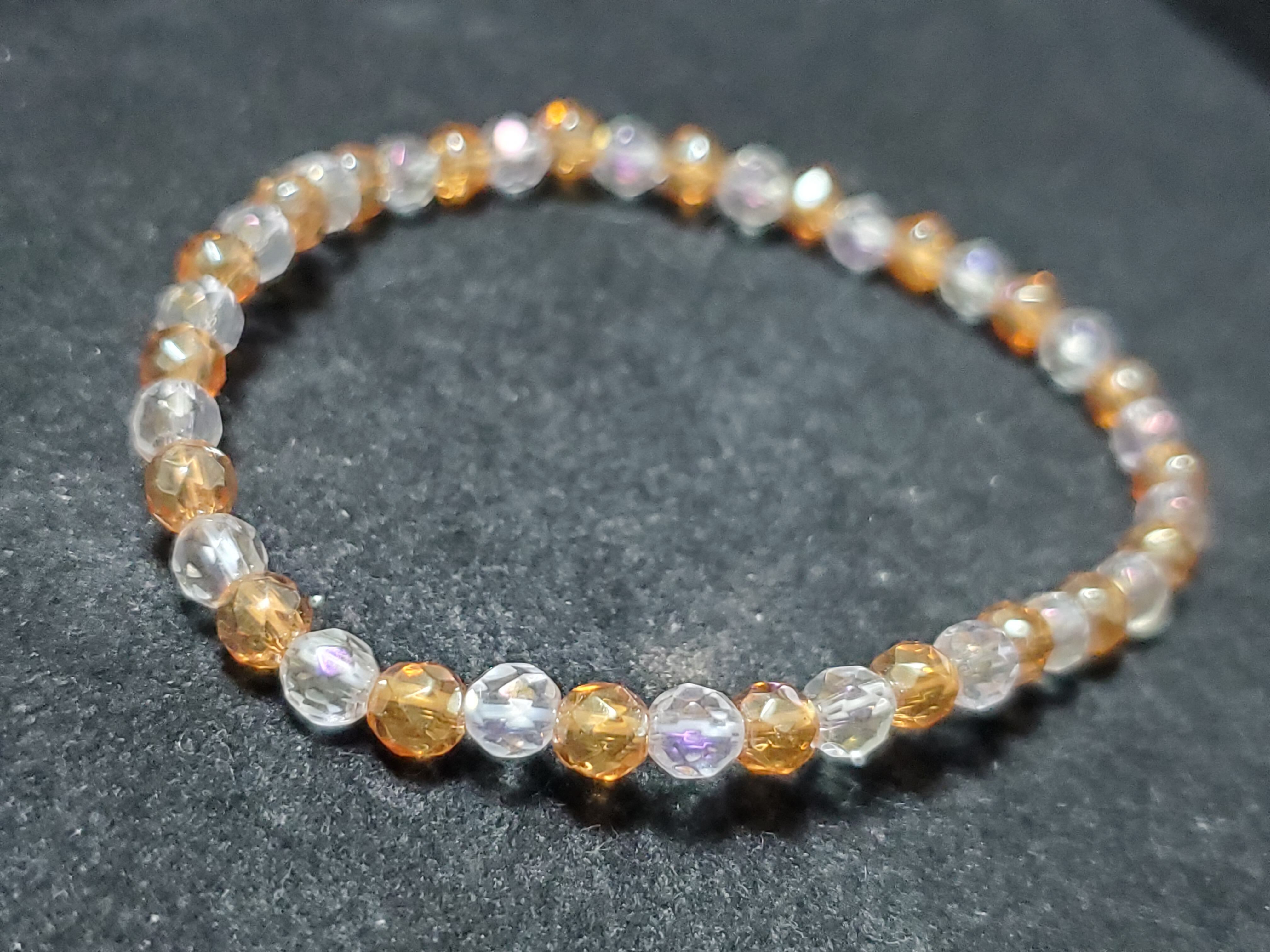 4㎜のレインボーオーラ、シャンパンオーラを使ったデザインブレスレットです。