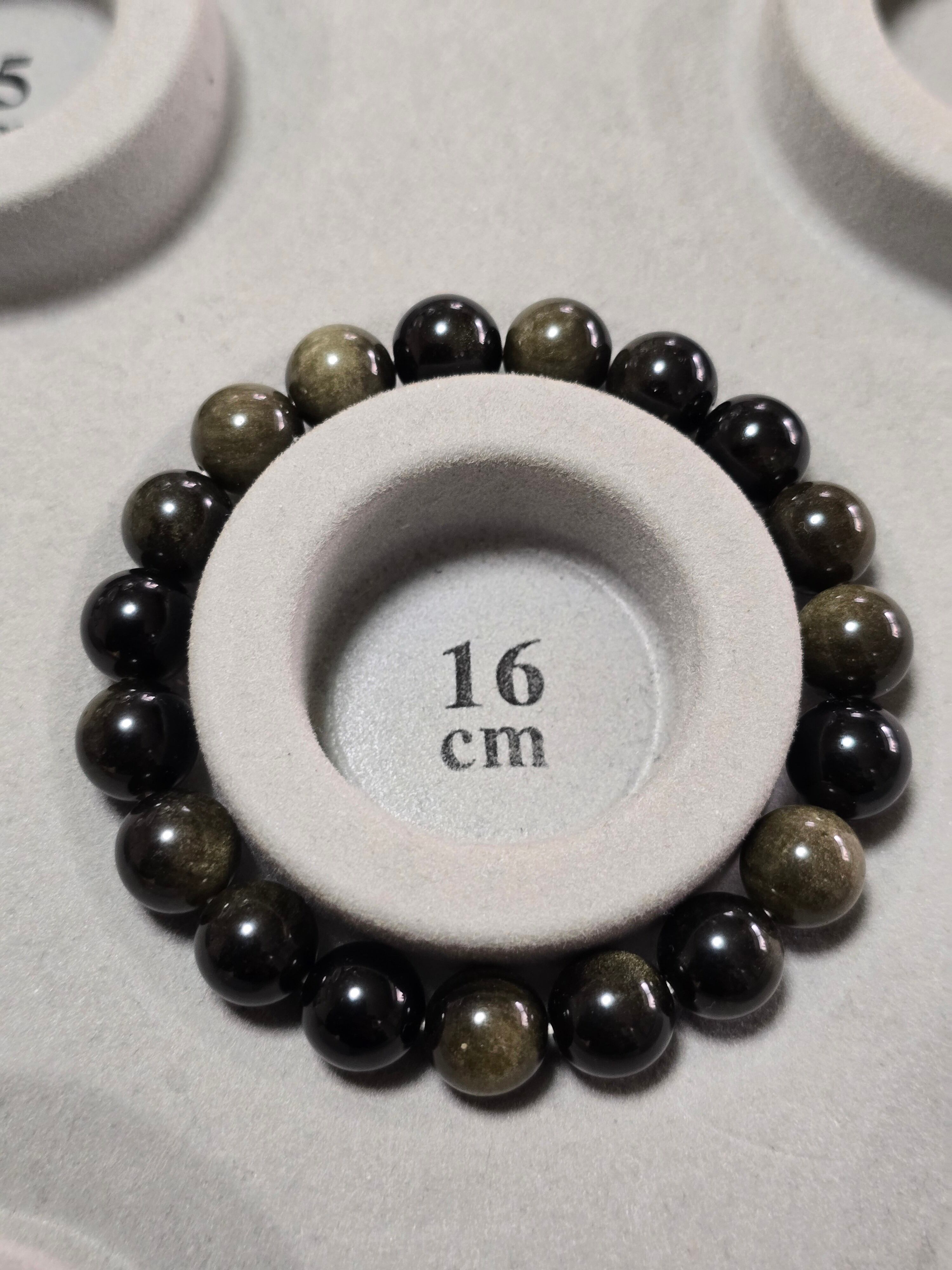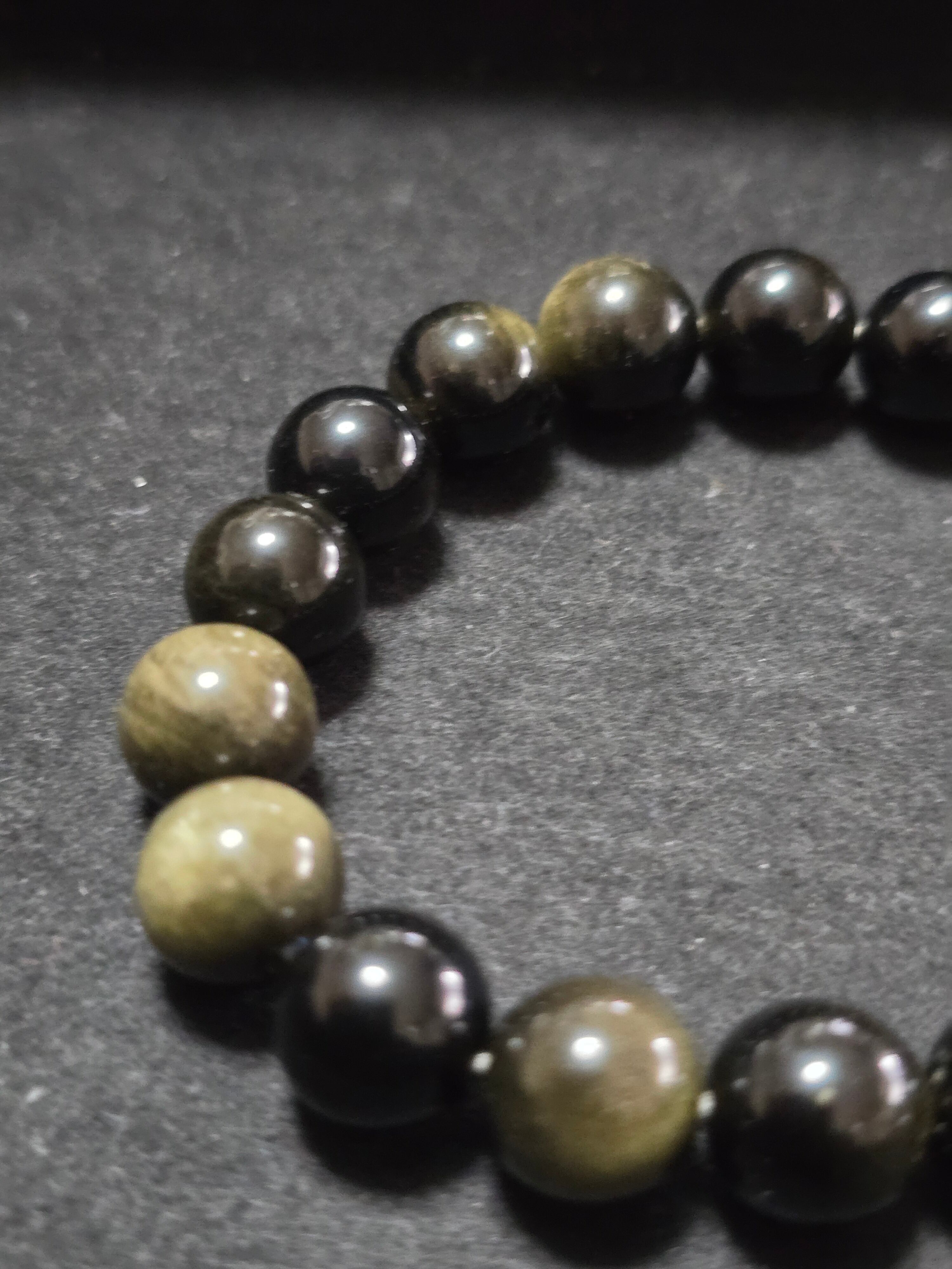 10㎜のゴールデンオプシディアンのブレスレットです。内径は約16㎝です。