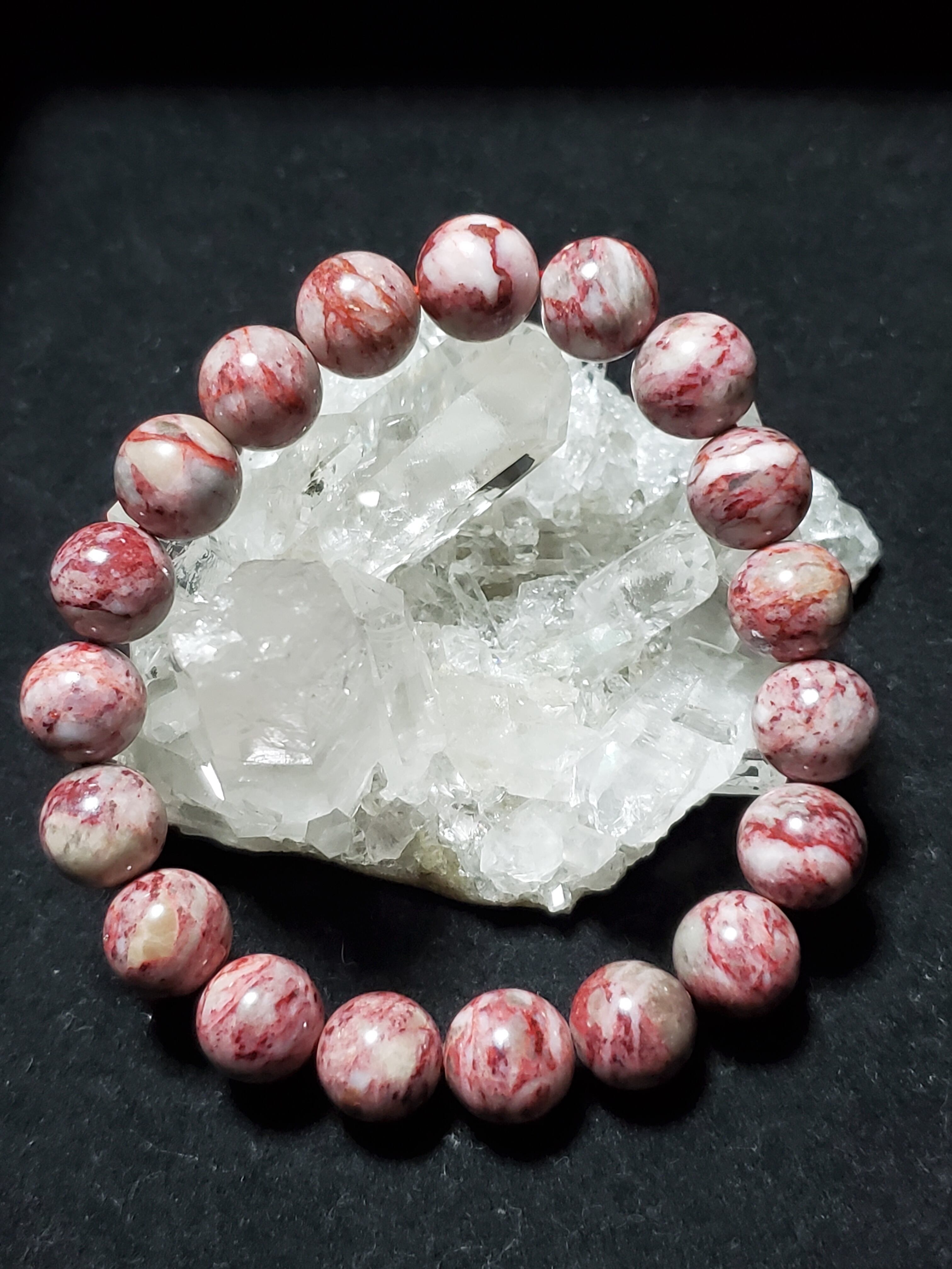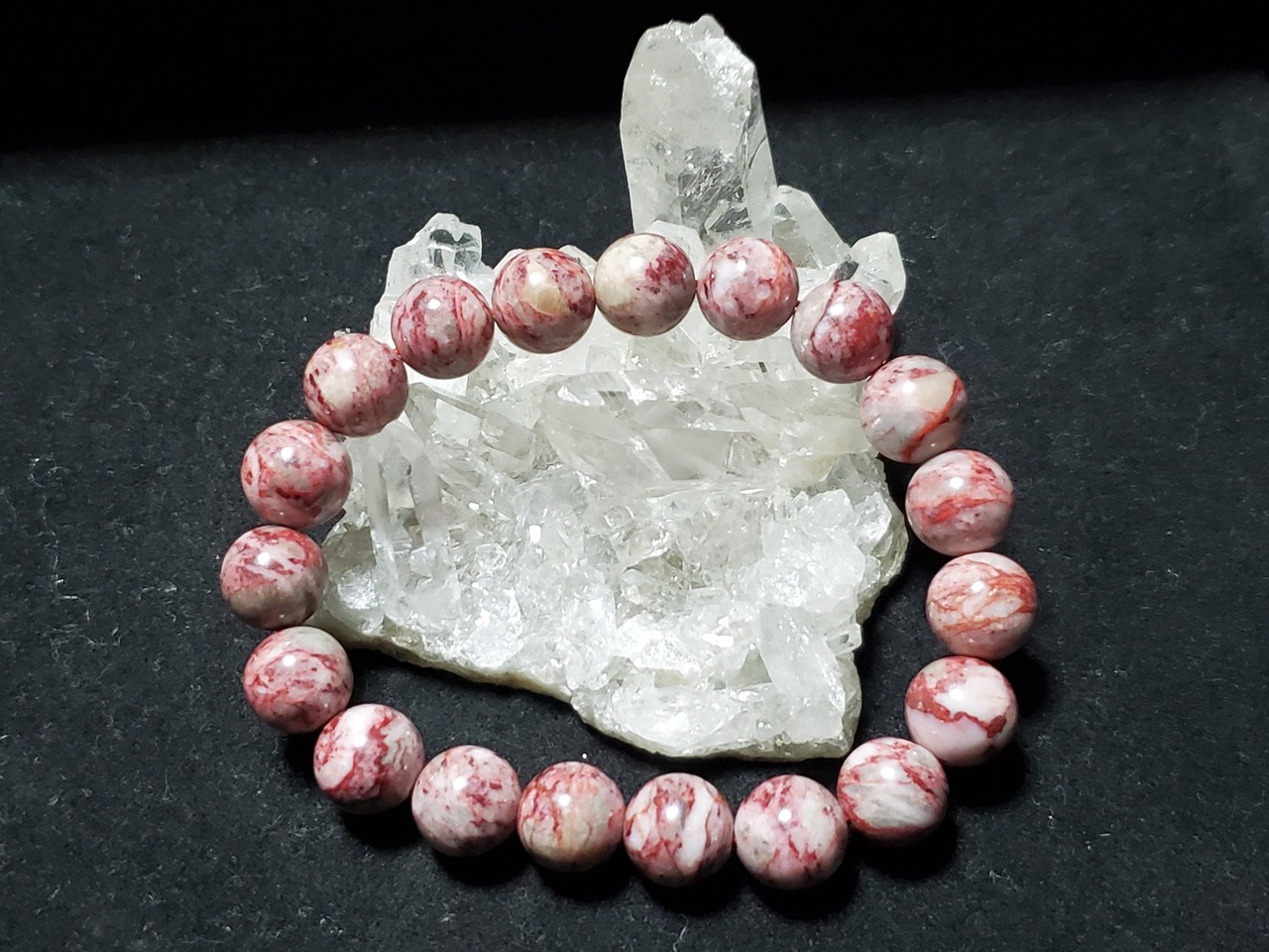 大昔には竜の血が染み込んだ不老不死の力を宿す石と考えられてきました。そのためシナバークォーツにみられる独特の斑点模様は竜血(りゅうけつ/ドラゴンブラッド)とも呼ばれます。