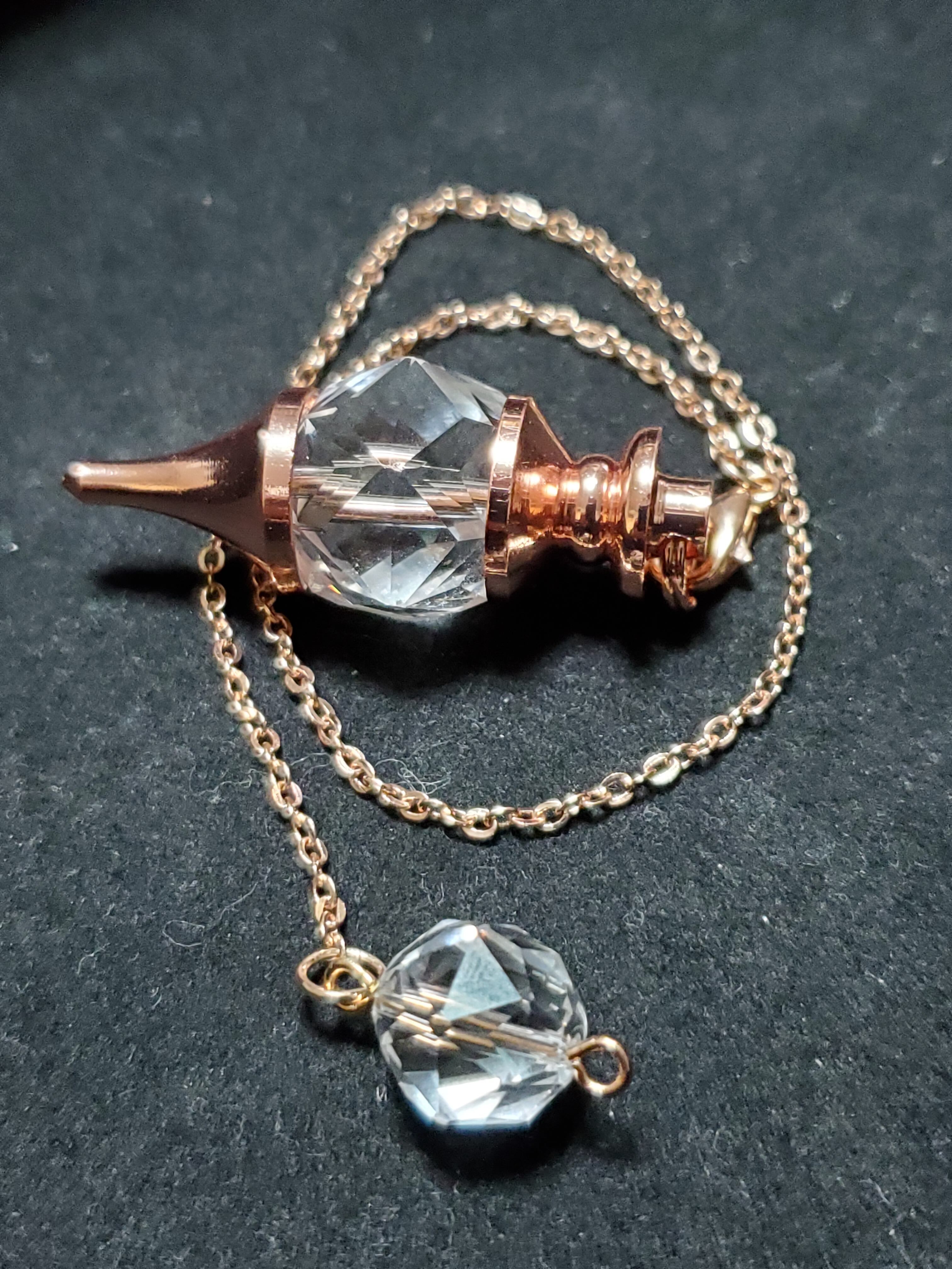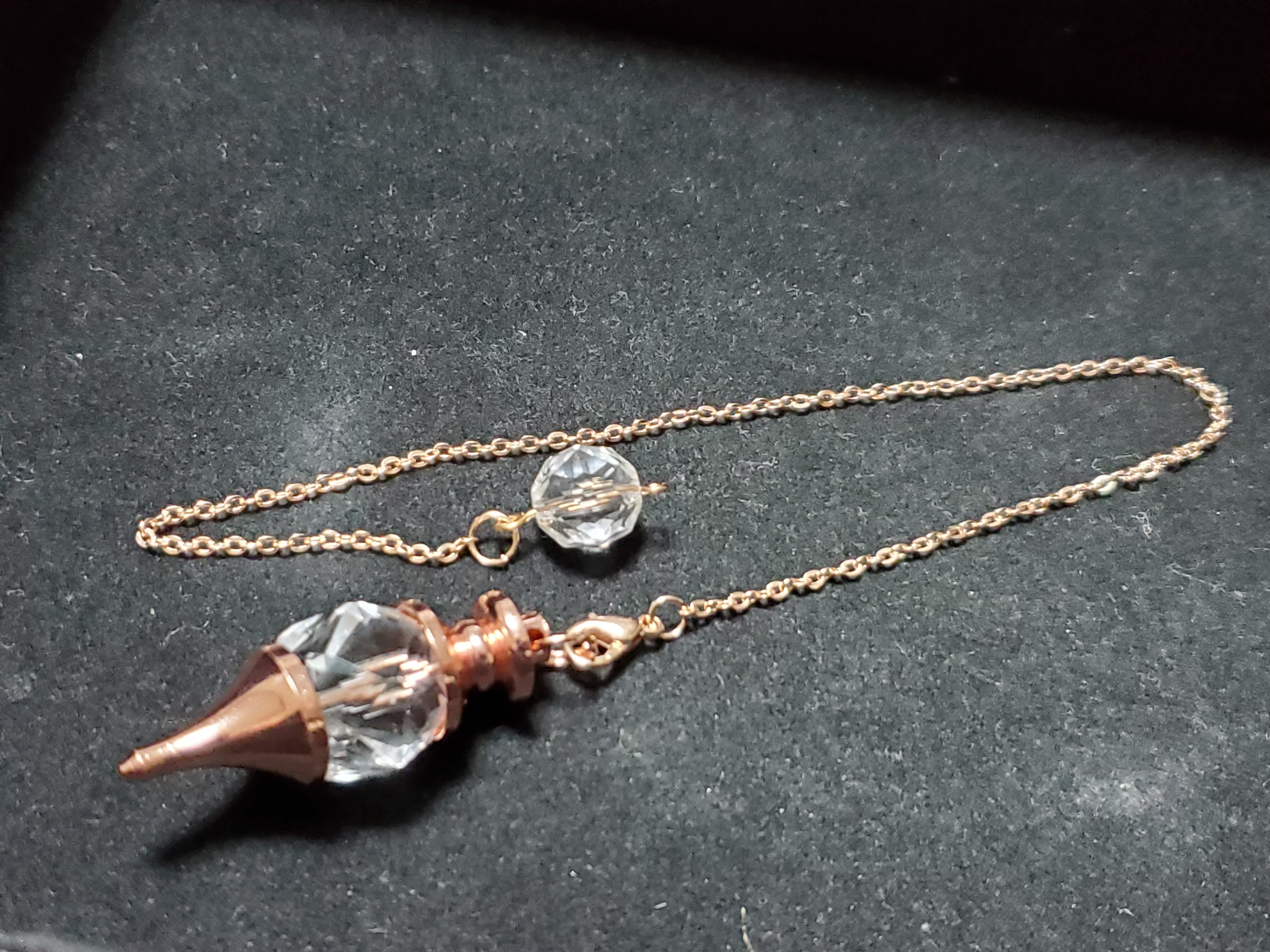 ペンデュラムとは、「振り子」のこと。かつては水脈や鉱脈を探り当てるために使われていたものです。ダウジングと言うと分かりやすいかもしれません。