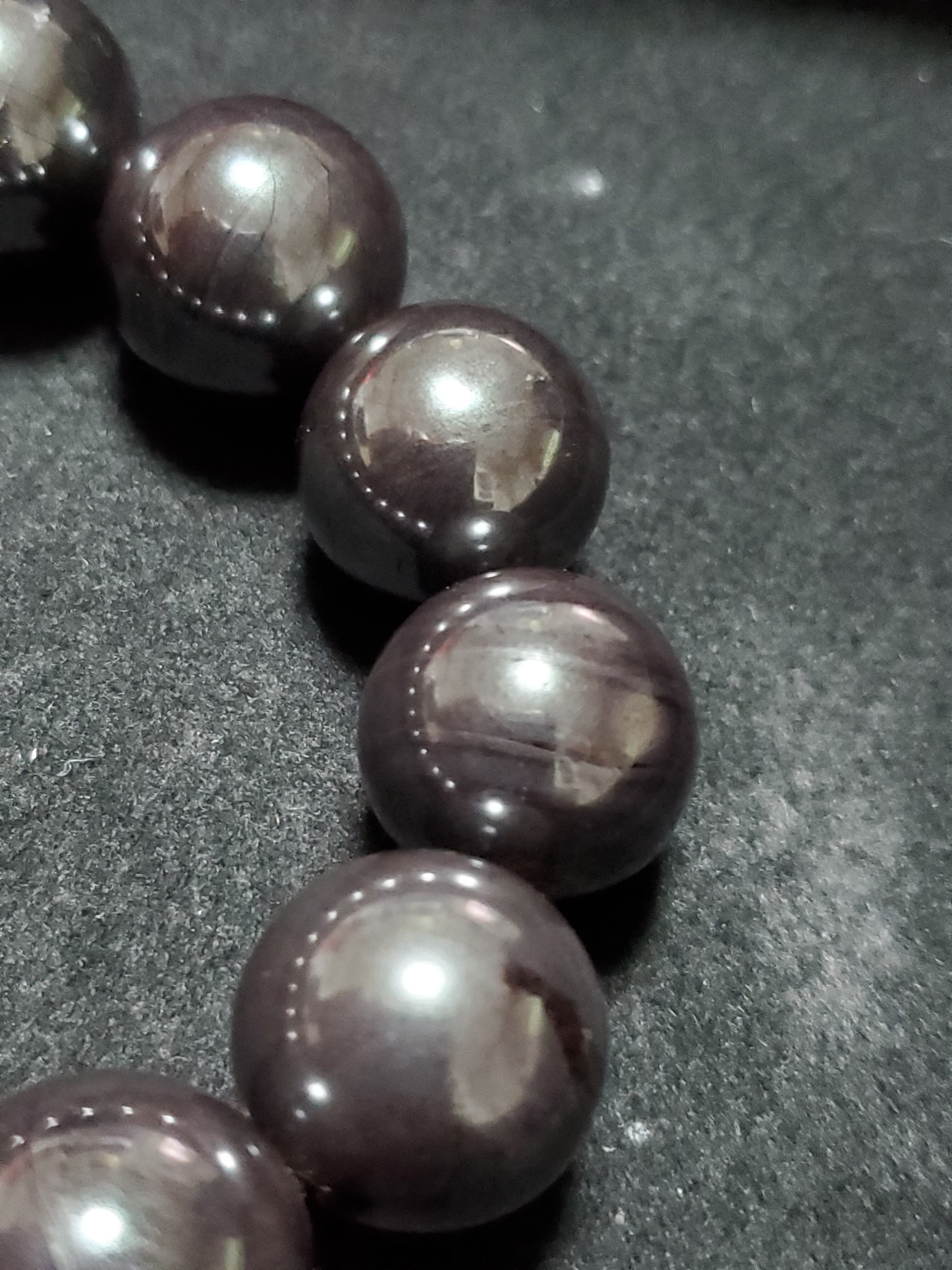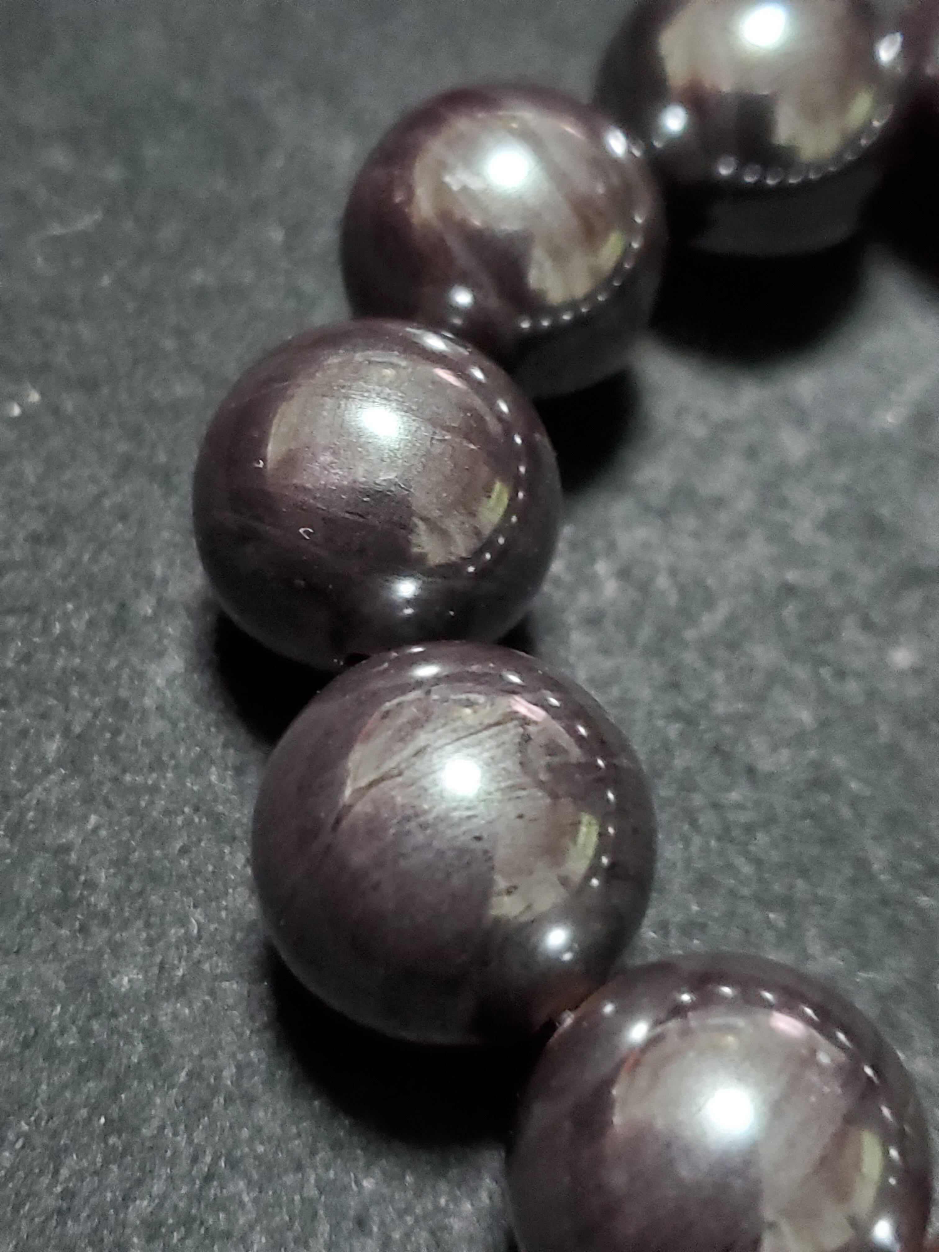 スギライトは結晶形になることは極めて稀で、時には様々な他鉱物を内包しながら不規則な塊状を形成します。そのため、真っ黒に近いものから艶のある鈍色、灰色、うぐいす色、赤紫、紫、ピンクなど、様々な色彩を持っています。アクセサリーとして人気が高いのは、やはり美しい紫色や希少なピンク色のものですが、スギライトのパワーは、この、色によって少しずつ波長の違うパワーが共振してこそ強く発揮されるのではないかと思います。