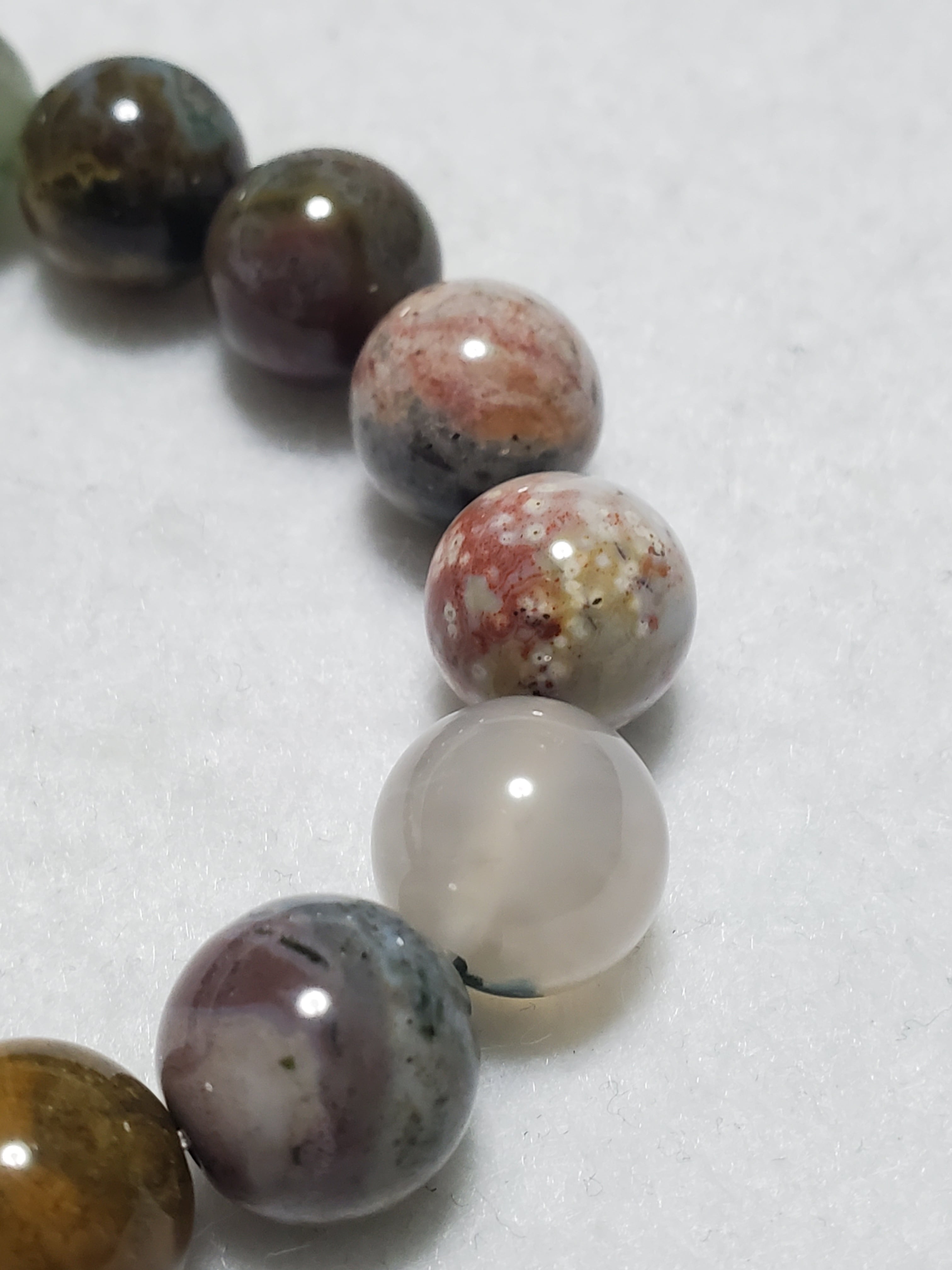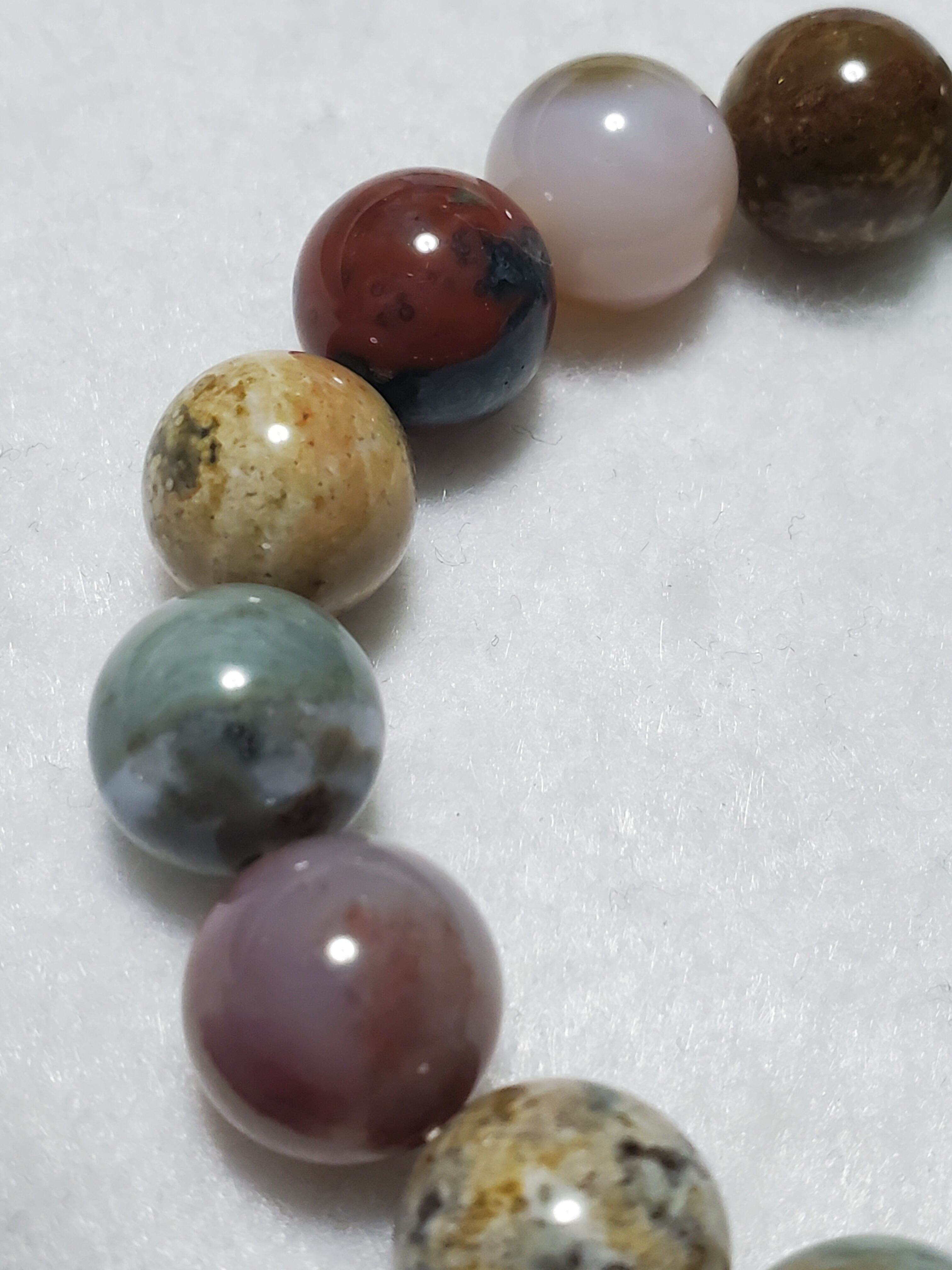 「オーシャンジャスパー」は様々なマイナスのエネルギーからその持ち主を守ってくれると言われています。「海」との関係が深い石であるということから、古くから『聖なる石』として崇められてきました。その「海」のもたらすパワーは持ち主の生命力を高め、身体の中の循環を良くしてくれると言われています。そのため、溜まった要らない毒素や老廃物を排出し健康へと導いてくれるそうです。