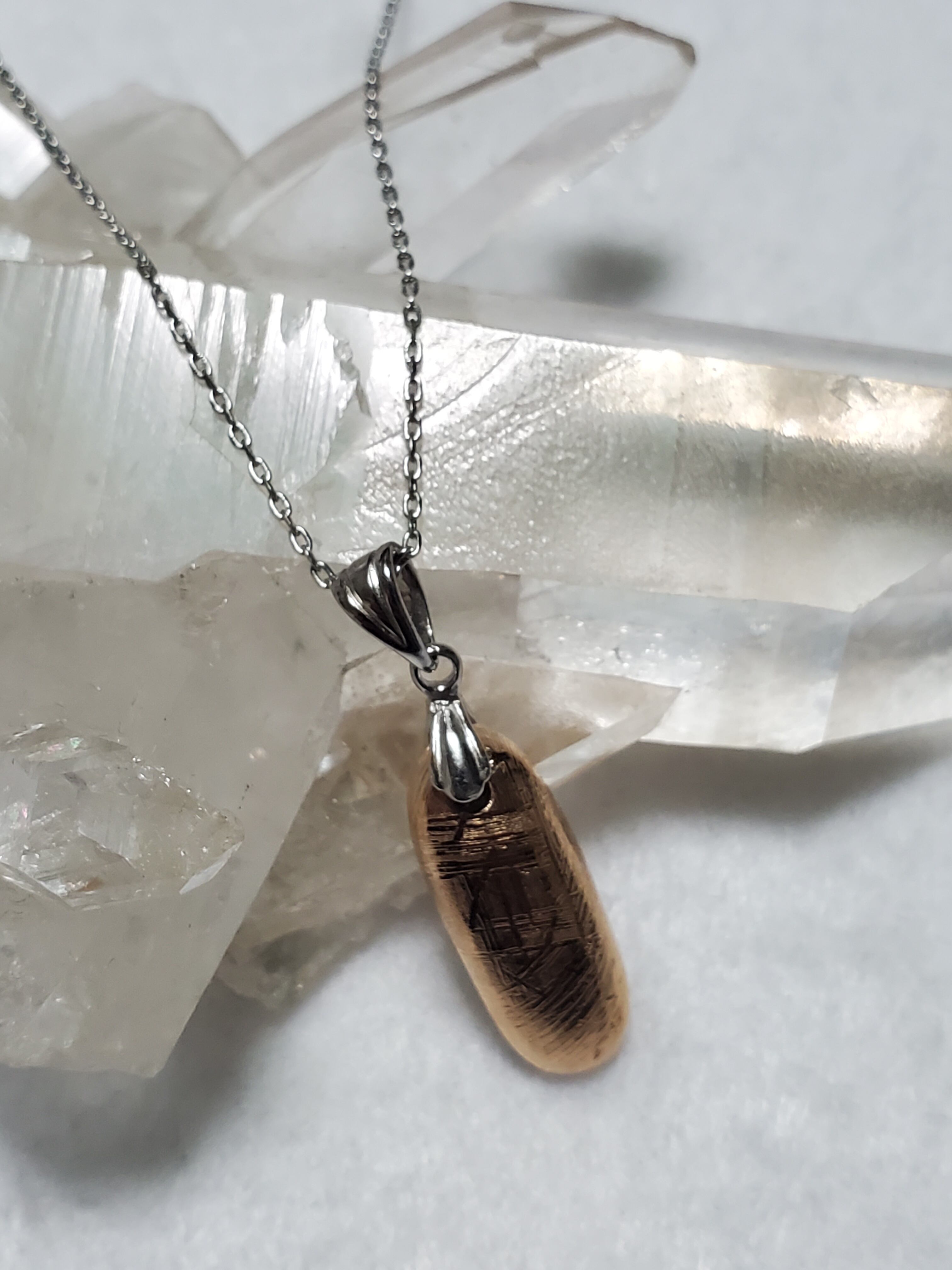 ギベオンは、鉄質隕石の一種で、重量感のあるシルバーに、独特の幾何学模様が刻まれていることが特徴で、アフリカのナミビアで産出されたものを言います。この模様はウィドマンシュテッテン構造と呼ばれ、鉄とニッケルに起因しているものとされています。4億5千万年前に落下した隕石とも言われ、宇宙の神秘を感じさせる魅力のある石です。