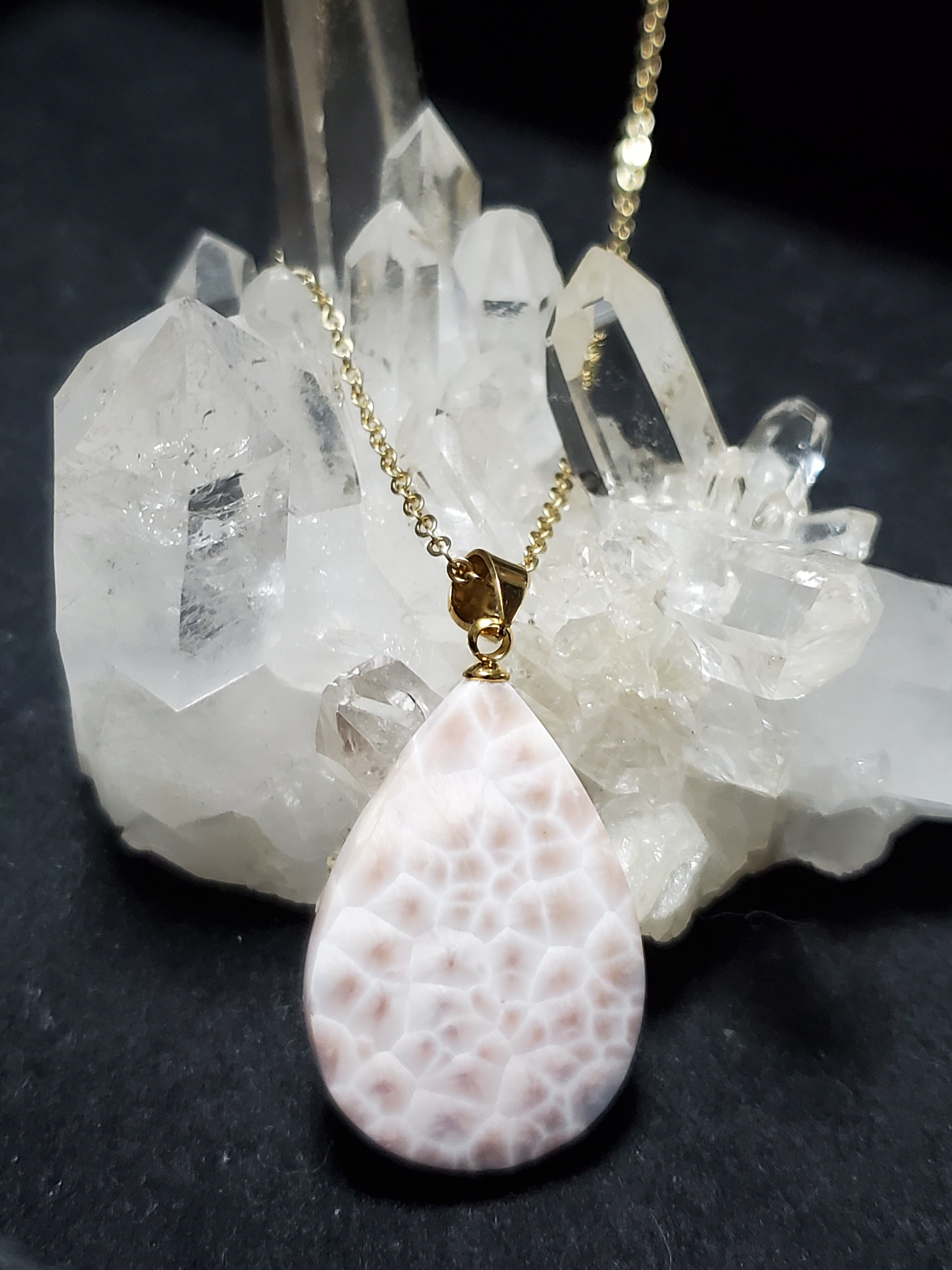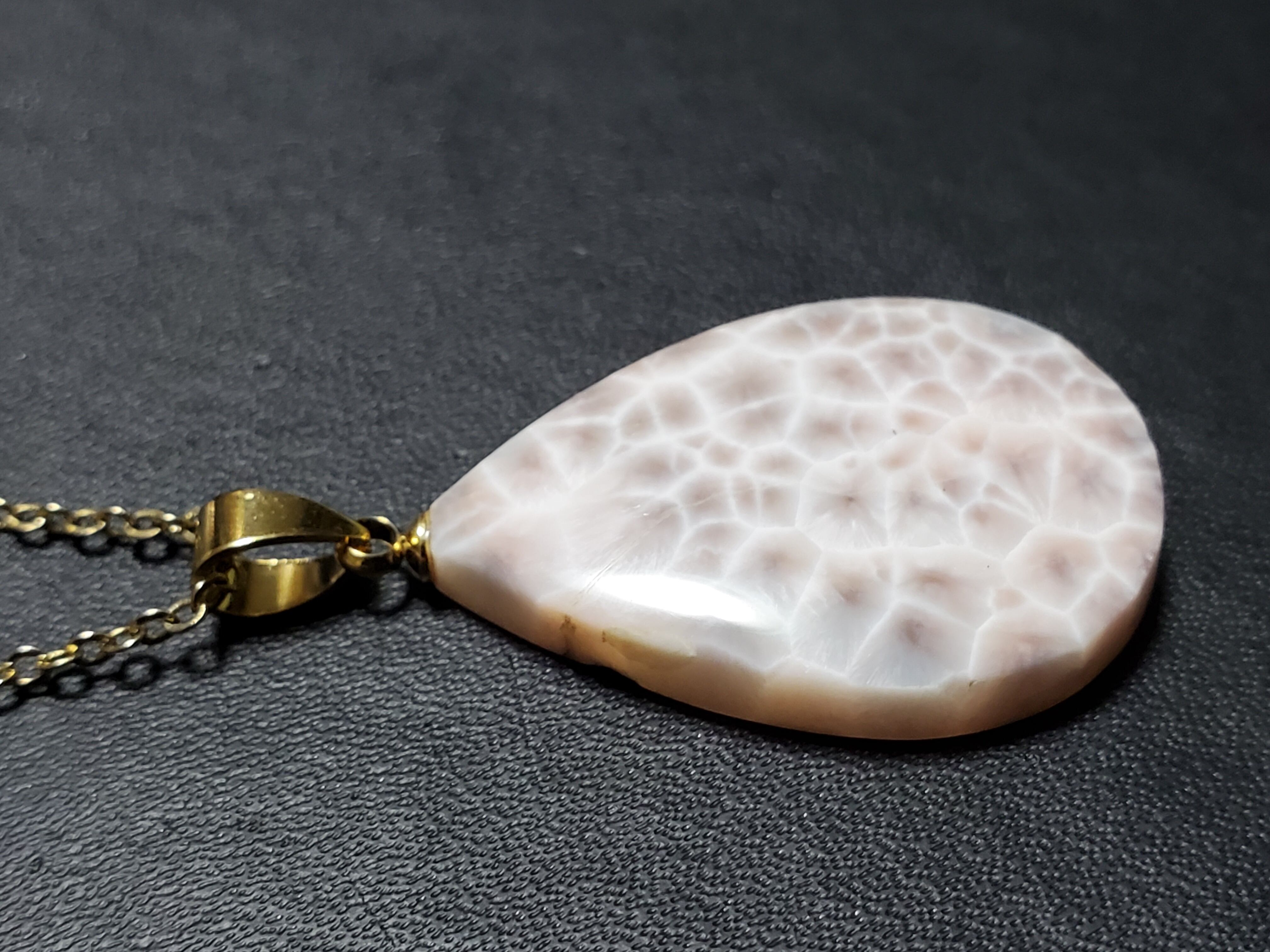 ピンクベージュと白の模様が美しく、模様がラリマーに似ていることから、ピンク・ラリマーとも呼ばれています。