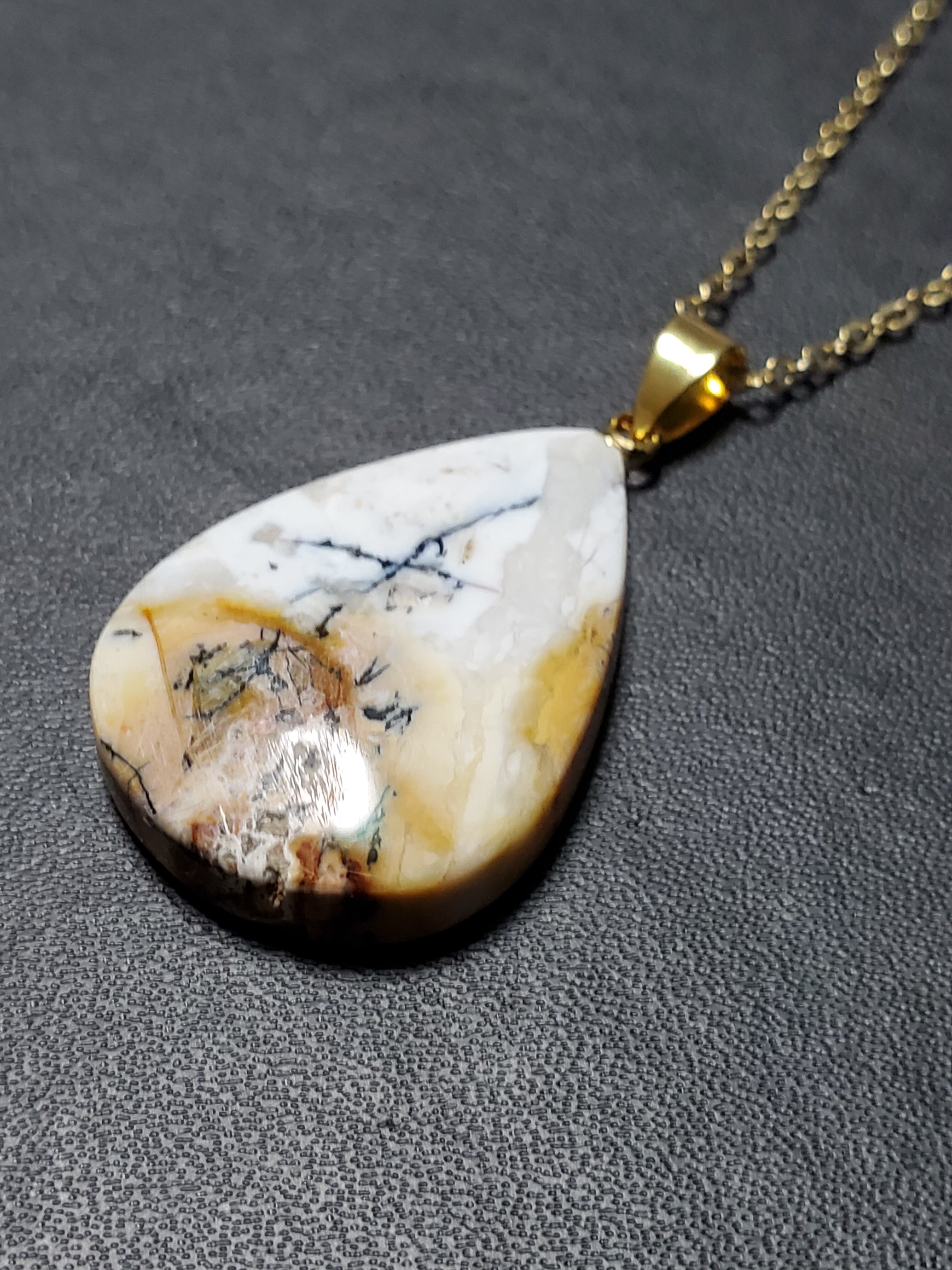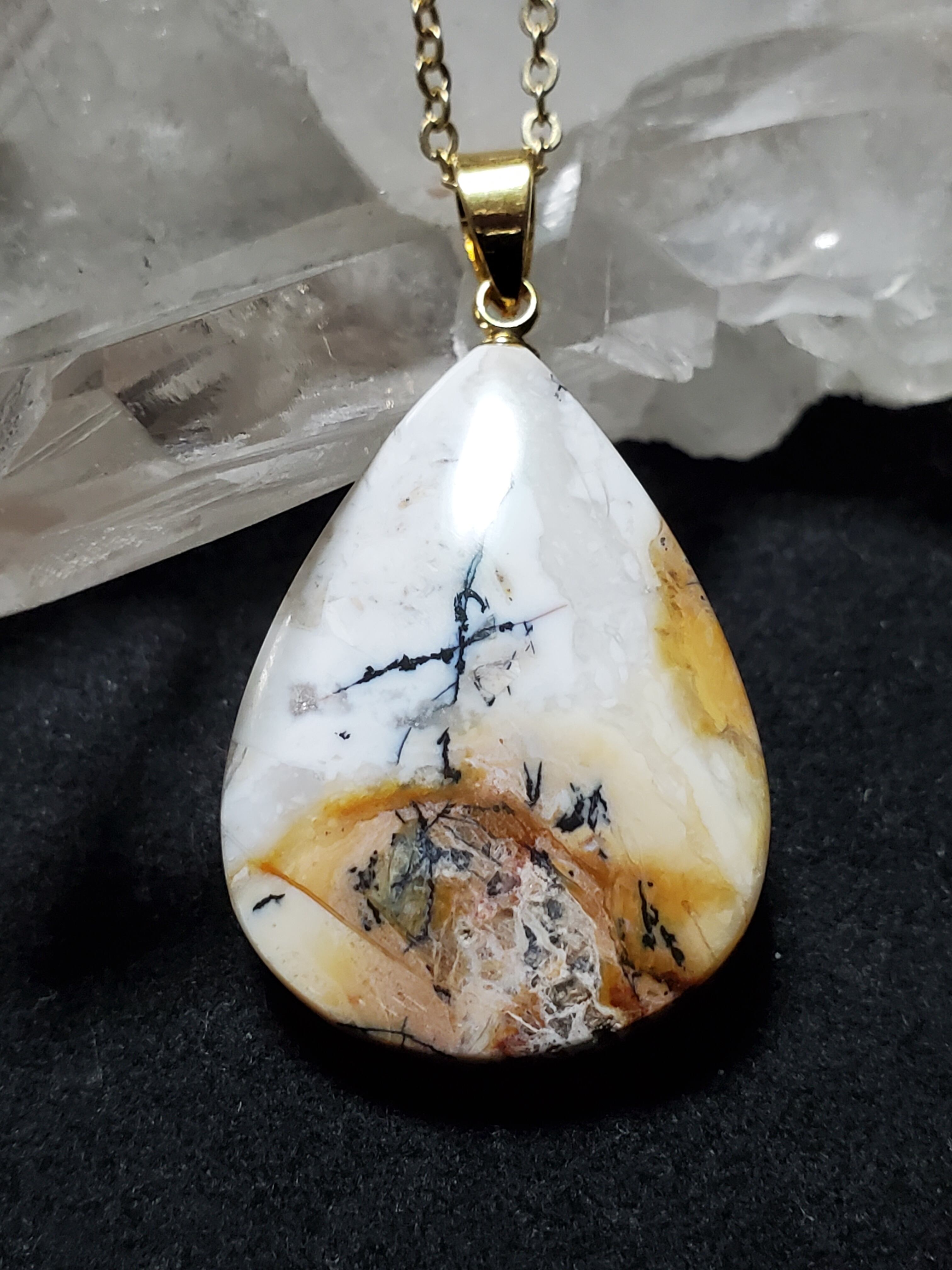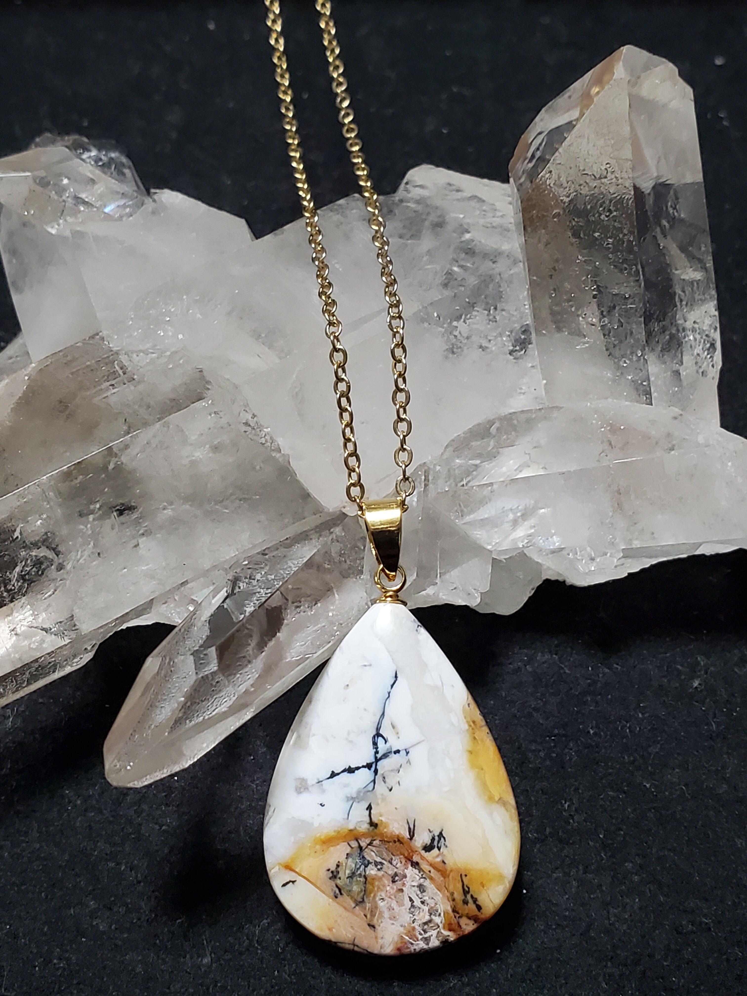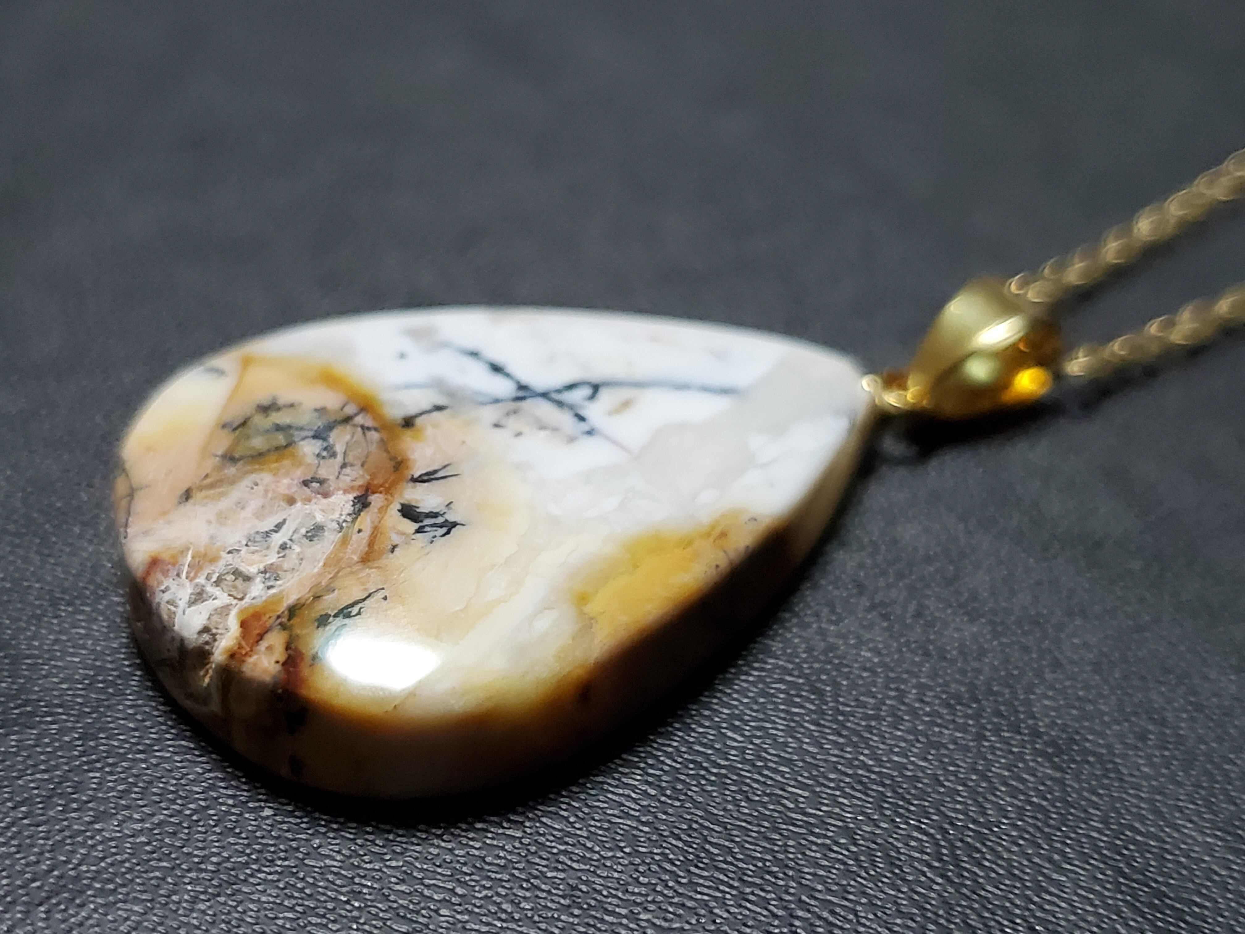 デンドリティッククォーツ(デンドライト)は、持ち主の心に安心と癒しをもたらしてくれる効果があります。またひとつとして同じものがない独特の模様は眺めているだけでも時間を忘れてしまうほど趣があり、何にもしばられず、ゆとりをもって過ごすことの大切さ、尊さに気づかせてくれます。