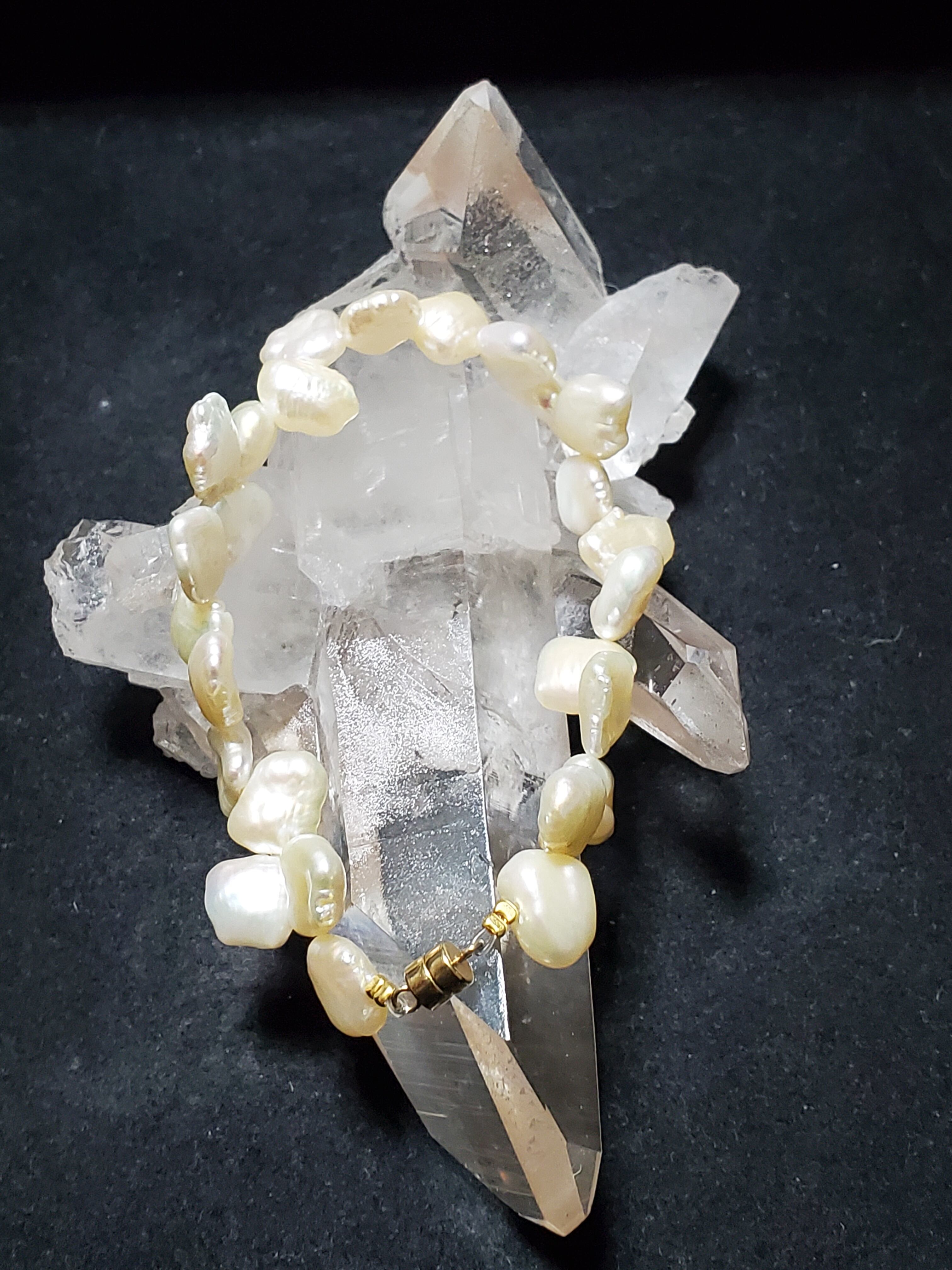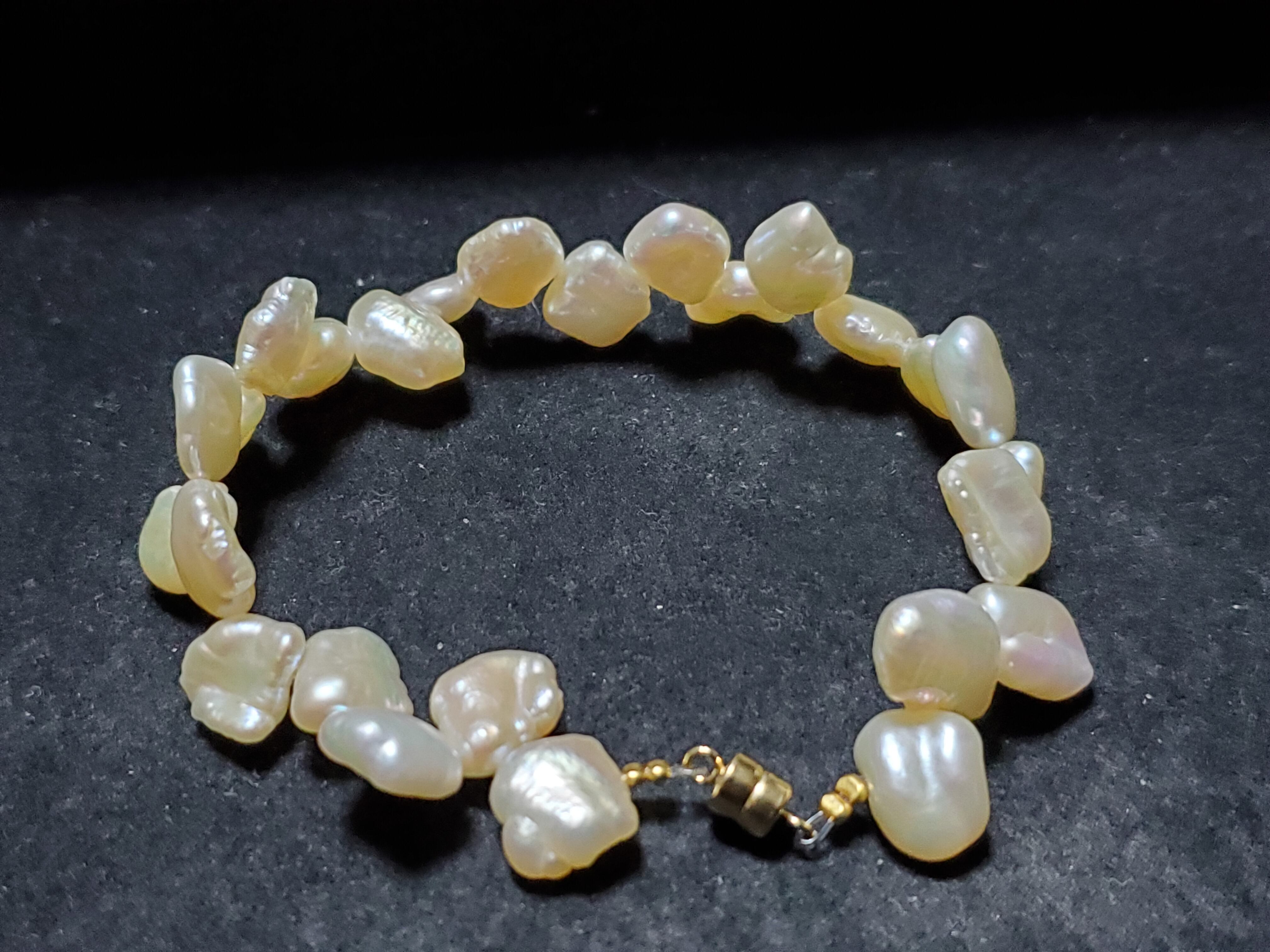 淡水パールのデザインブレスレットです。