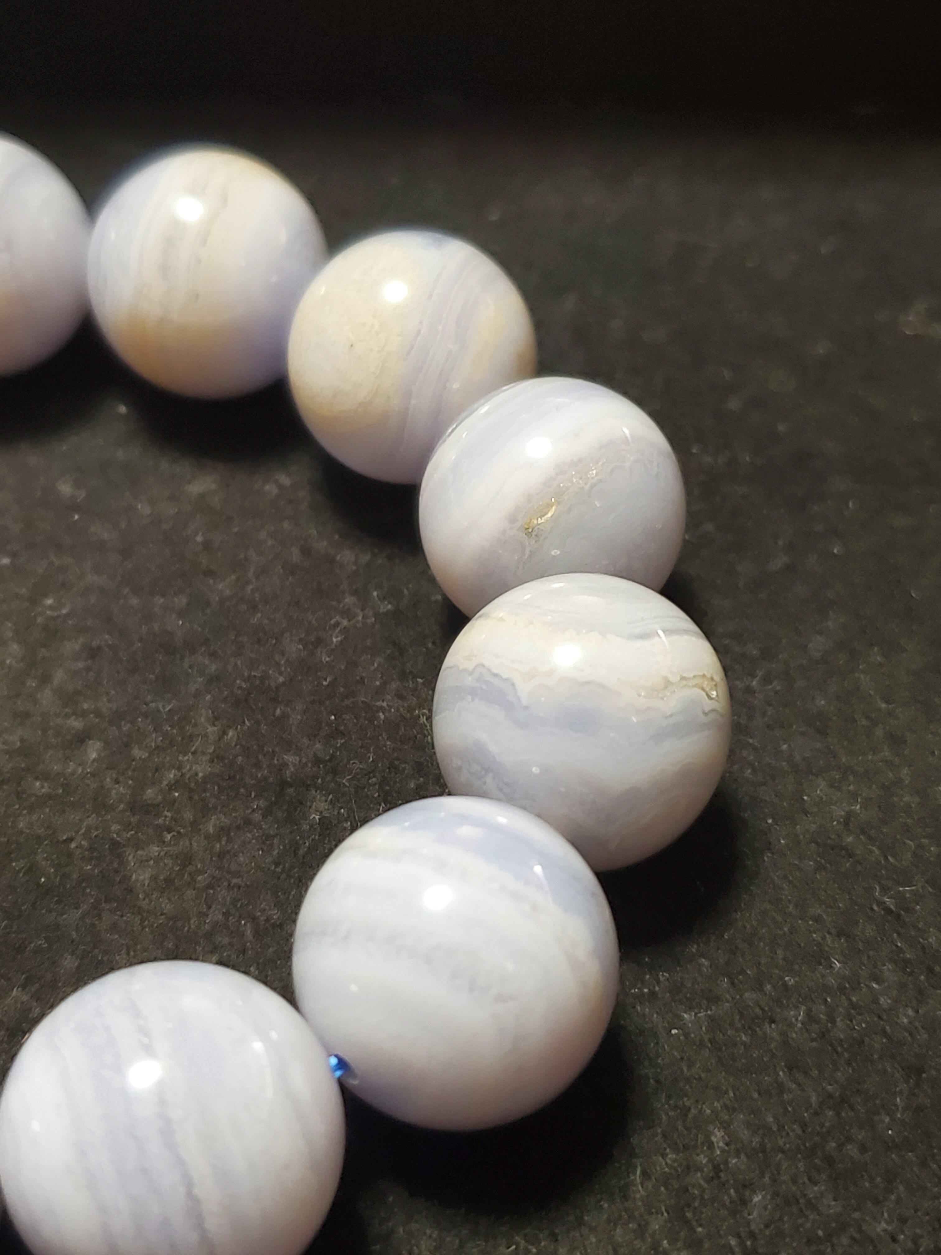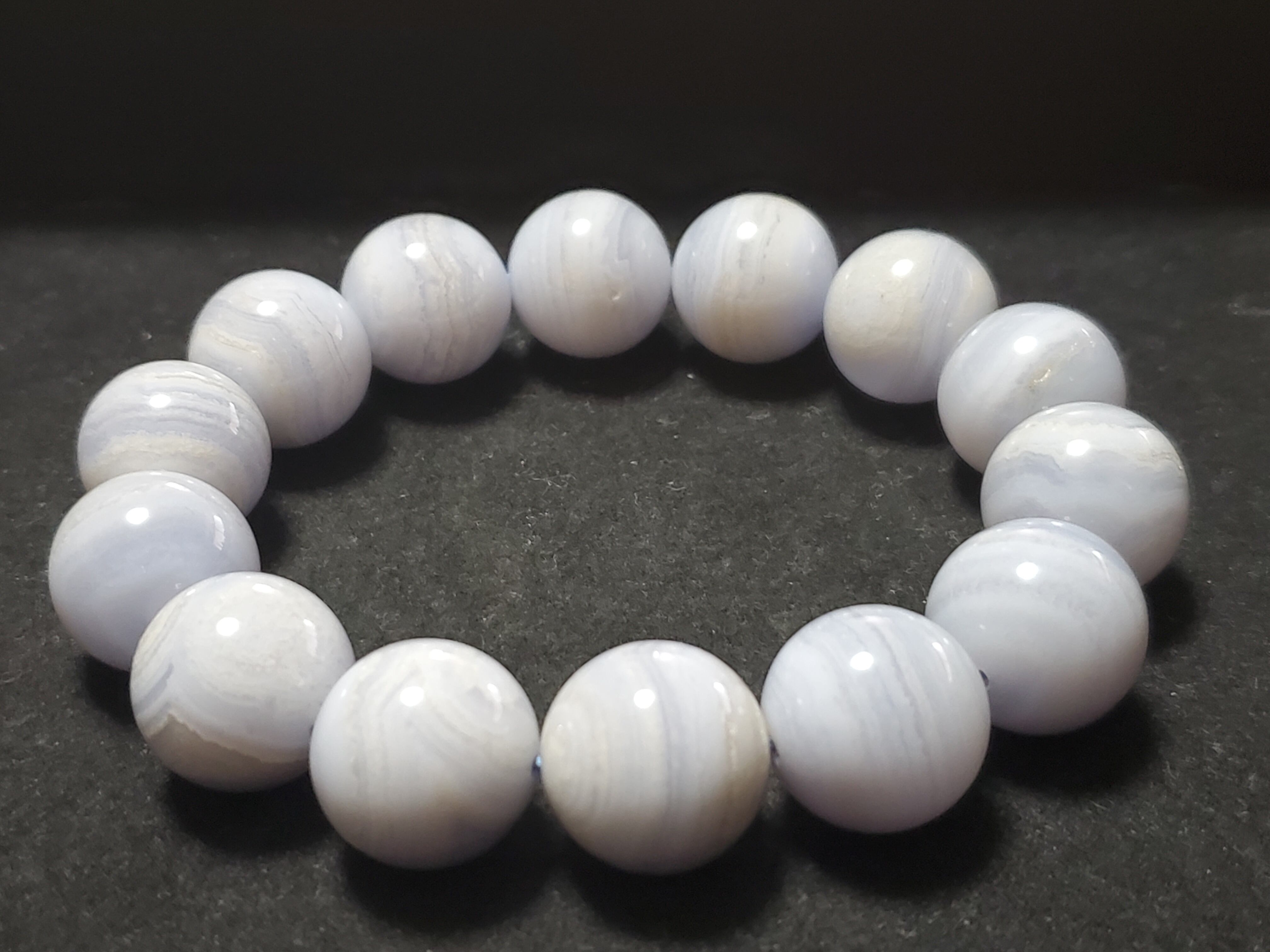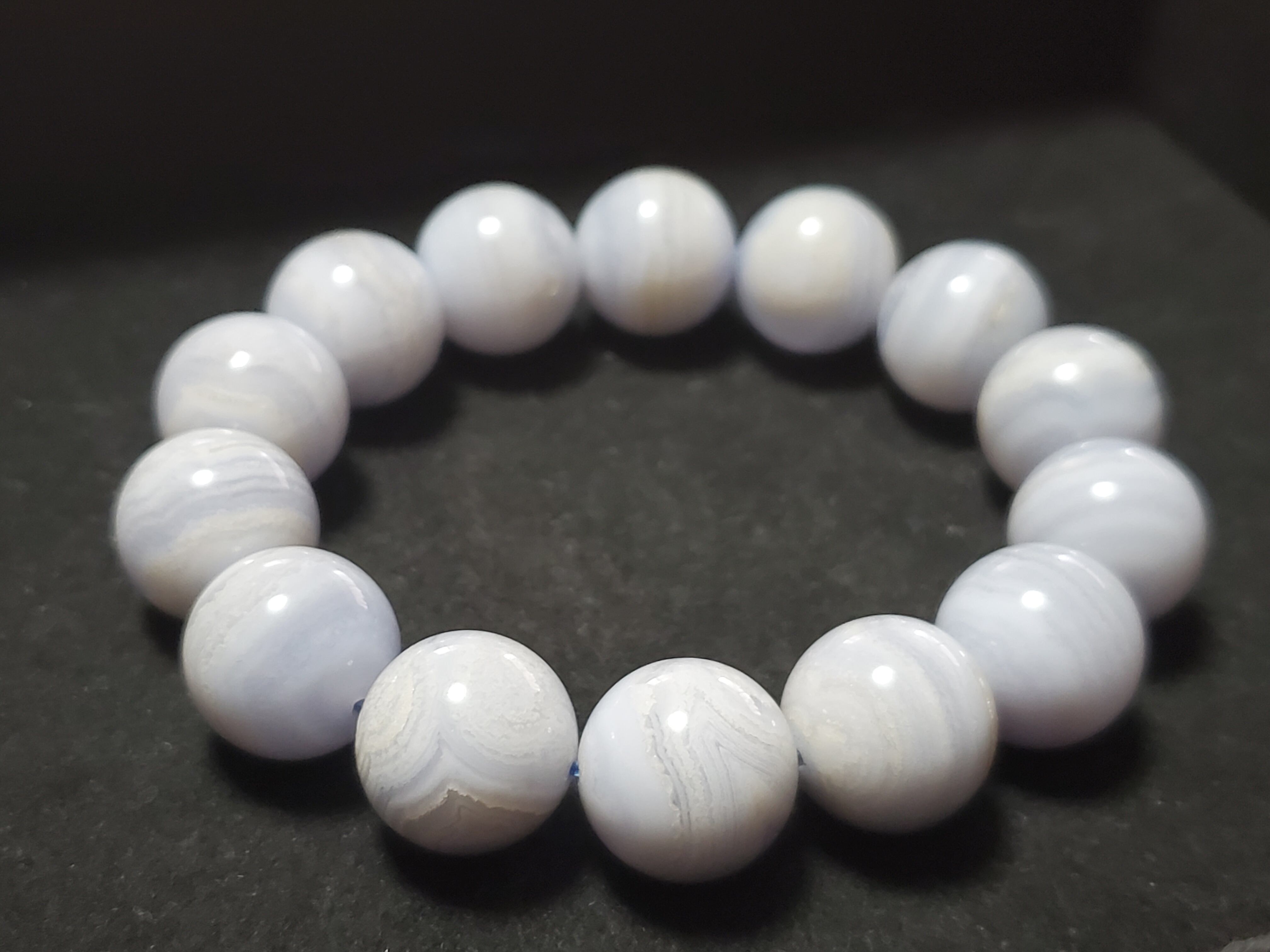 ブルーレースは、古来より危険を回避するお守りとして、人々の身近にある存在でした。チベットでは、この石の美しい模様を蓮の花に例えて、「神の石」として崇めていたそうです。控えめで清潔感のあるブルーレースは、持ち主をリラックスさせて、心を綺麗にしてくれるようなヒーリング作用があると伝えられています。