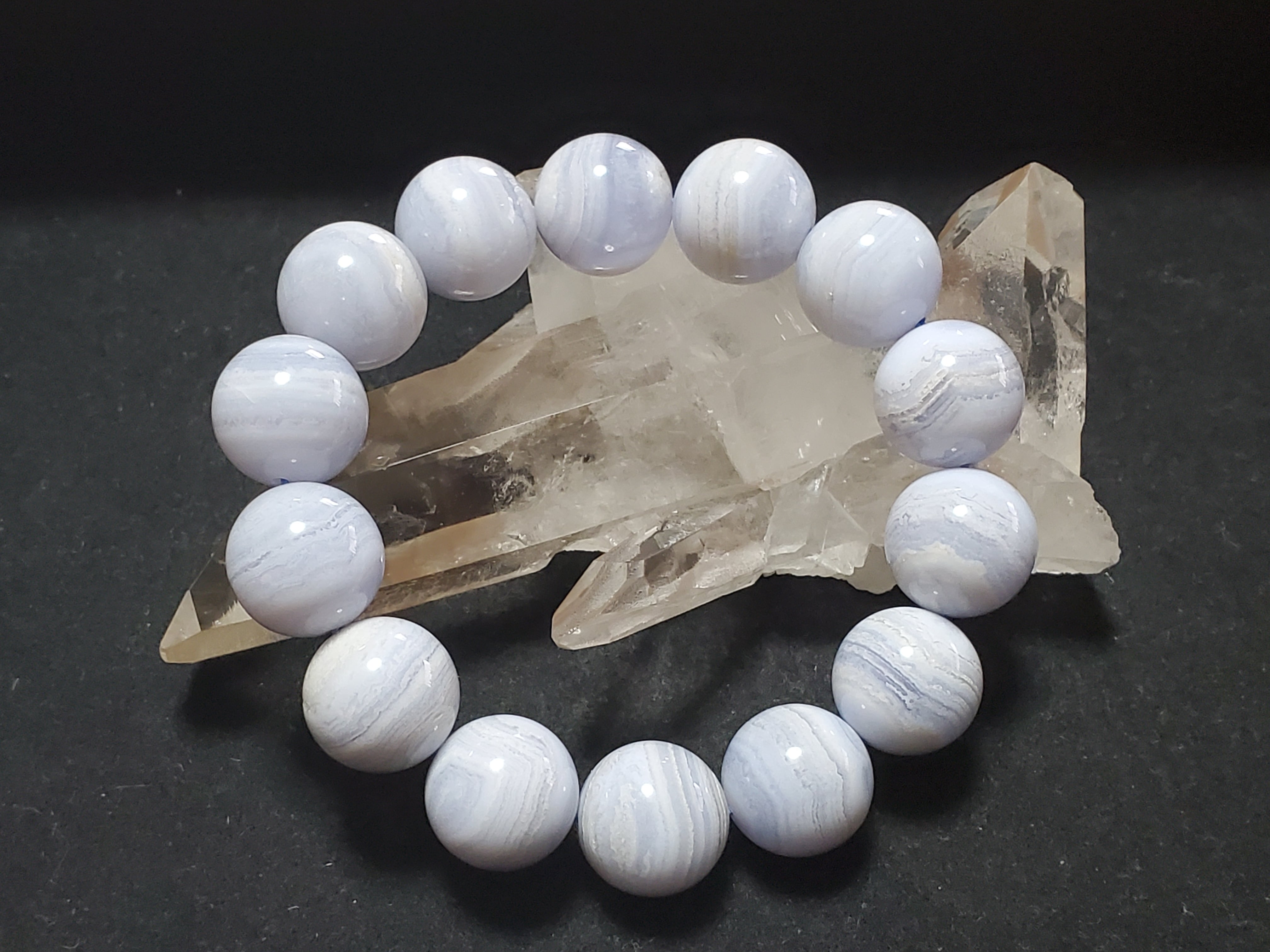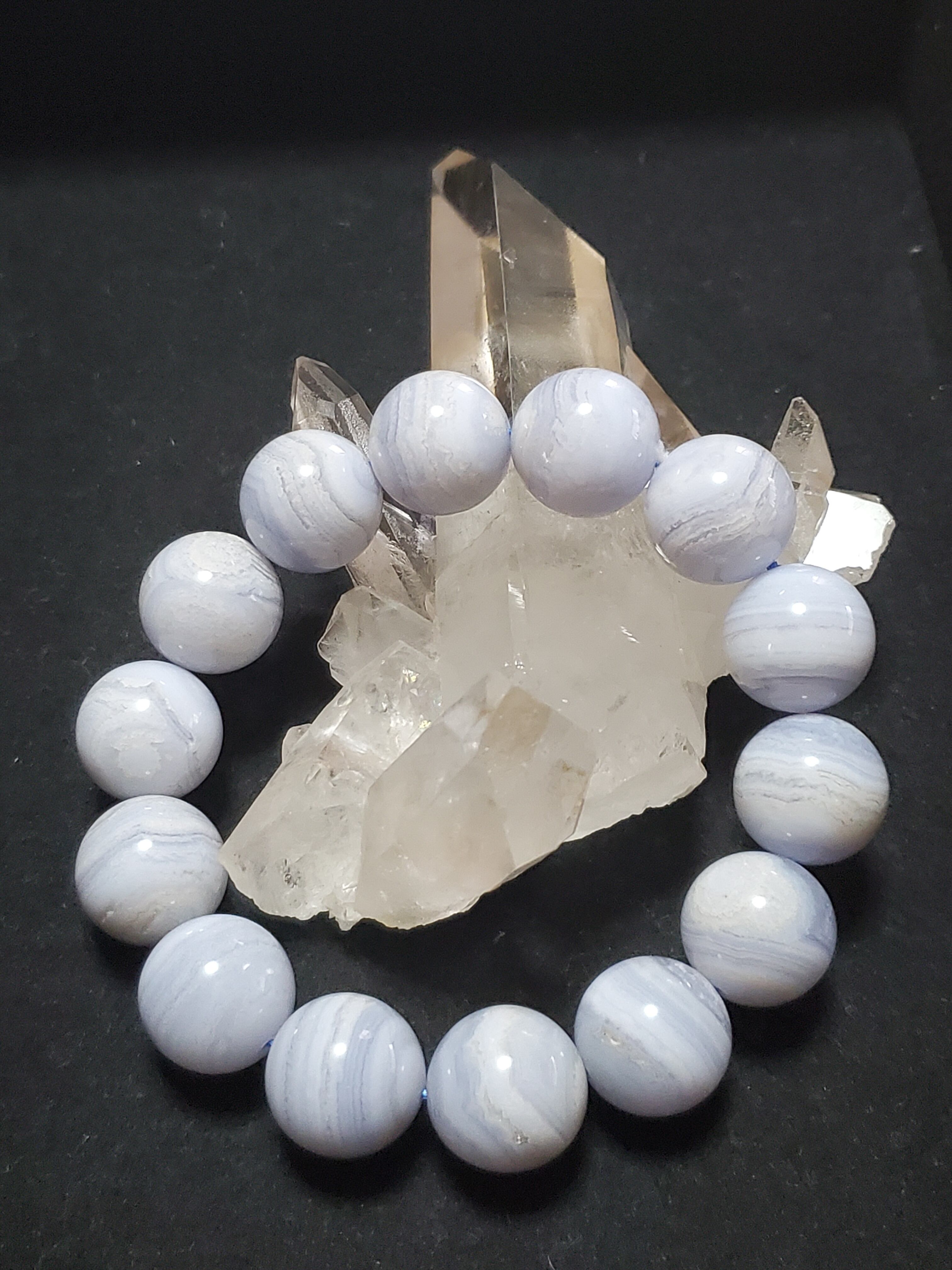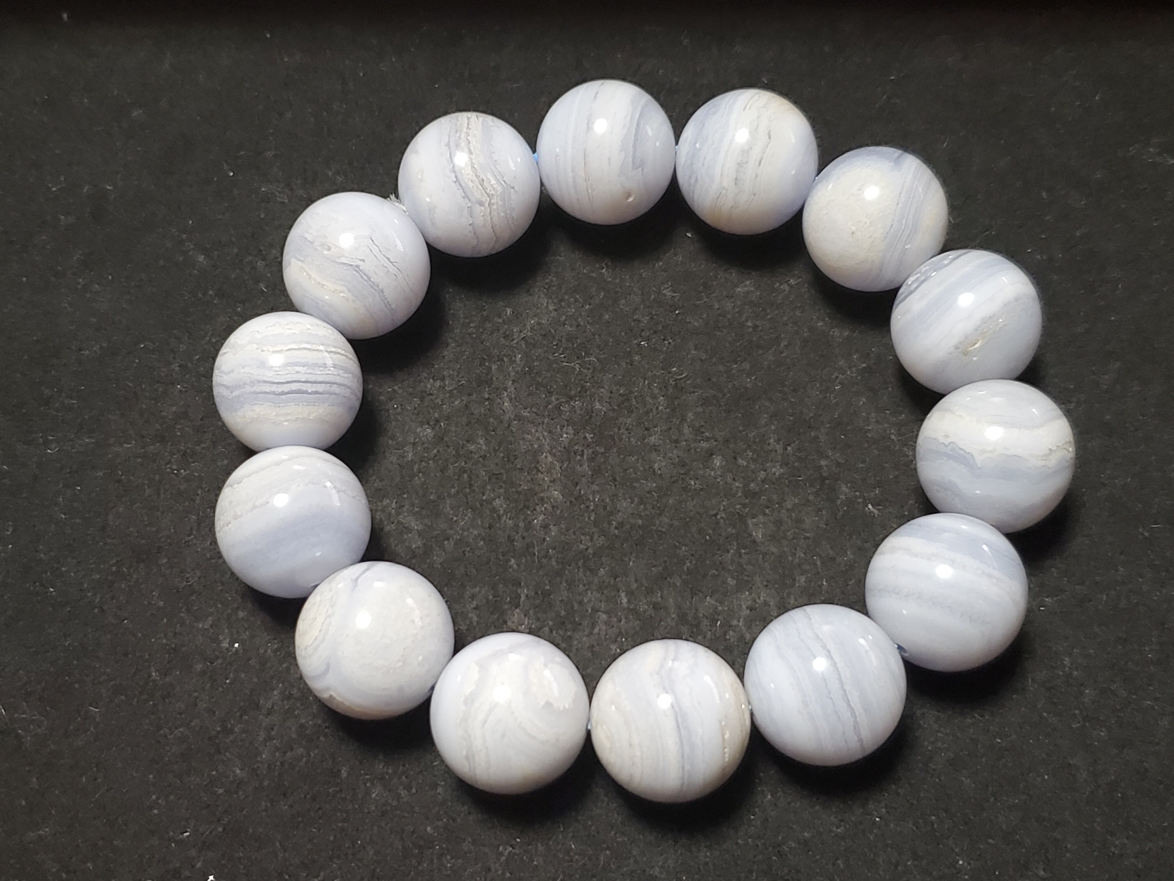 ブルーレースは、古来より危険を回避するお守りとして、人々の身近にある存在でした。チベットでは、この石の美しい模様を蓮の花に例えて、「神の石」として崇めていたそうです。控えめで清潔感のあるブルーレースは、持ち主をリラックスさせて、心を綺麗にしてくれるようなヒーリング作用があると伝えられています。