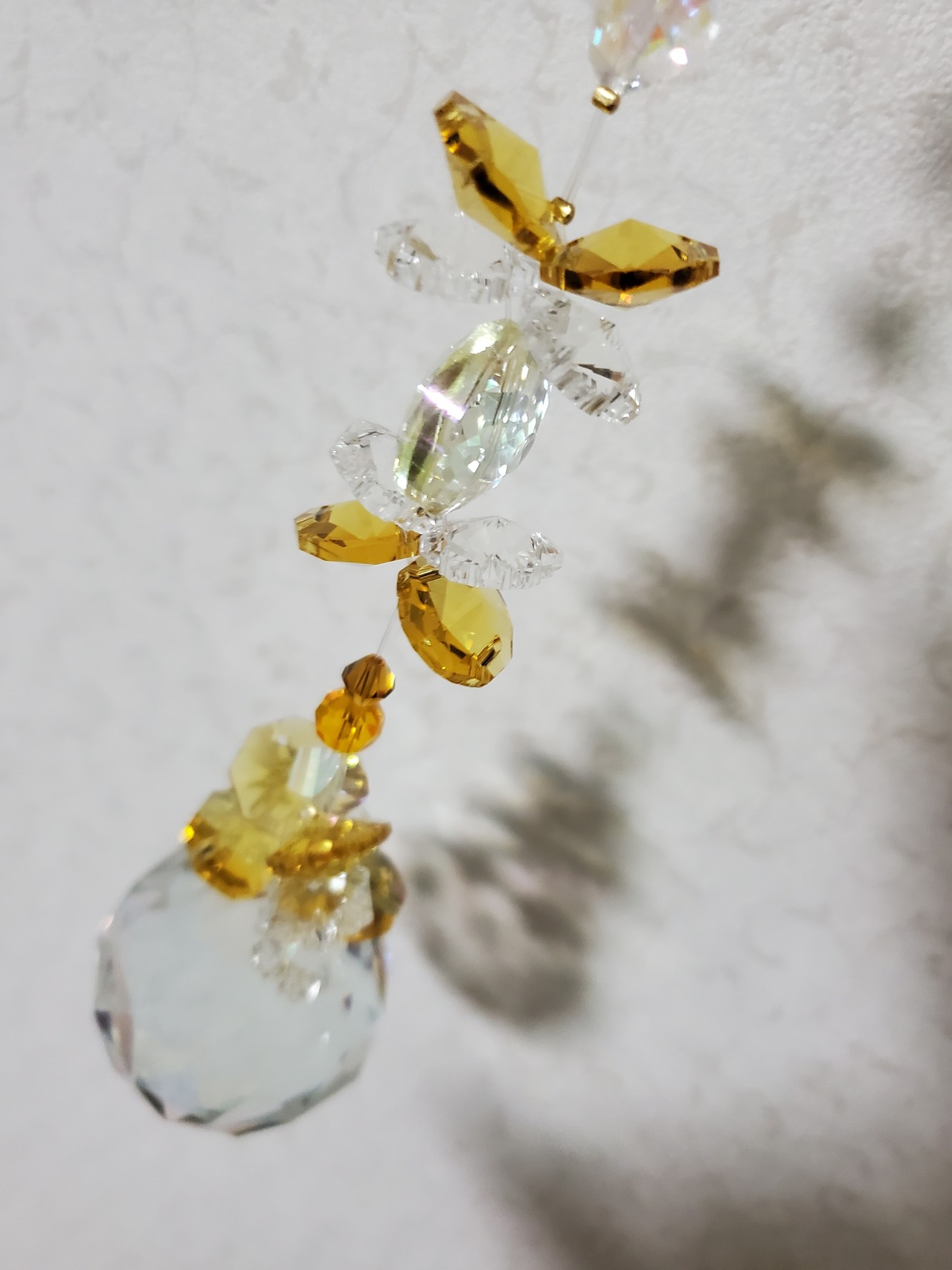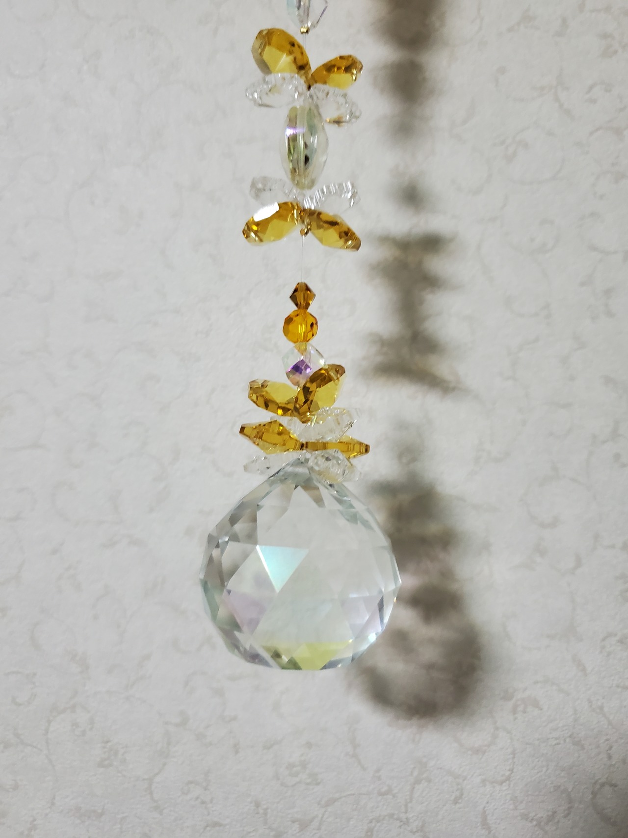 サンキャッチャーとは、クリスタル製のガラス玉を用いたインテリアアクセサリーのことです。太陽が当たる場所に飾ると、光を反射して美しい輝きを放つのが特徴。プリズム効果で室内に虹色の粒が広がることから「レインボーメーカー」とも呼ばれています。