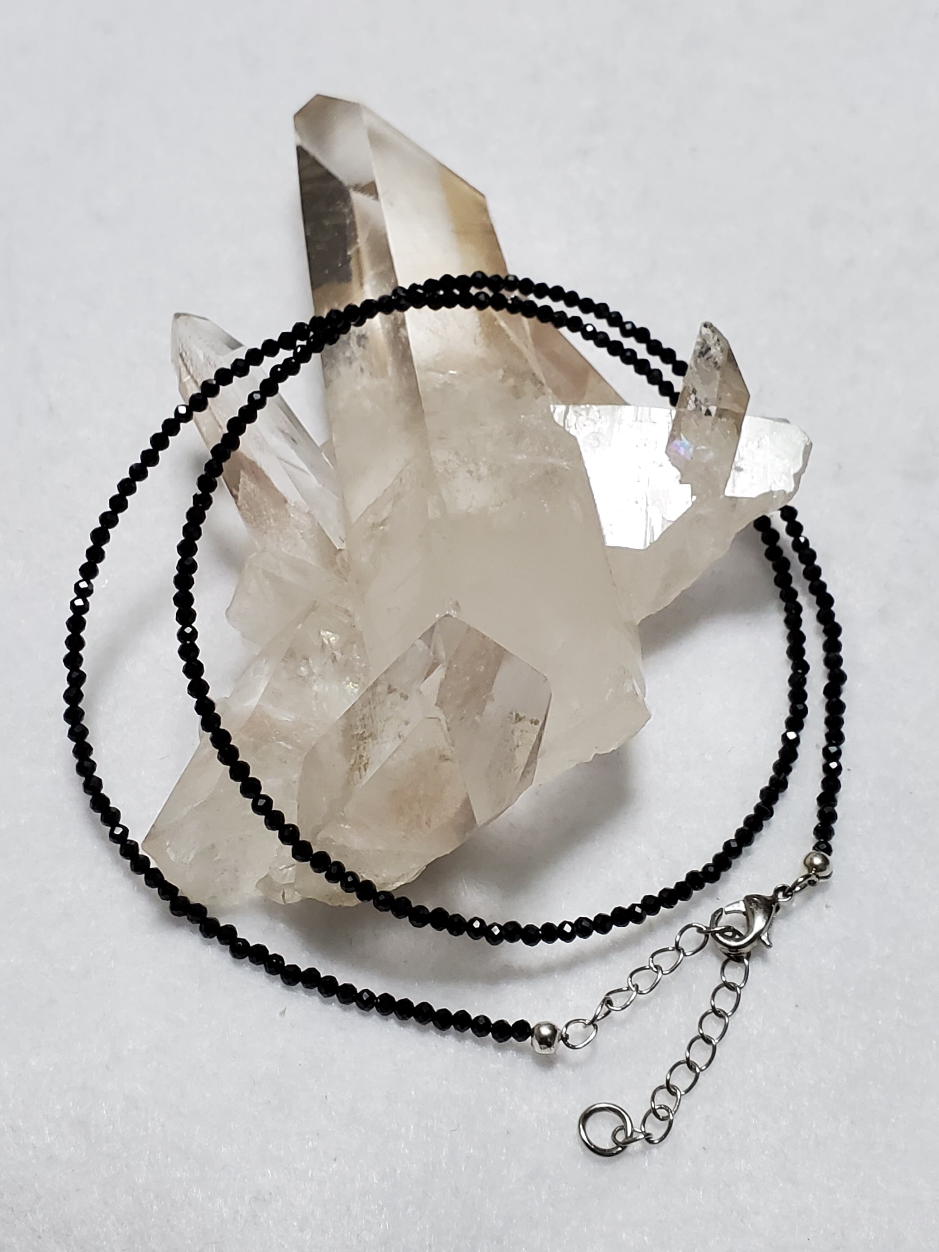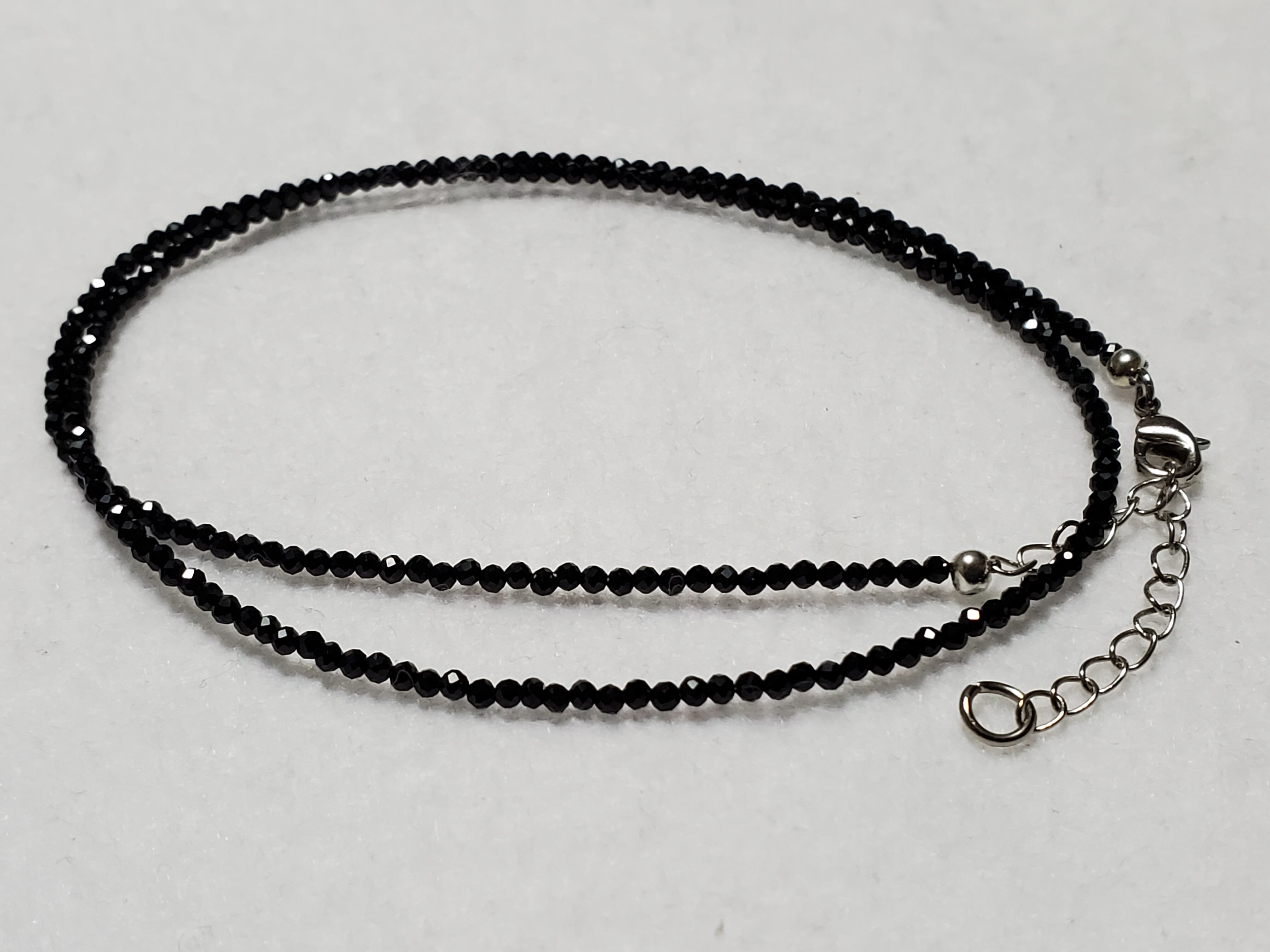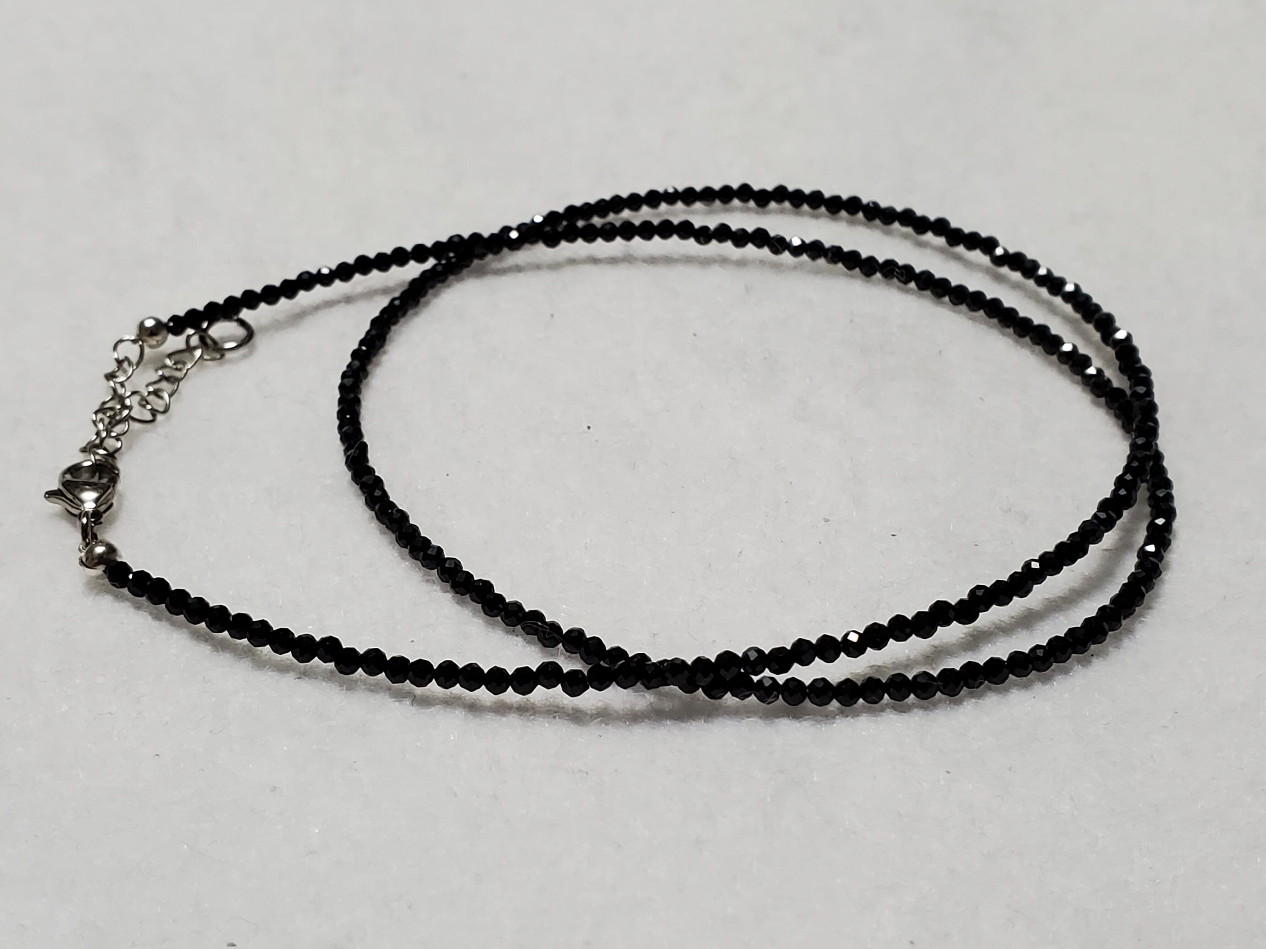 2㎜のブラックスピネル(64面カット)のネックレスです。