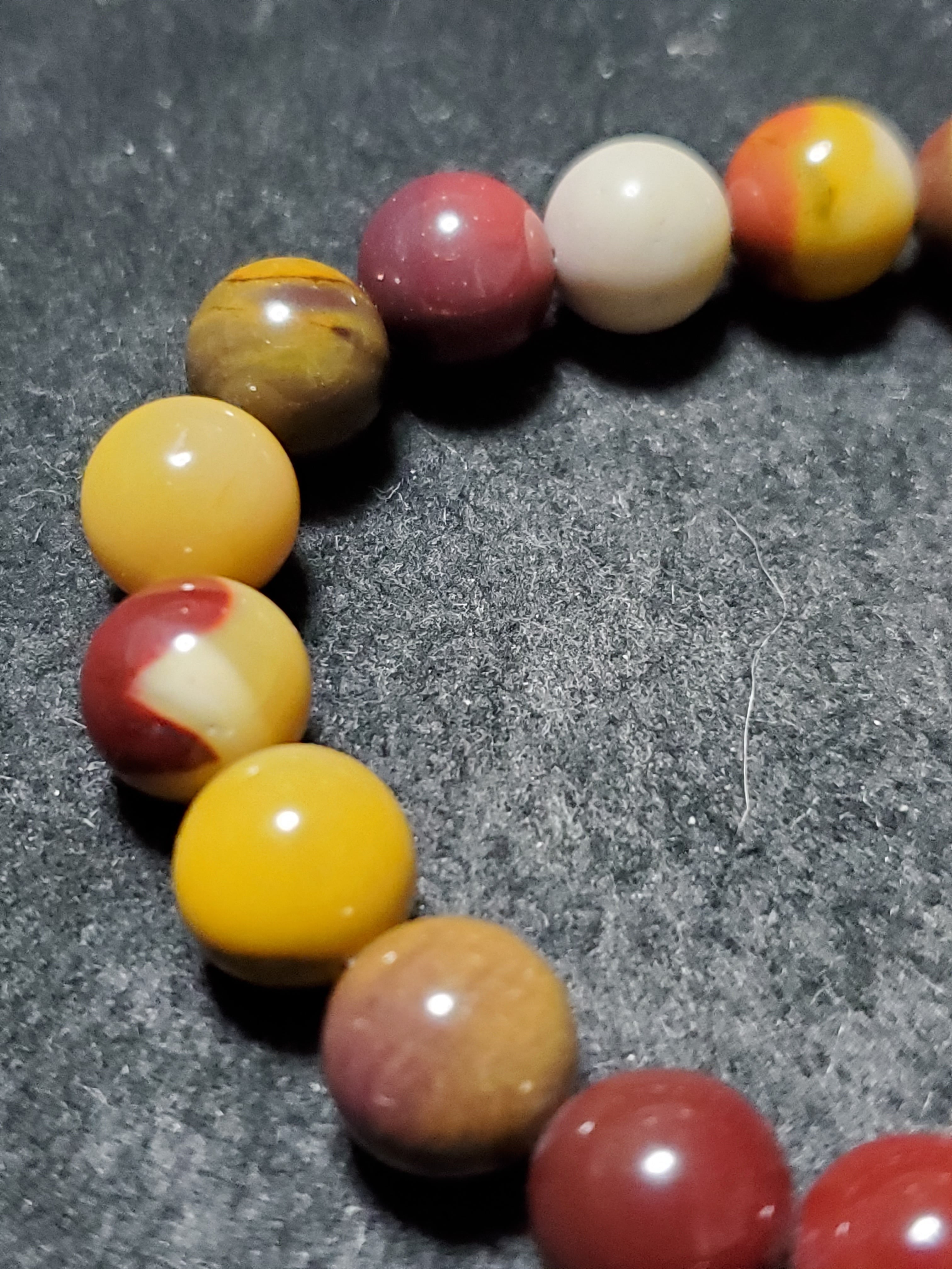モッカイトは、ジャスパーのグループに共通しているように”大地”というキーワードを持つ石で、どっしりと地に足をつけ、人の意見に左右されない”自分”を持つことができるよう働きかけてくれます。身につけることでその持ち主の気持ちを落ち着かせ、冷静さや判断力などを高め決断力をもたらす強いパワーがあるといわれています。精神を安定させることでポジティブな感情を持つことができ、今必要な物事の選択判断が明確にできるように「知性」という側面を高めてくれます。そのため、夢や目標に向けて何かに取り組んでいる方や、どうしても取得したい資格や突破したい試験がある方などにいい効果をもたらしてくれるでしょう。