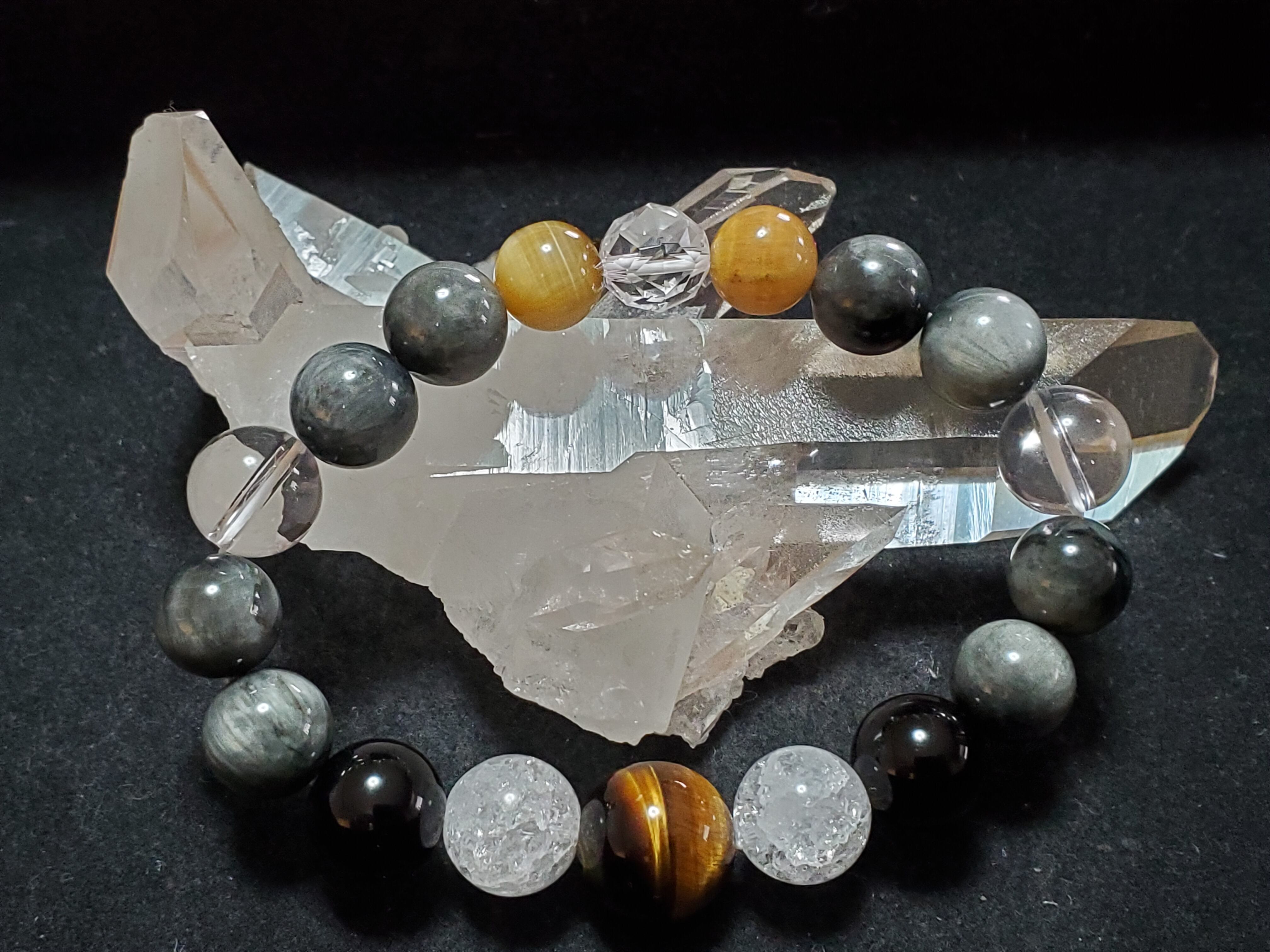同じく、イーグルアイ、ブラックオニキスで組み上げています。水晶で、それらのパワーをアップさせ効果を高めてくれます‼️