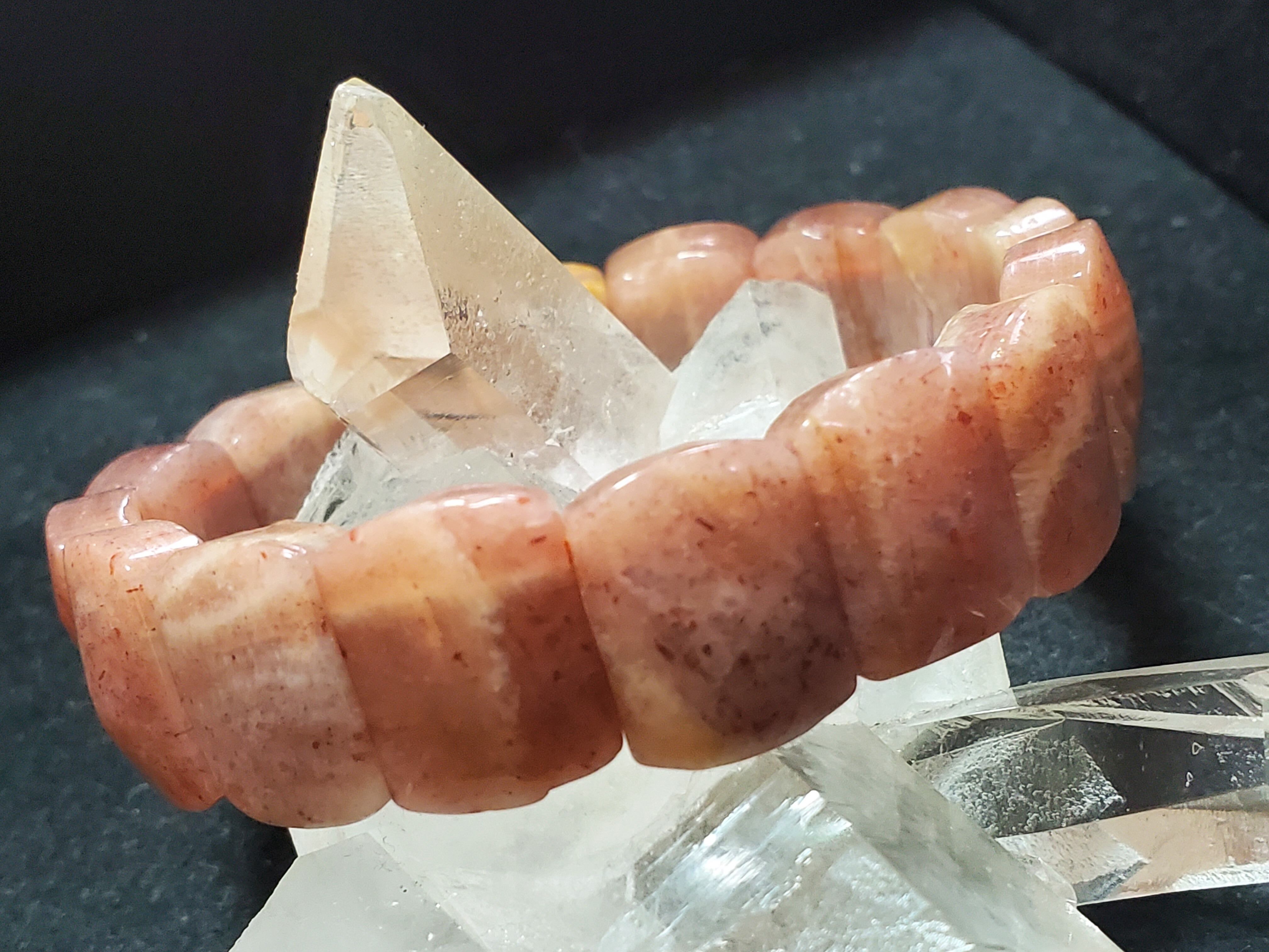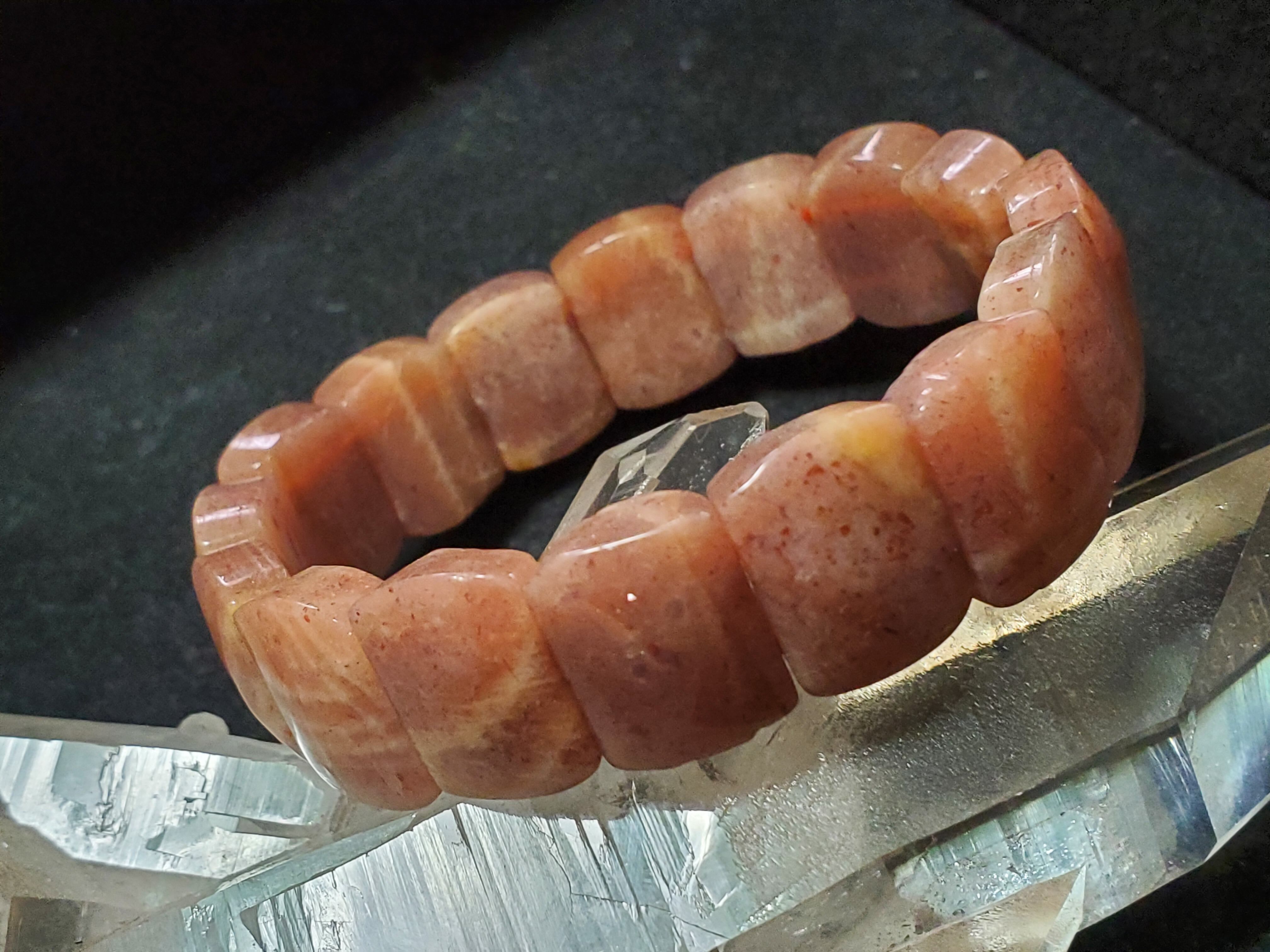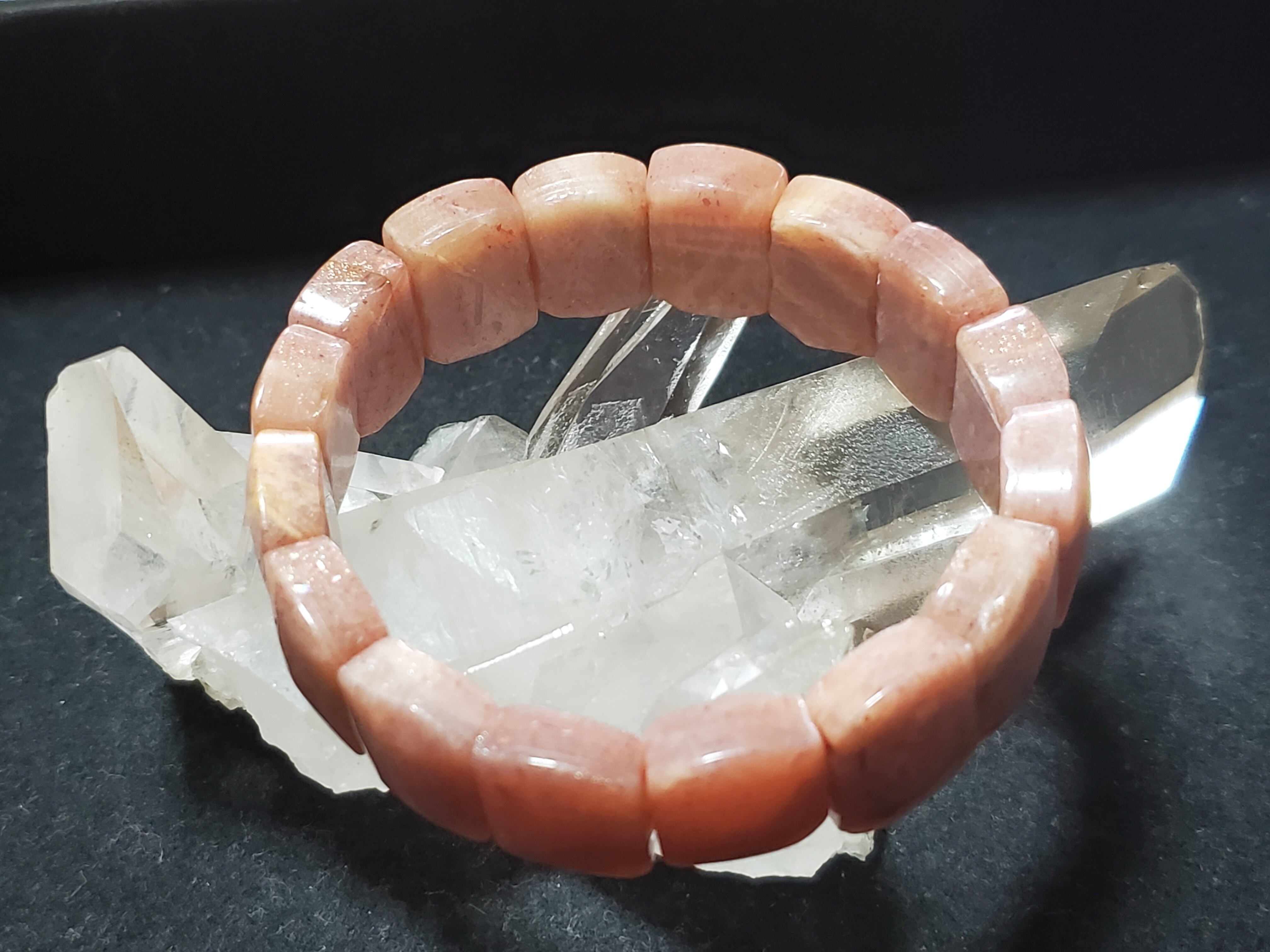オレンジムーンストーンは、第2チャクラに対応し、人間の情緒や社交性、喜び、楽観的思考に深い関わりを持っています。優しく大らかな波動で包み込み、穏やかな愛情で心を満たしてくれるのです。さらに、ムーンストーンが本来持つ「陰」の波動に加え、オレンジムーンストーン特有の、温かみのある「陽」の波動も併せ持っています。そのバランスの良さが最大の魅力。陰の気を持つ石と組み合わせれば更に癒しの効果が増幅され、陽の気を持つ石と組み合わせればより行動的で活力溢れるような波動が増幅されます。自分の状態に合わせて使い分けてみてください。