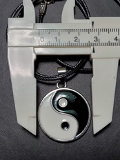 大きさは、約27㎜です。紐部分は、約45㎝です。