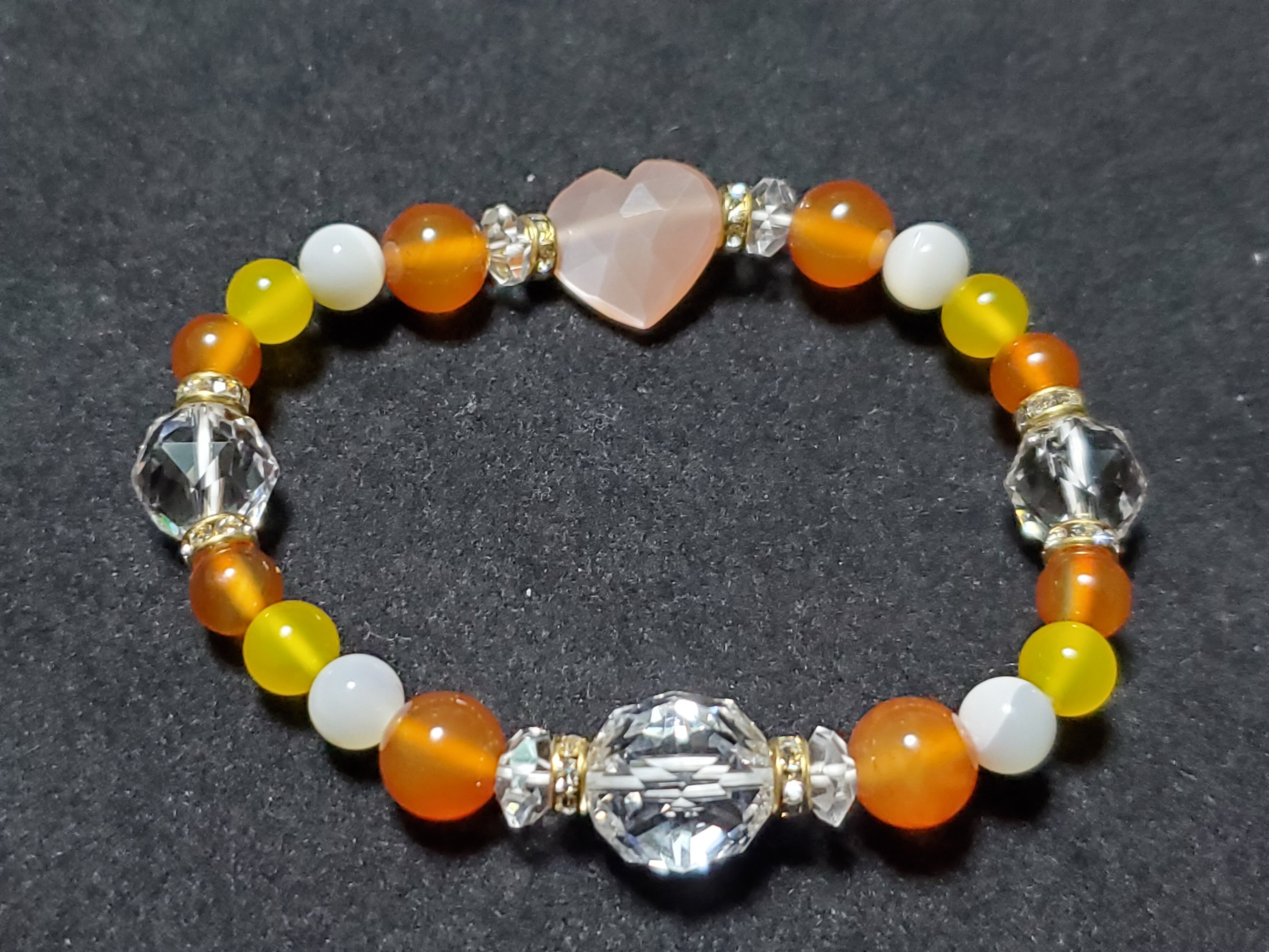 旺心という名前通り、元気があふれる橙色のブレスレットです。デザイン性にもこだわり、シンプルながら存在感ある一品に仕上げました。