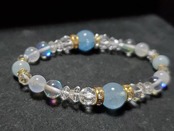 アクアマリン、ブルームーンストーン、水晶、ルナフラッシュ等で組み上げました。