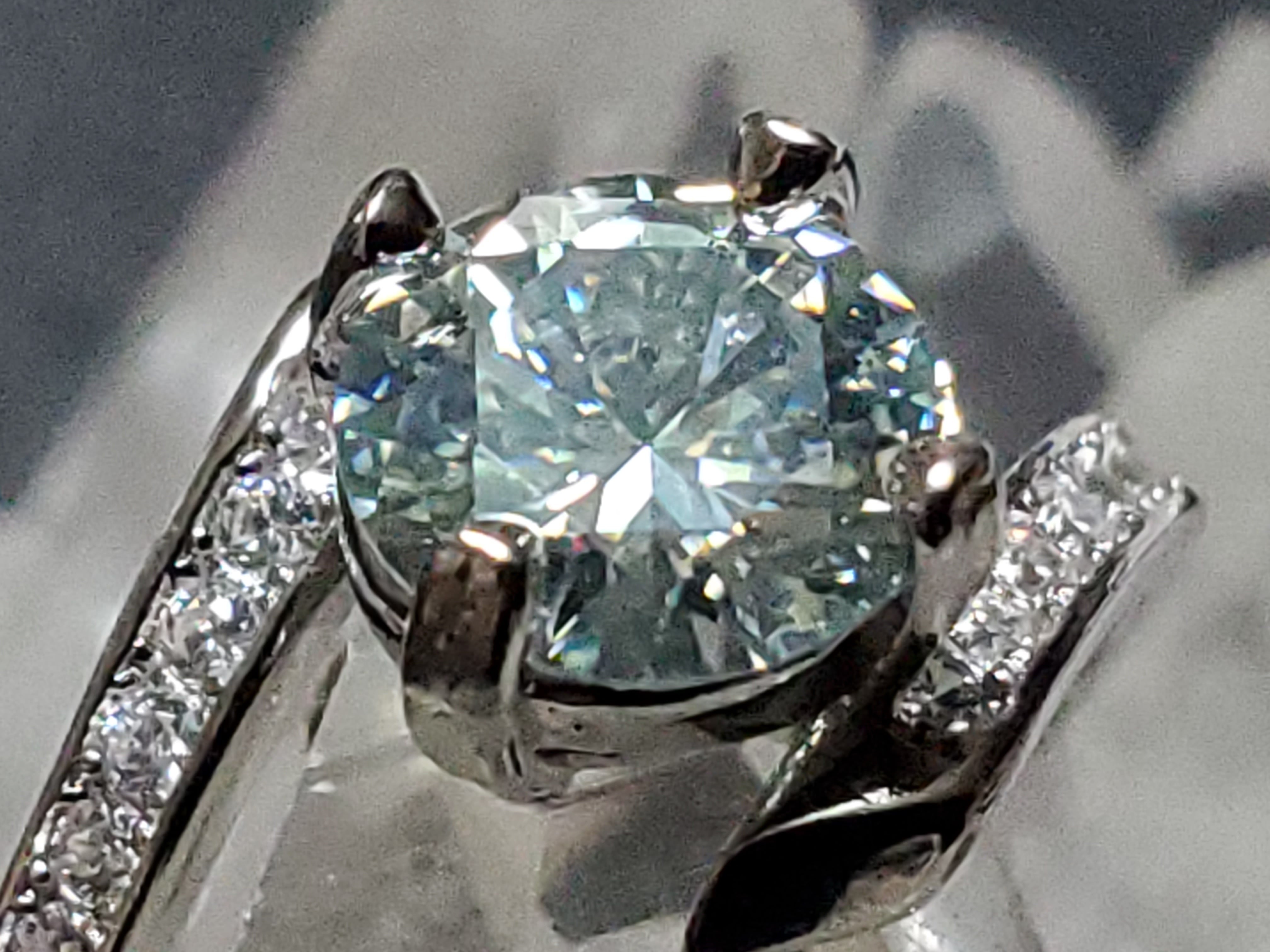 ファイアとよばれるプリズム効果のように様々な色のを生み出す輝きは、なんとダイヤモンドの約2.4倍。石の内部に入った光を白く強く輝かせる、ダイヤモンドの輝きの特徴であるブリリアンスとよばれる光輝に関しても、モアサナイトの方が上回っています。